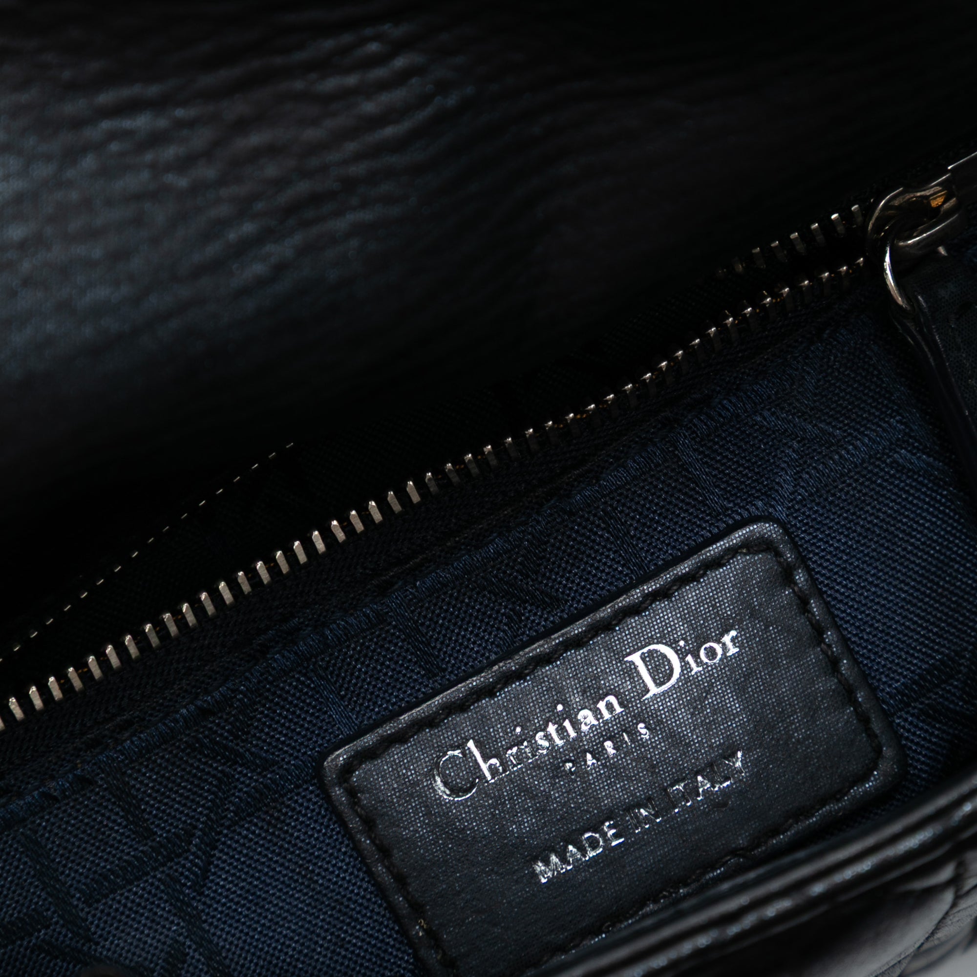 The Lady Dior features a quilted iridescent lambskin leather body, flat leather top handles, a fold-in flap closure, and an interior zip pocket. Inclusion: Dust bag. Retail Price: 3175.00