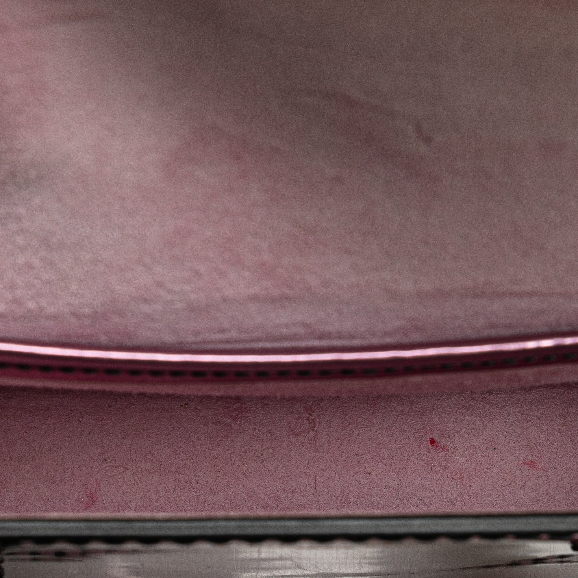 The JaDior Chain Flap Bag features a metallic leather body, a chain link strap, a front flap with magnetic snap closure, and an interior slip pocket. Inclusion: Dust bag. Retail Price: 3500.00