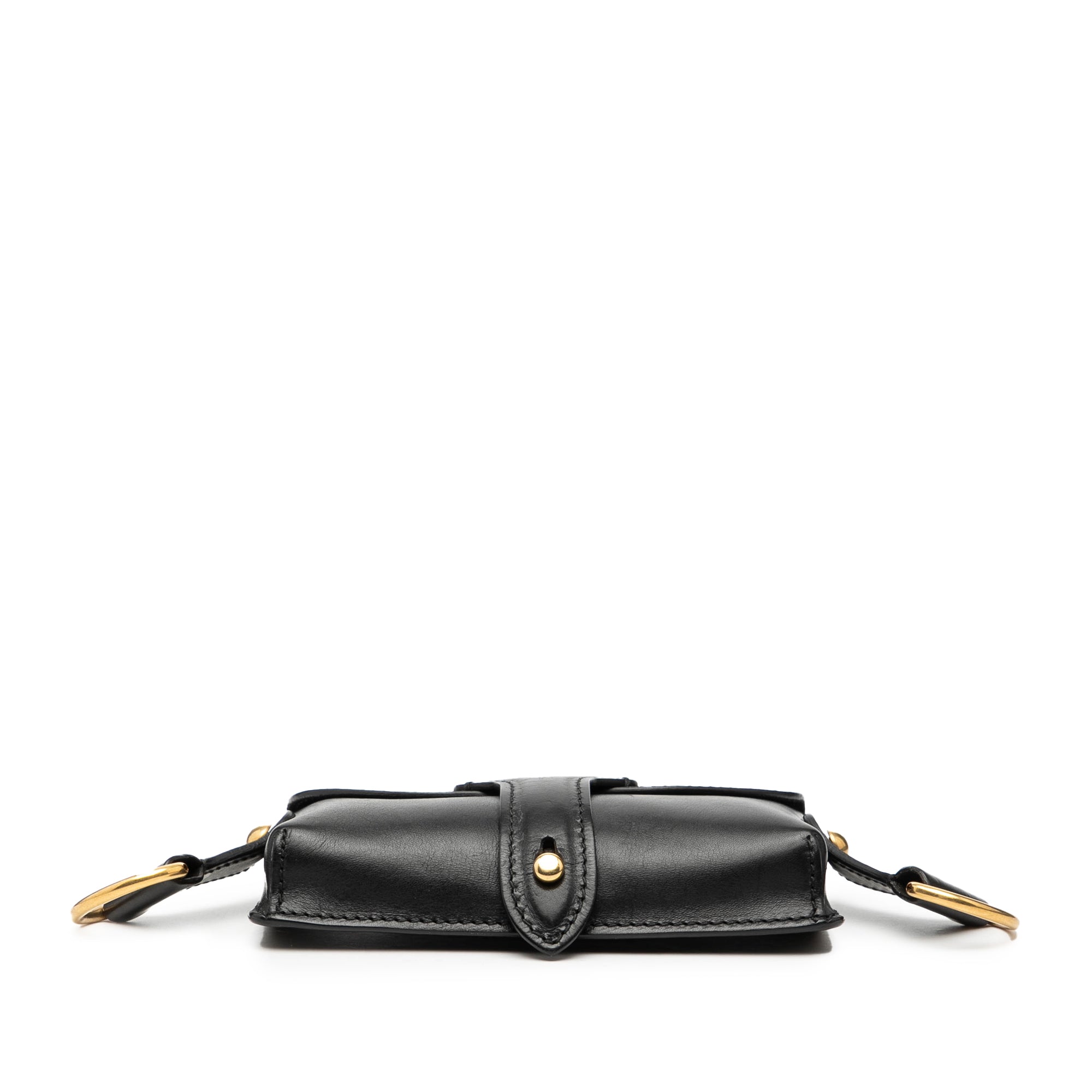 The D Bee Saddle bag features a leather body, a detachable and adjustable flat leather strap, front flap with peg-in-hole closure, and an interior slip pocket. Retail Price: 2700.00