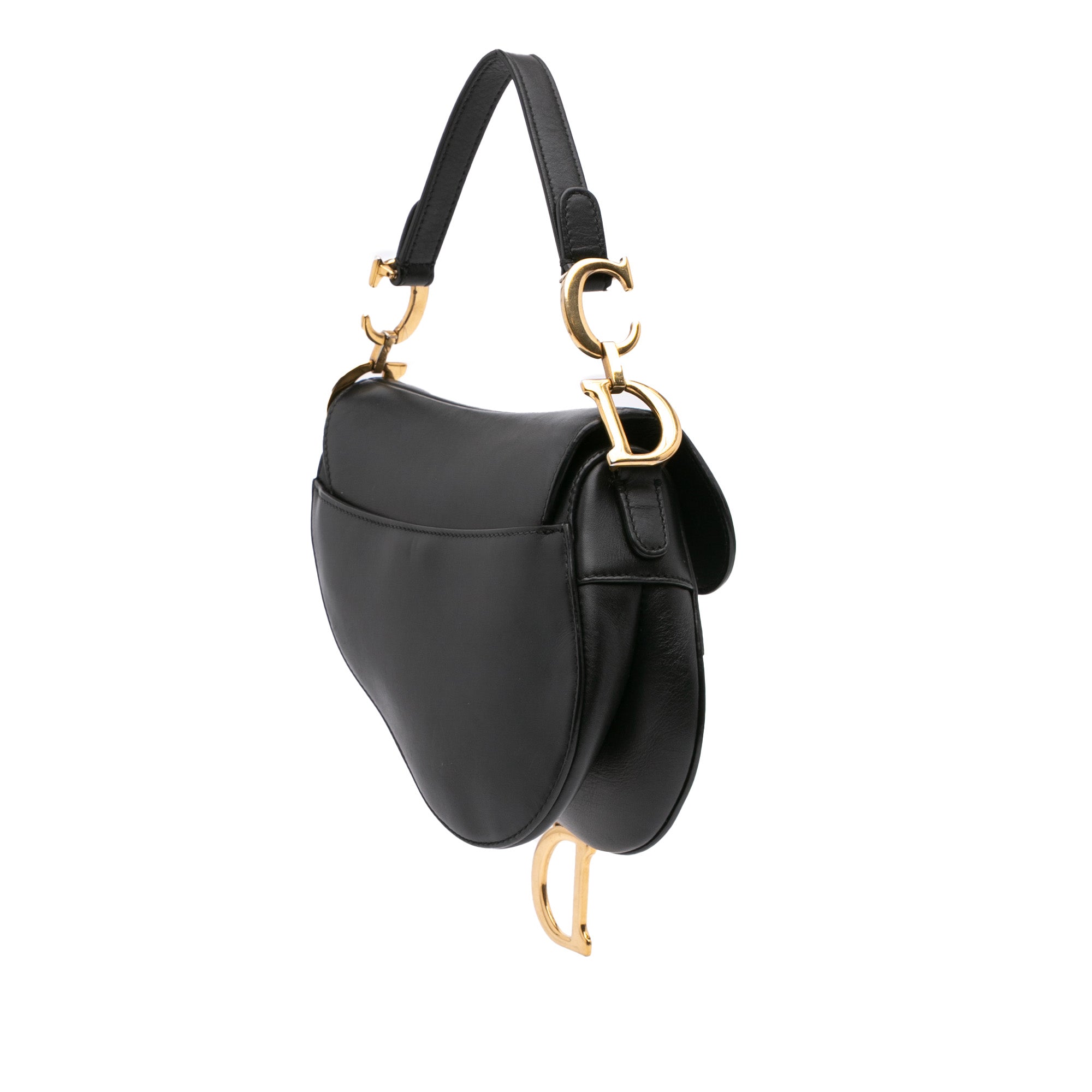 The Saddle features a leather body, a flat leather strap with CD hardware, a front flap, and leather tabs with the D charm. Retail Price: 3950.00