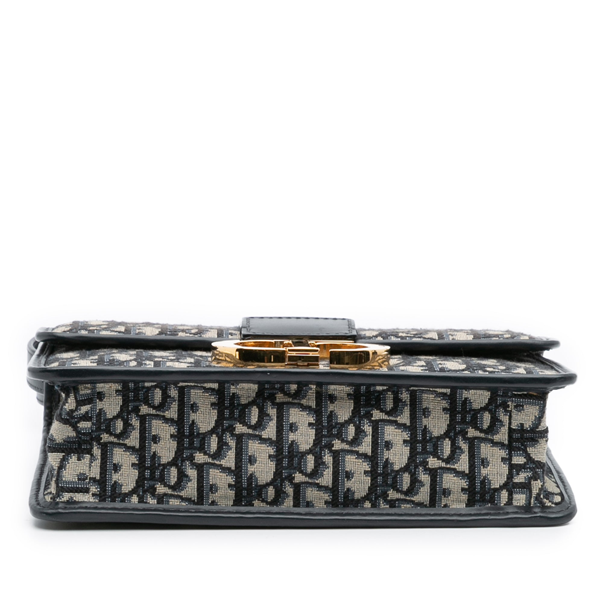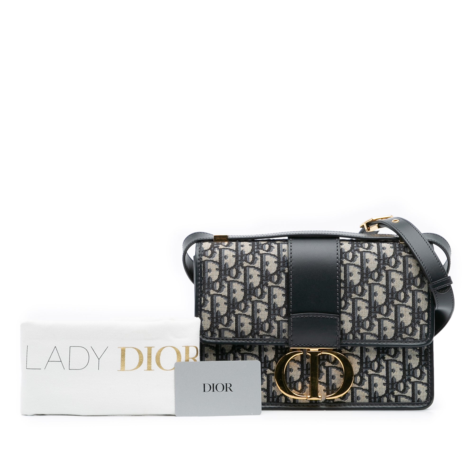 The 30 Montaigne crossbody features a canvas body with leather trim, a gold-tone chain link strap, a front flap with a metal lock closure, and interior zip and slip pockets. Inclusion: Dust bag, authenticity card. Retail Price: 3500.00