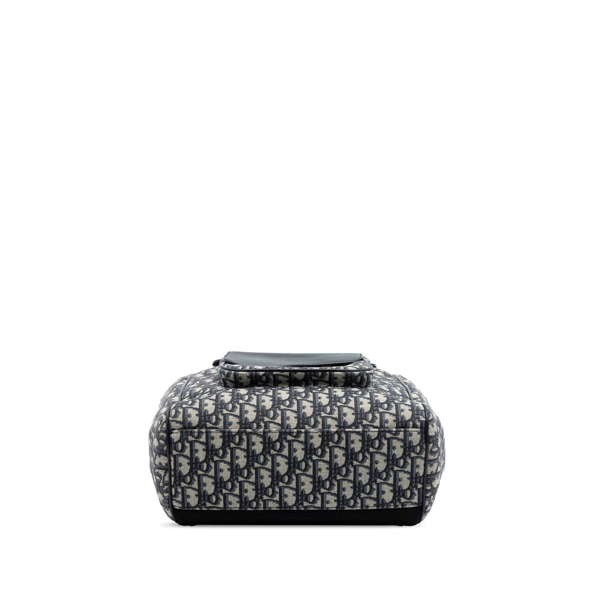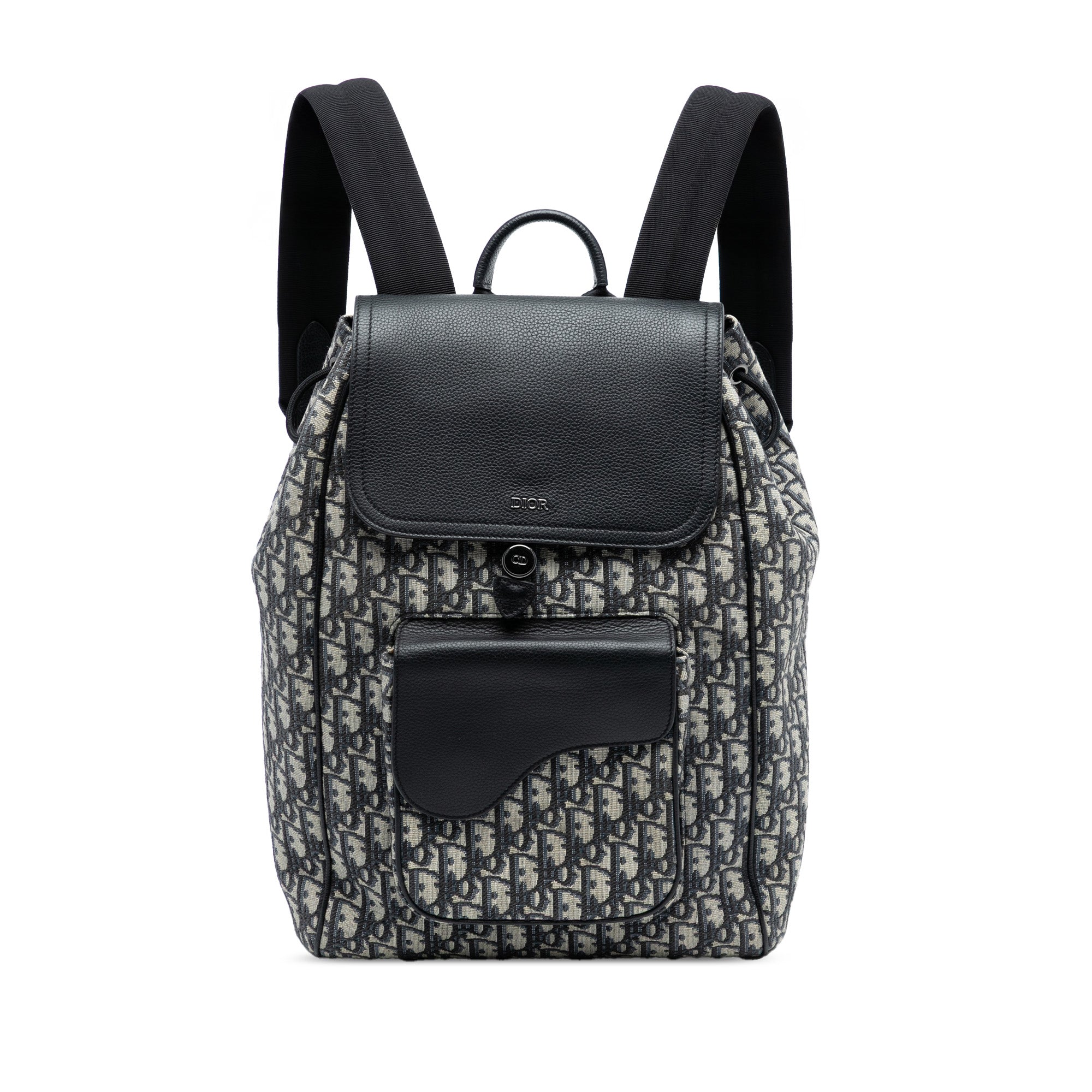 This backpack features a canvas body, a flat leather top handle, adjustable flat back straps, a top leather flap with magnetic snap closure, a top drawstring closure, an exterior front leather flap pocket, and an interior slip pocket. Inclusion: authenticity card. Retail Price: 3500.00