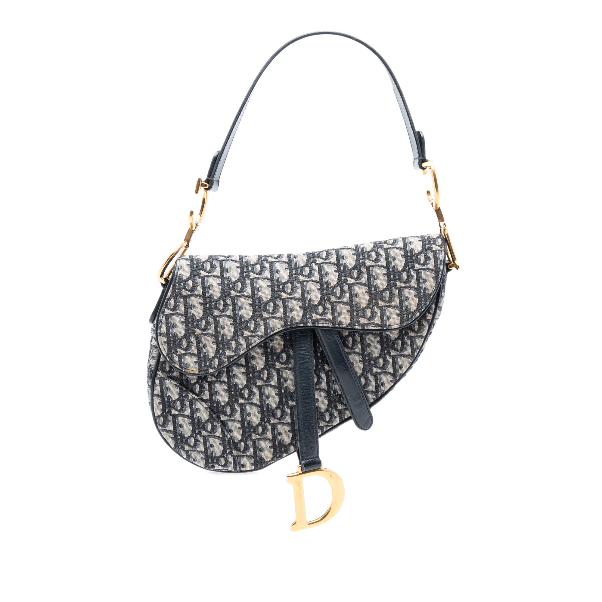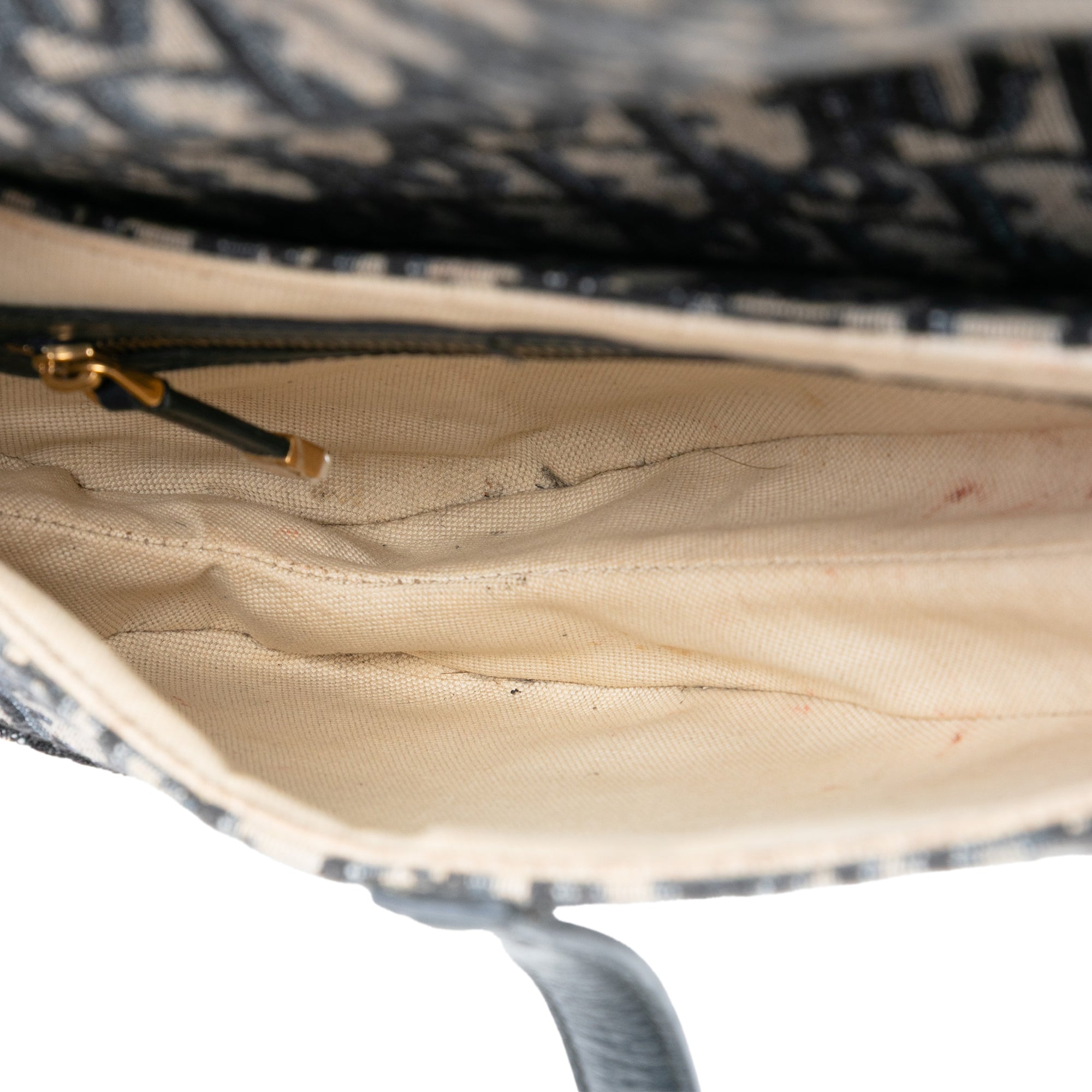 The Saddle features a canvas body with leather trim, a flat leather strap, a front flap with magnetic closure, and an interior zip pocket. Retail Price: 3700.00