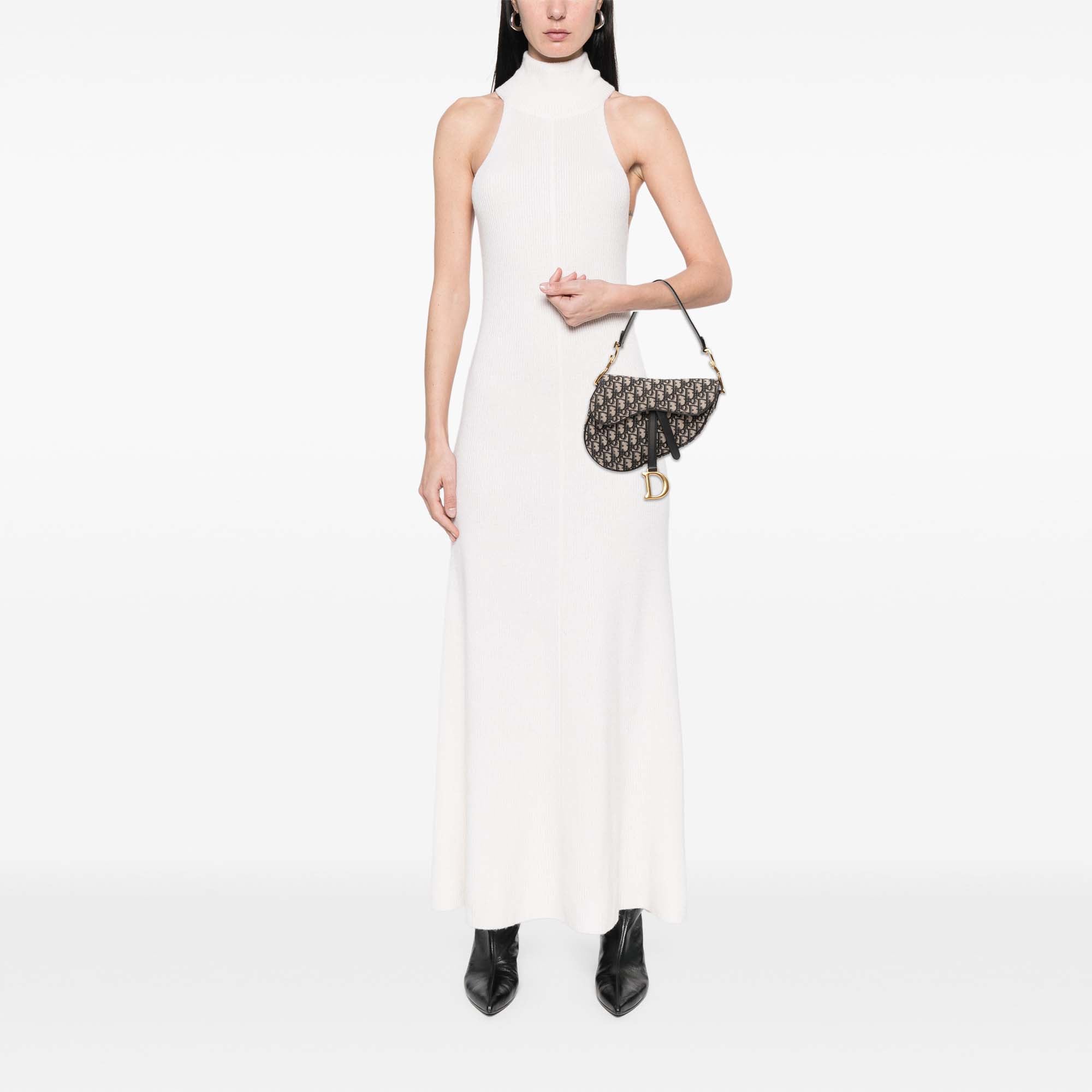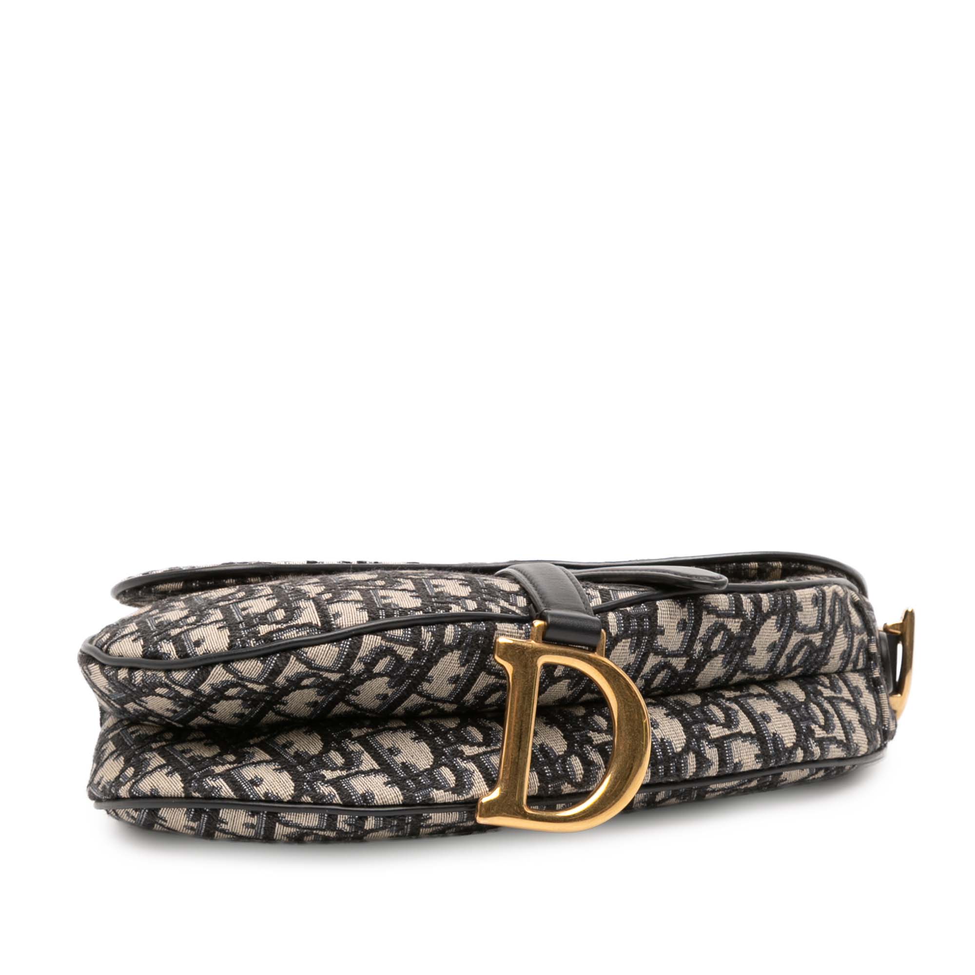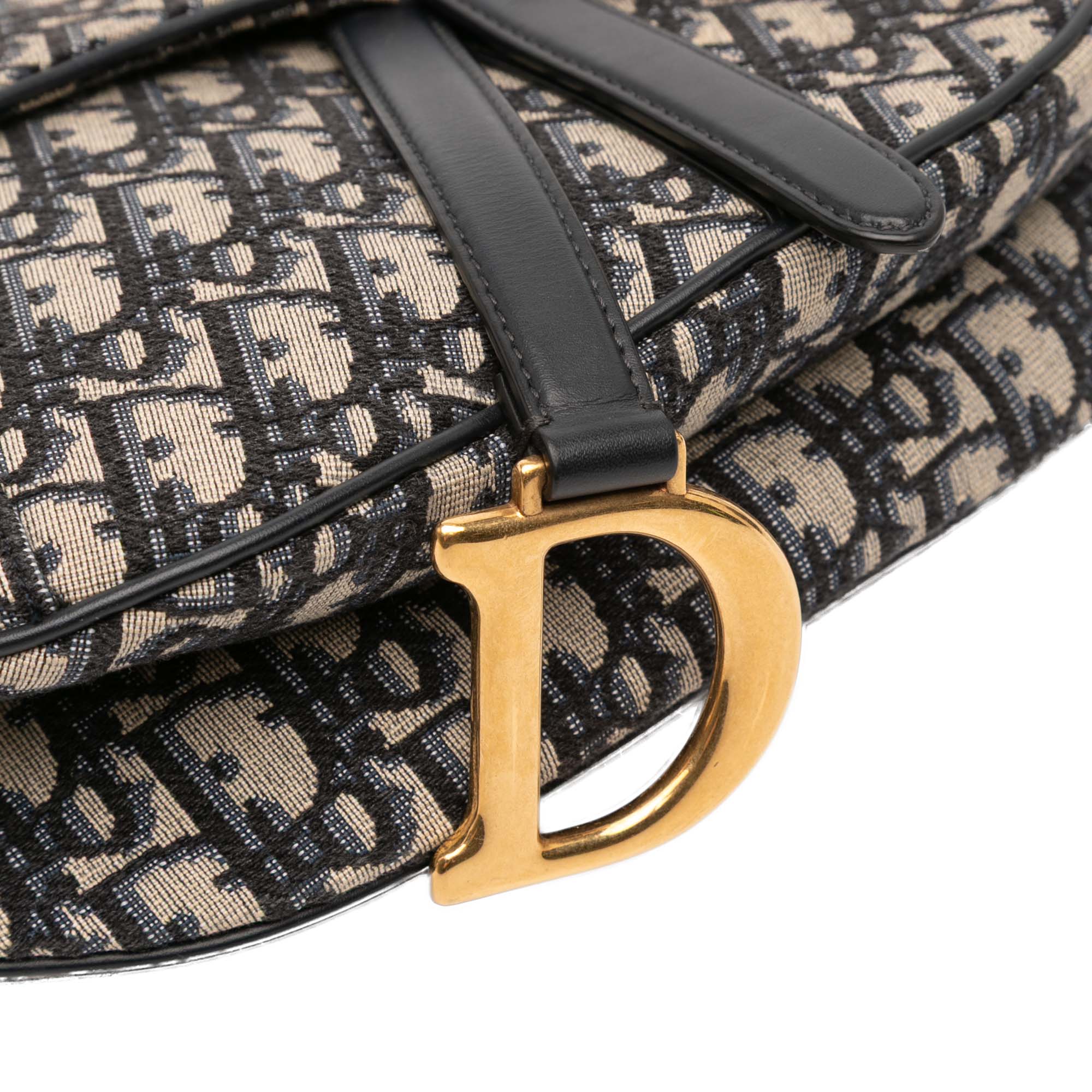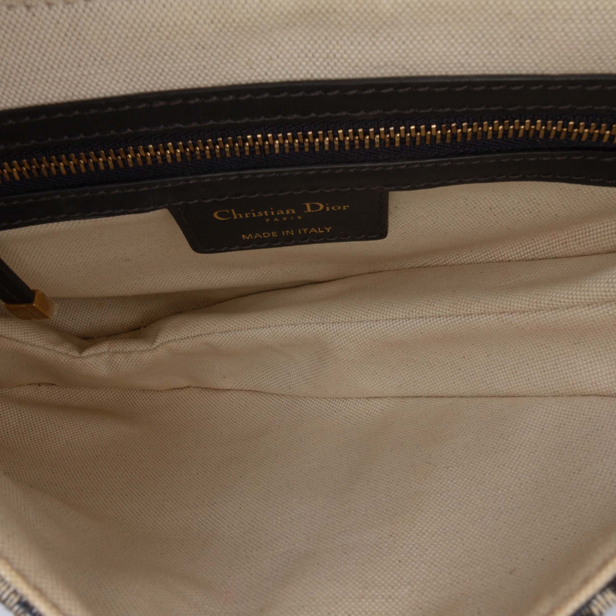 The Saddle features a canvas body with leather trim, a flat leather strap, a front flap with magnetic closure, and an interior zip pocket. Inclusion: Dust bag. Retail Price: 4065.00