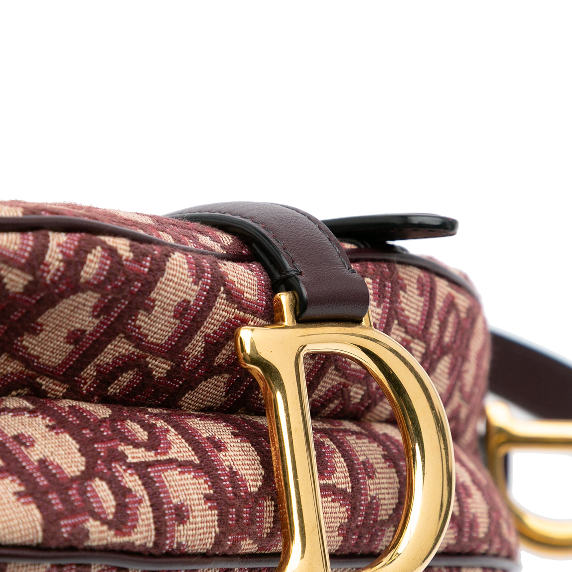 The Saddle features a canvas body with leather trim, a flat leather strap, a flap with magnetic snap closure, and an interior zip pocket. Inclusion: Dust bag. Retail Price: 3875.00