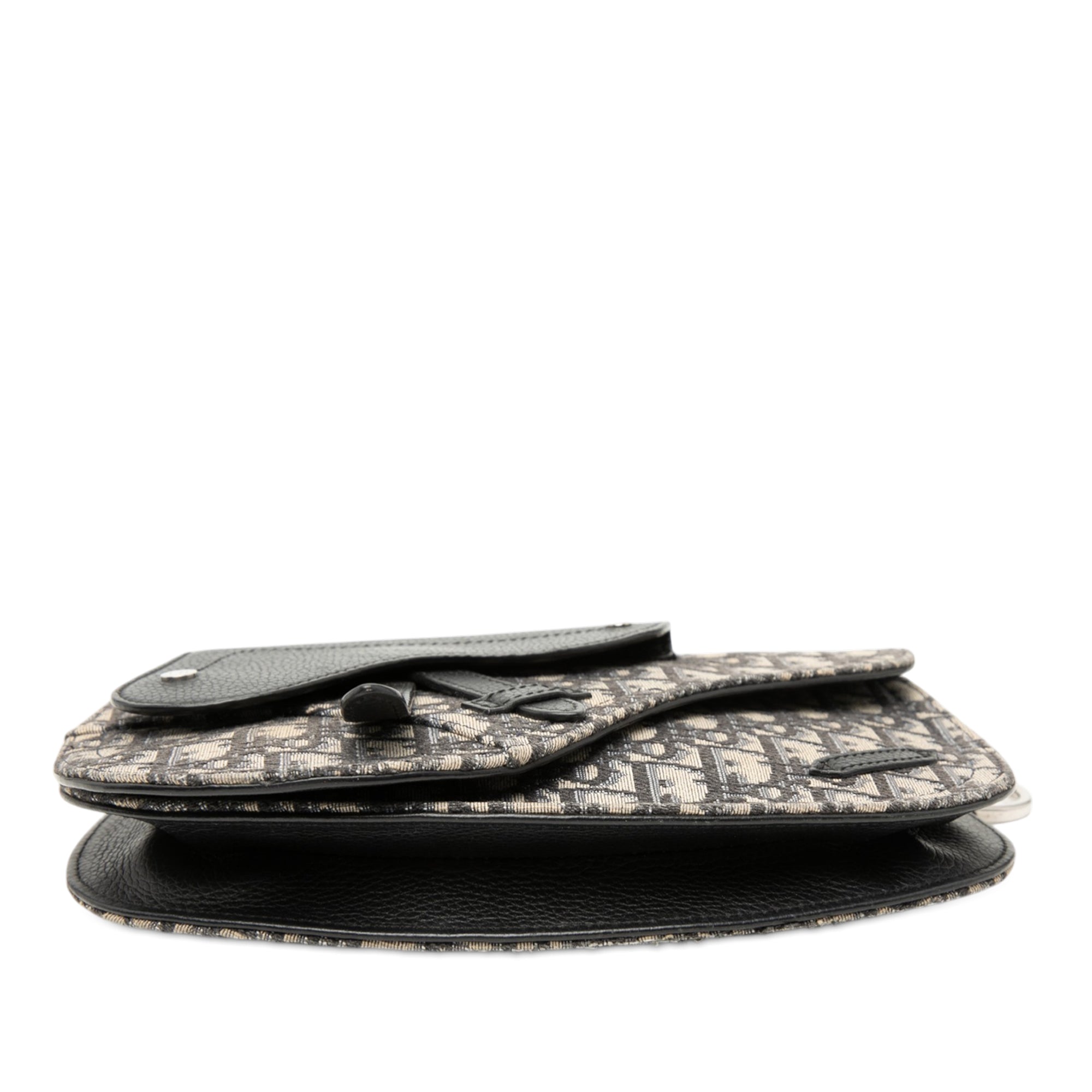 This crossbody bag features a canvas body with leather trim, a flat strap, a flap with button closures, and an exterior zip pocket. Retail Price: 1295.00