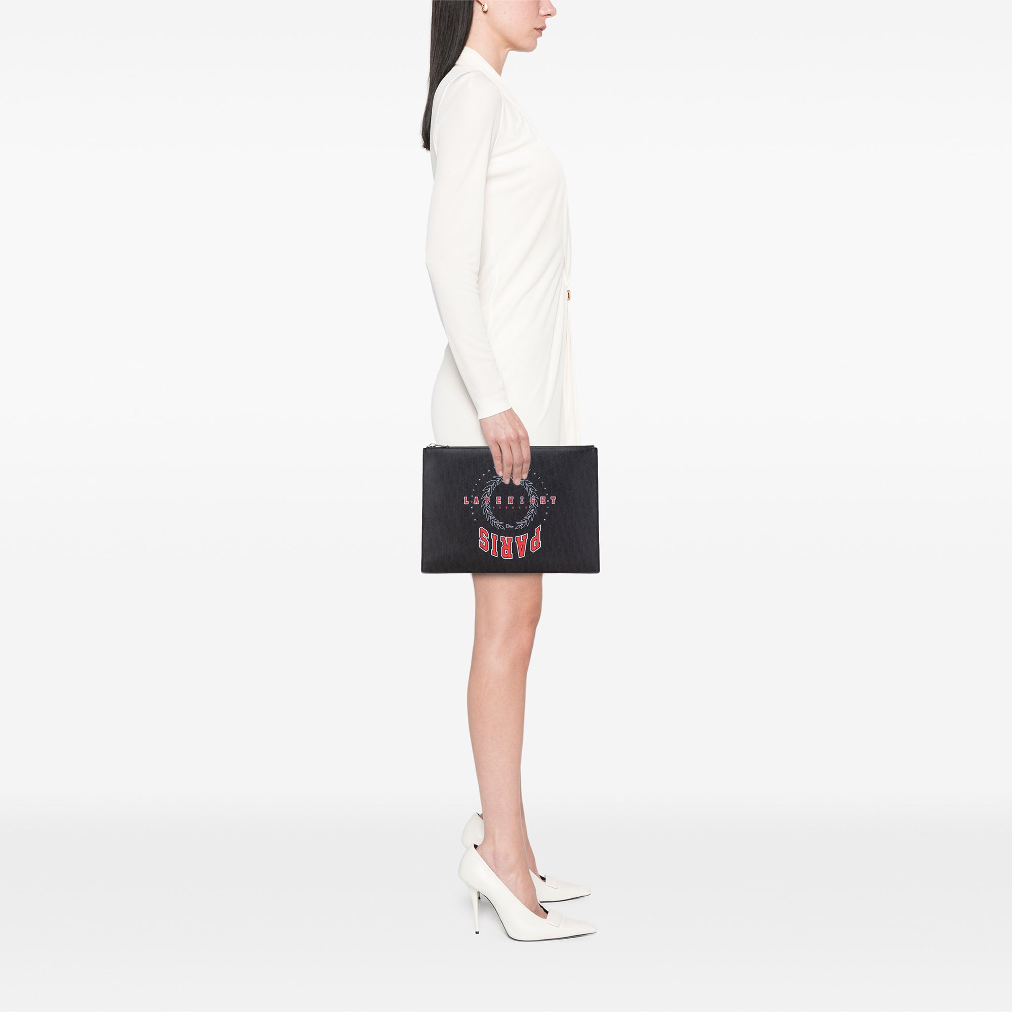 This clutch bag features a calf leather body, and a top zip closure. Retail Price: 830.00