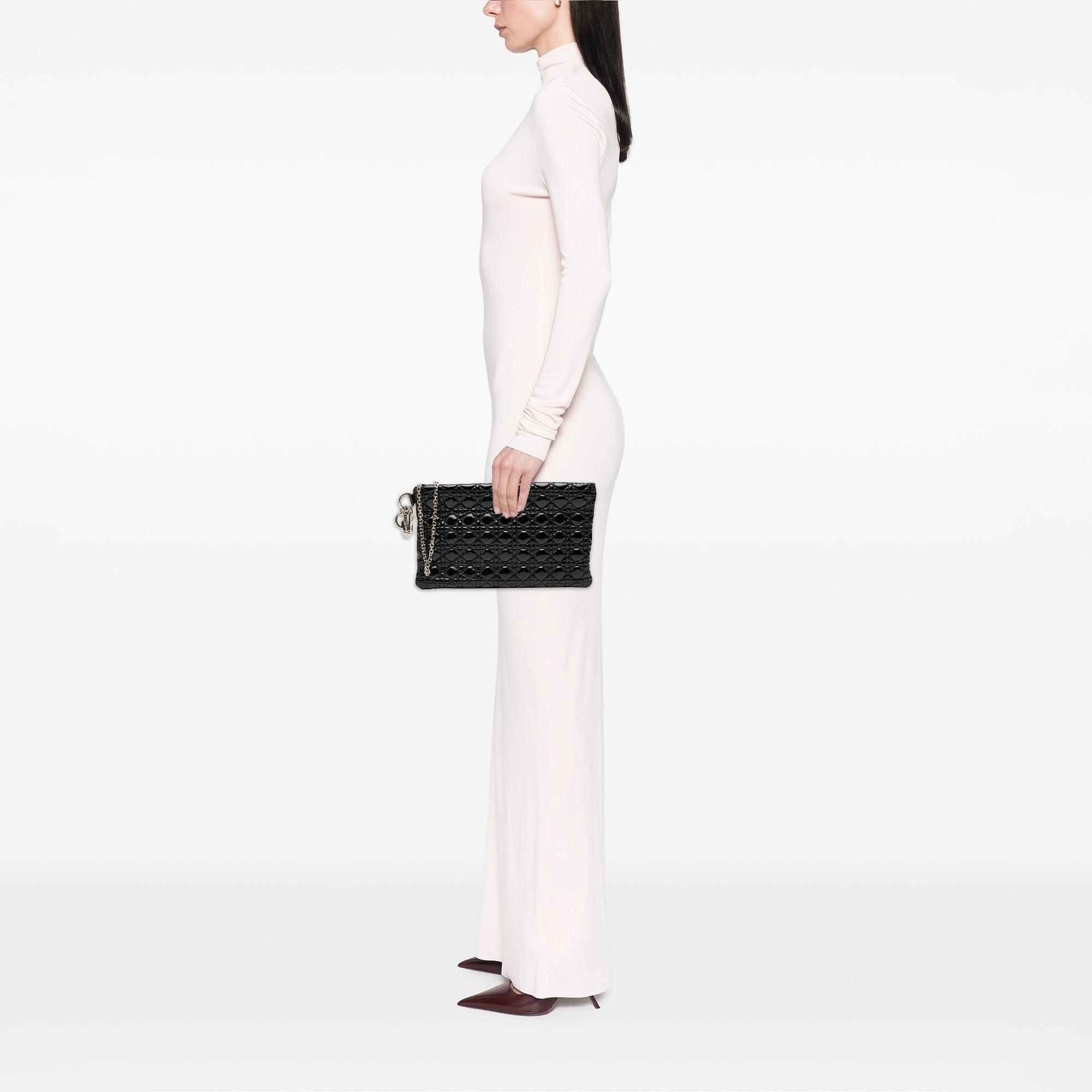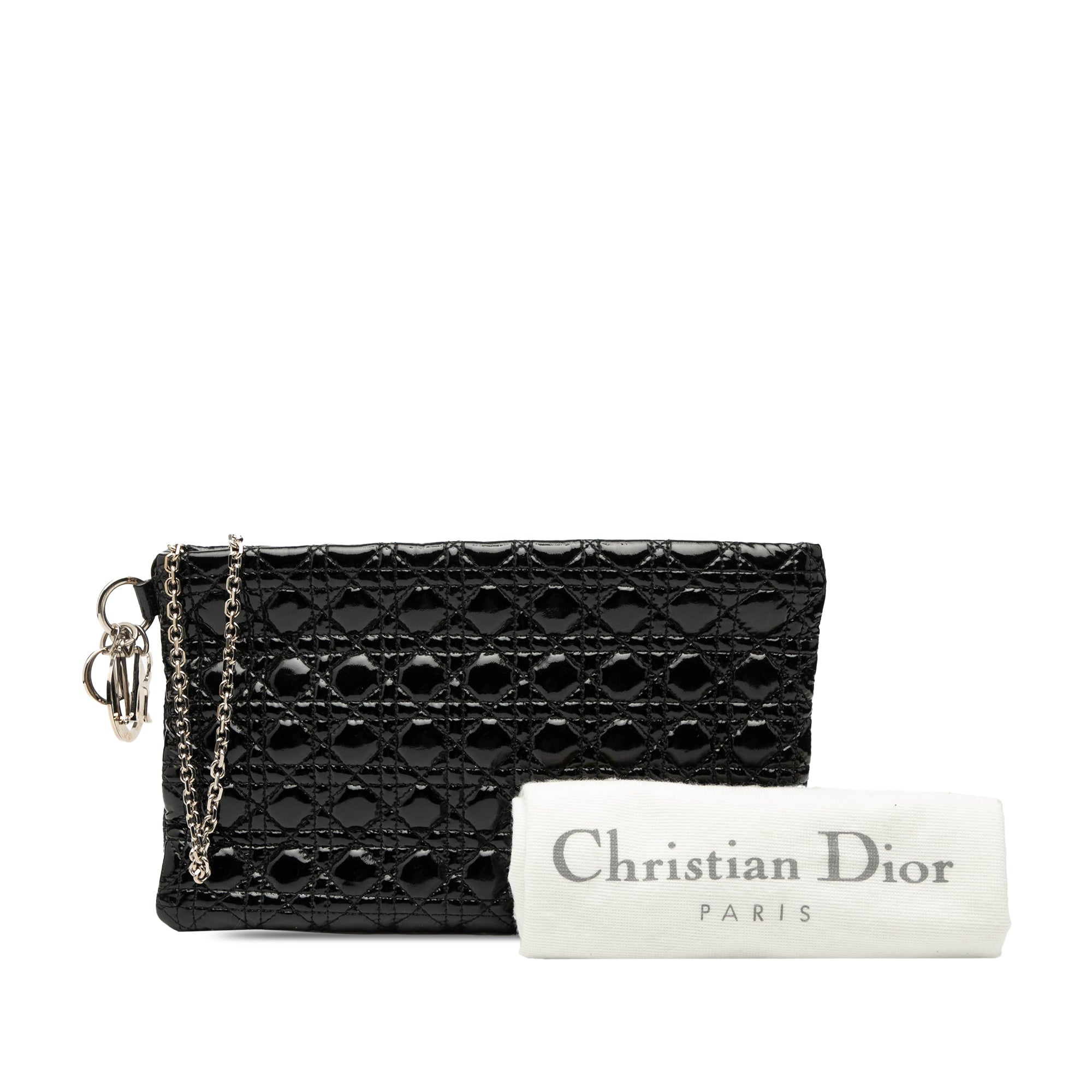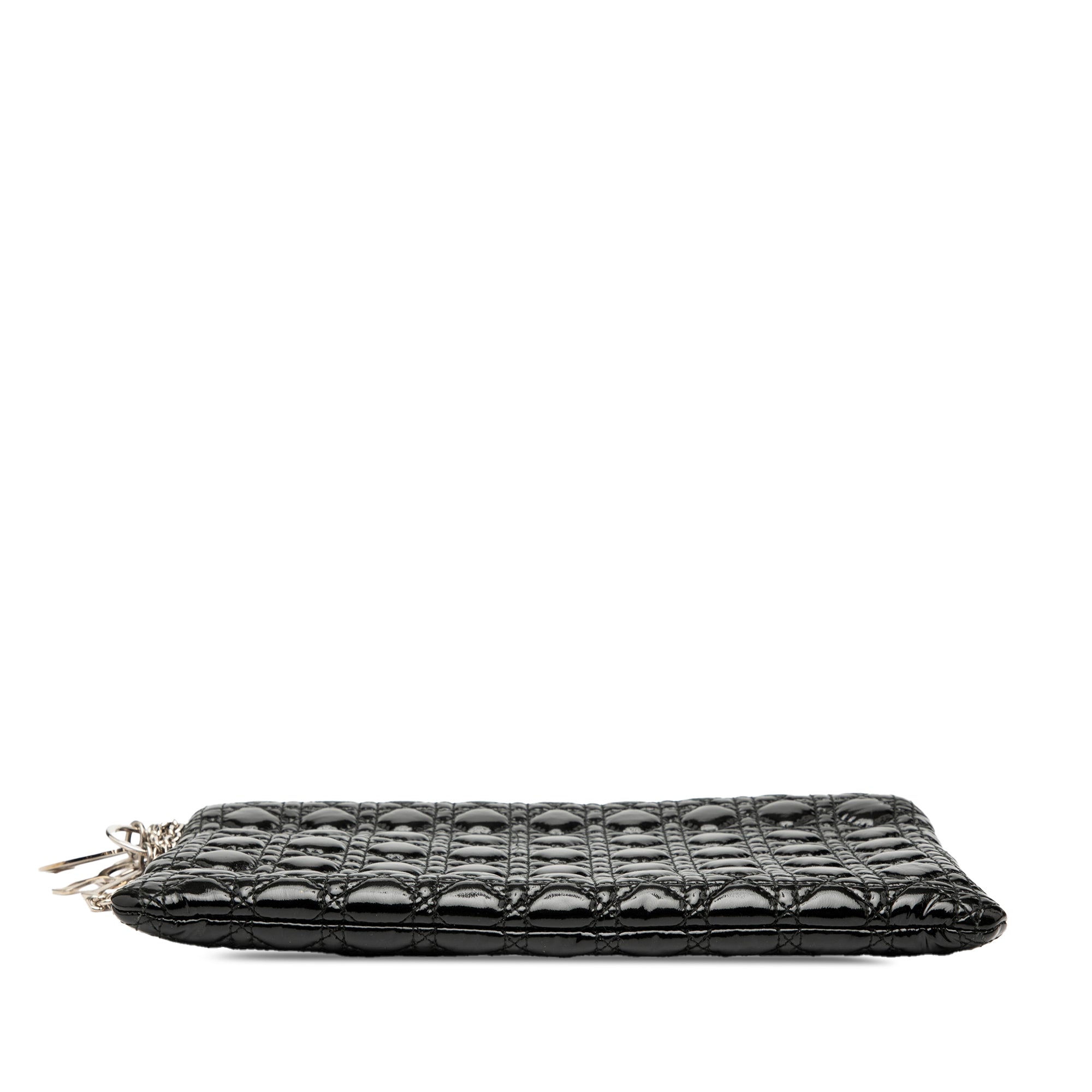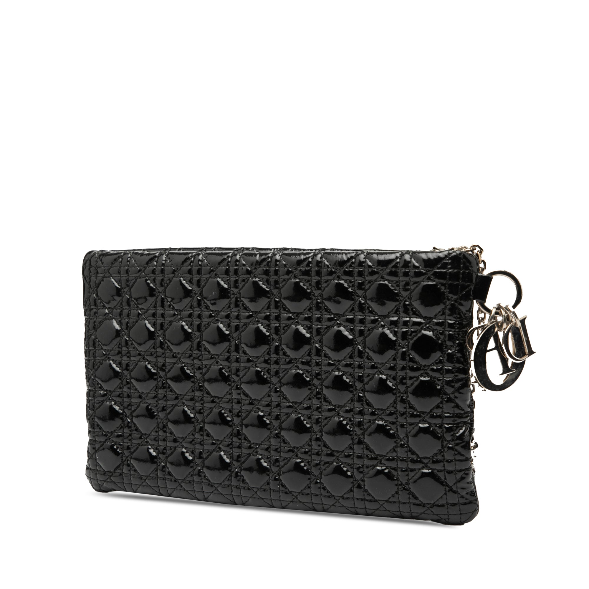 This clutch bag features a quilted patent leather body, a top zip closure, and an interior zip pocket. Inclusion: Dust bag. Retail Price: 1650.00