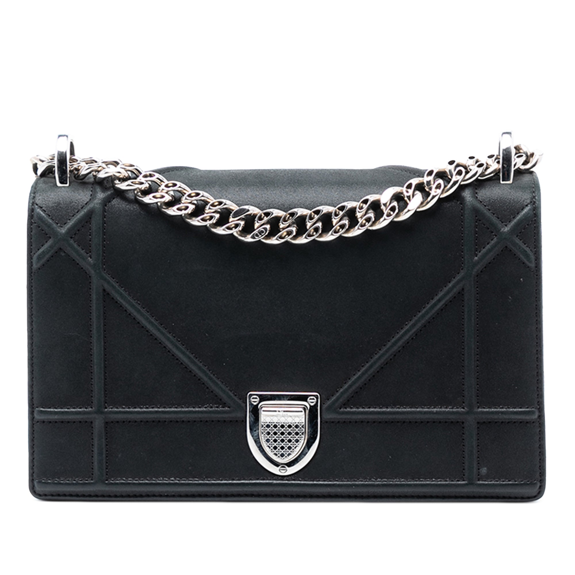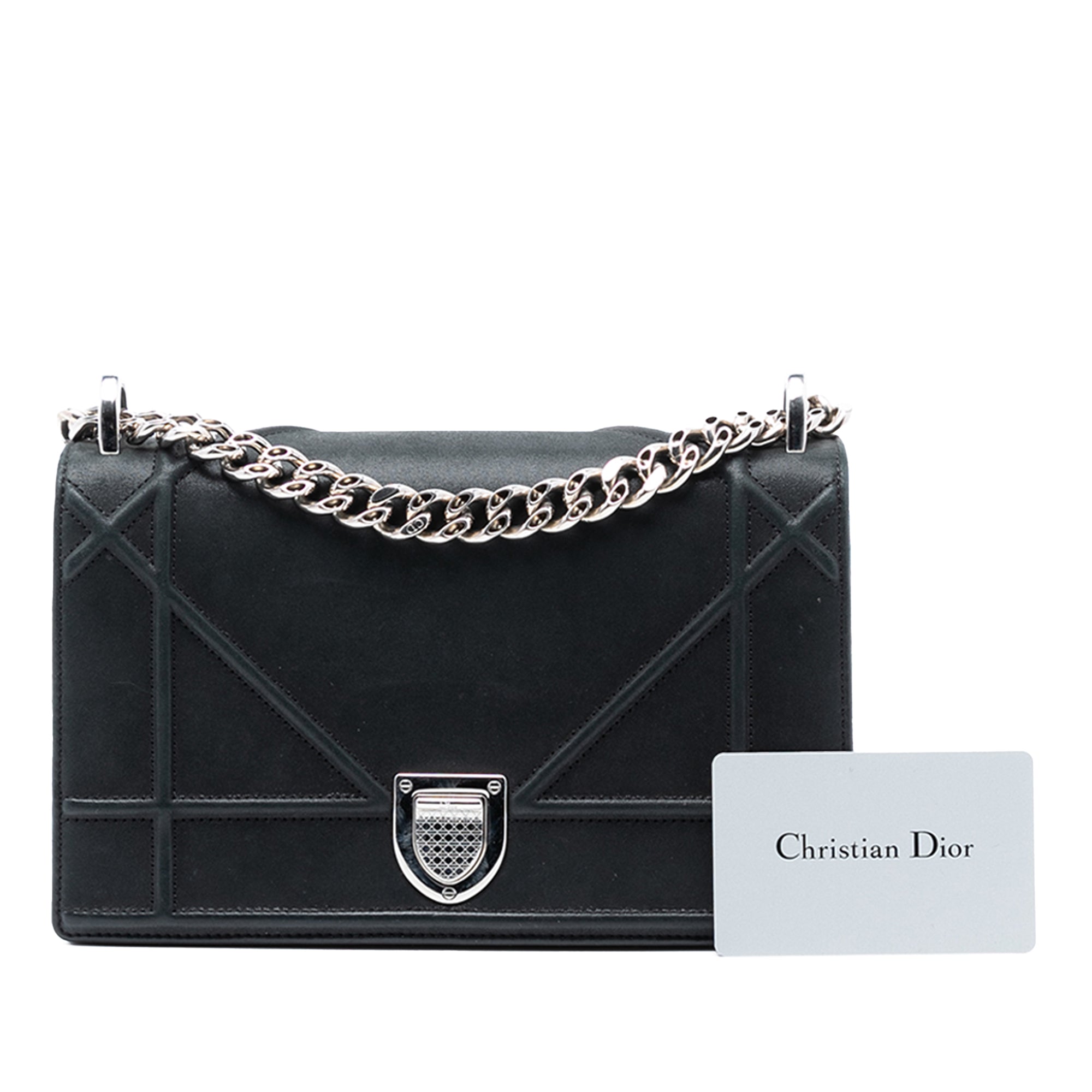 The Diorama features a lambskin leather body, a chain link shoulder strap, a front flap with a push lock closure, and interior zip and slip pockets. Inclusion: authenticity card. Retail Price: 1781.00