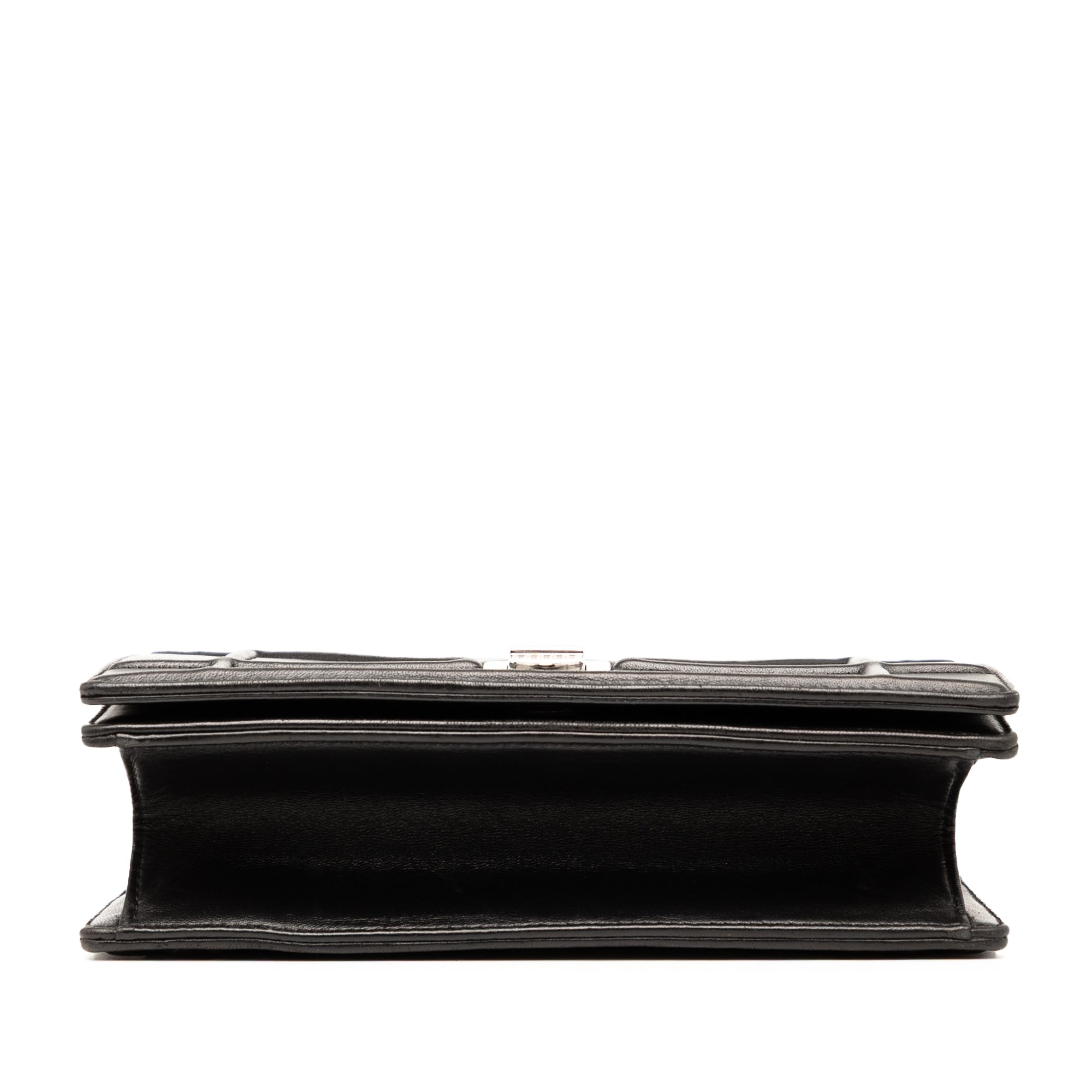 The Diorama features a lambskin leather body, a chain link shoulder strap, a front flap with a push lock closure, and interior zip and slip pockets. Retail Price: 1781.00
