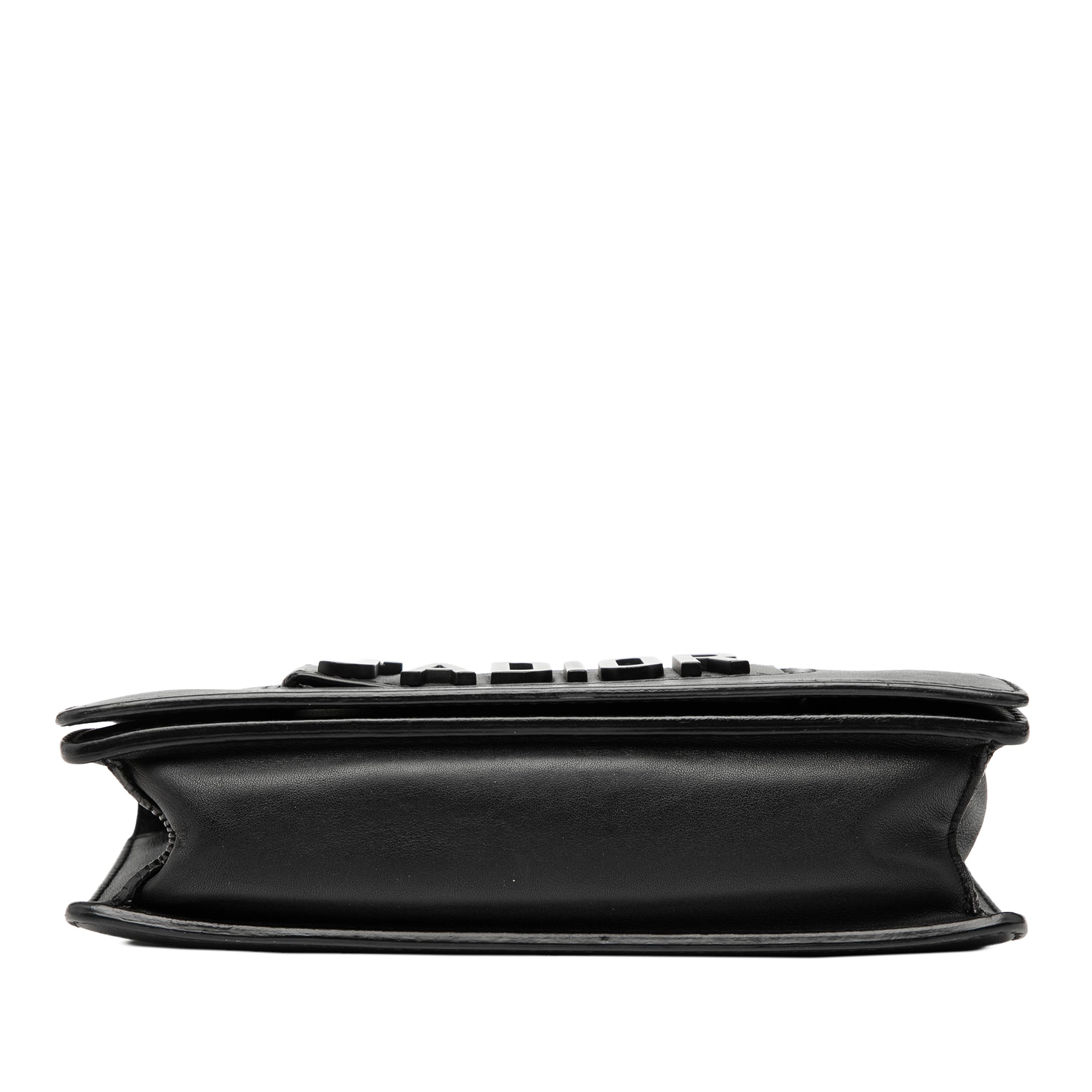 The J'Adior flap bag features a leather body, a chain-link strap, a front flap with a magnetic snap button closure, and an interior slip pocket. Retail Price: 2600.00