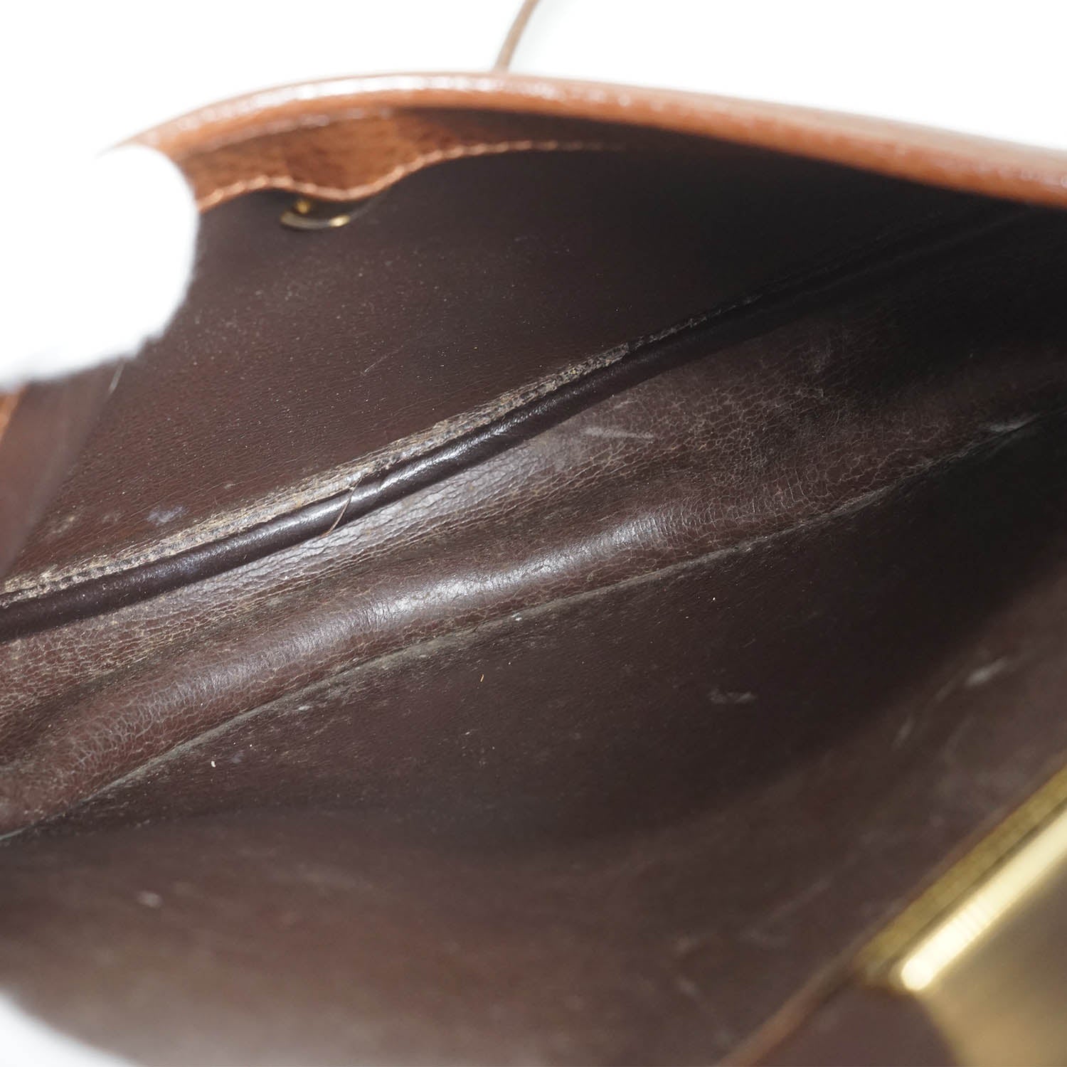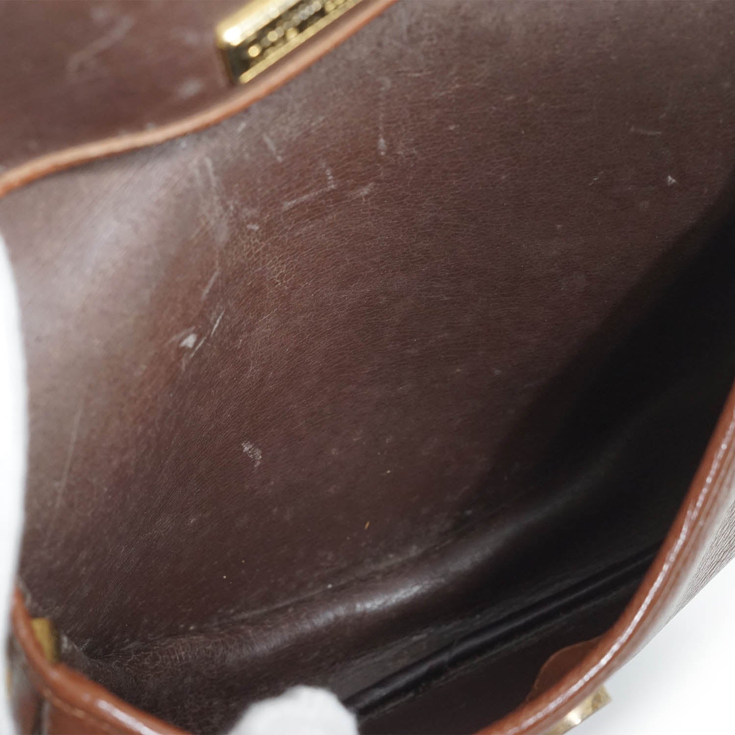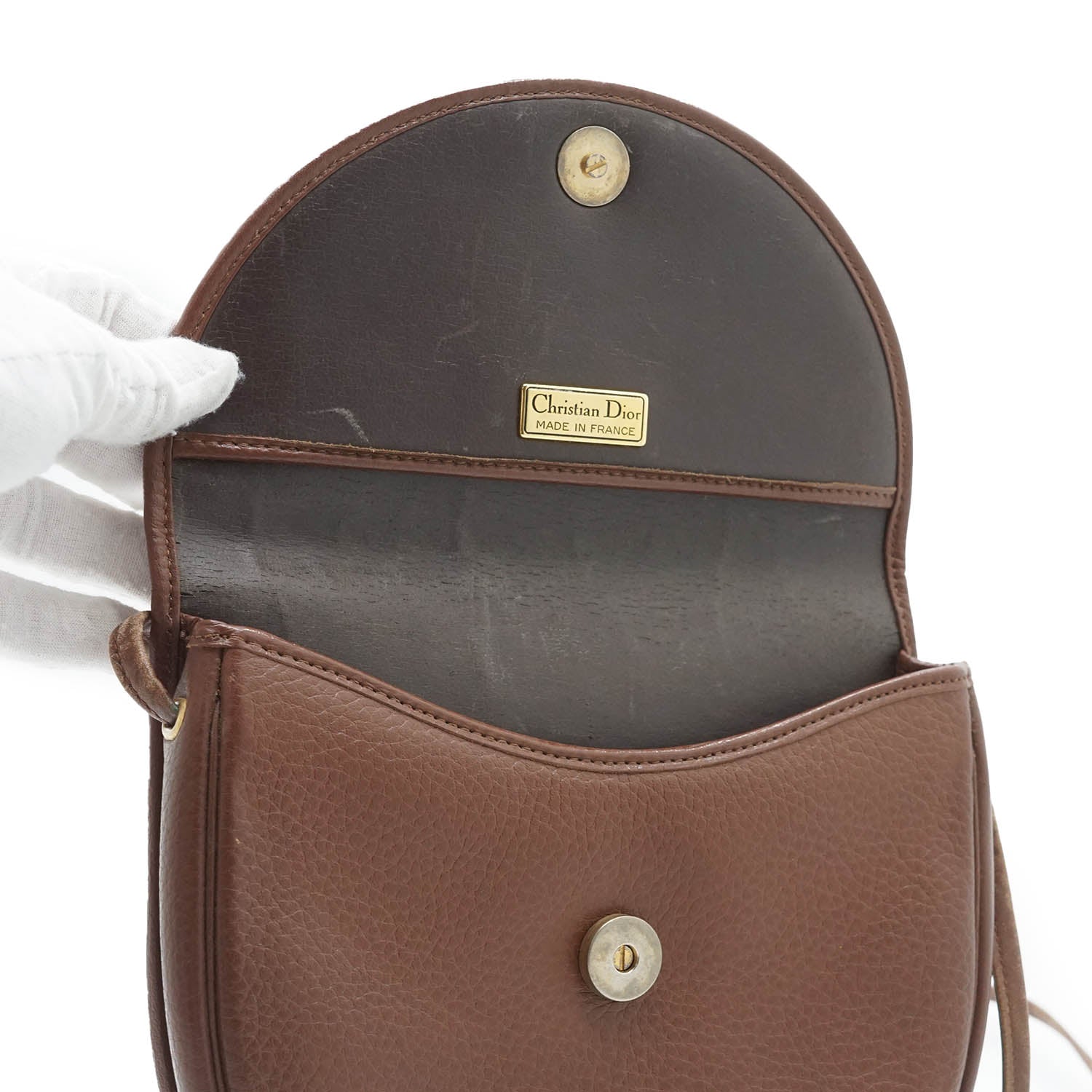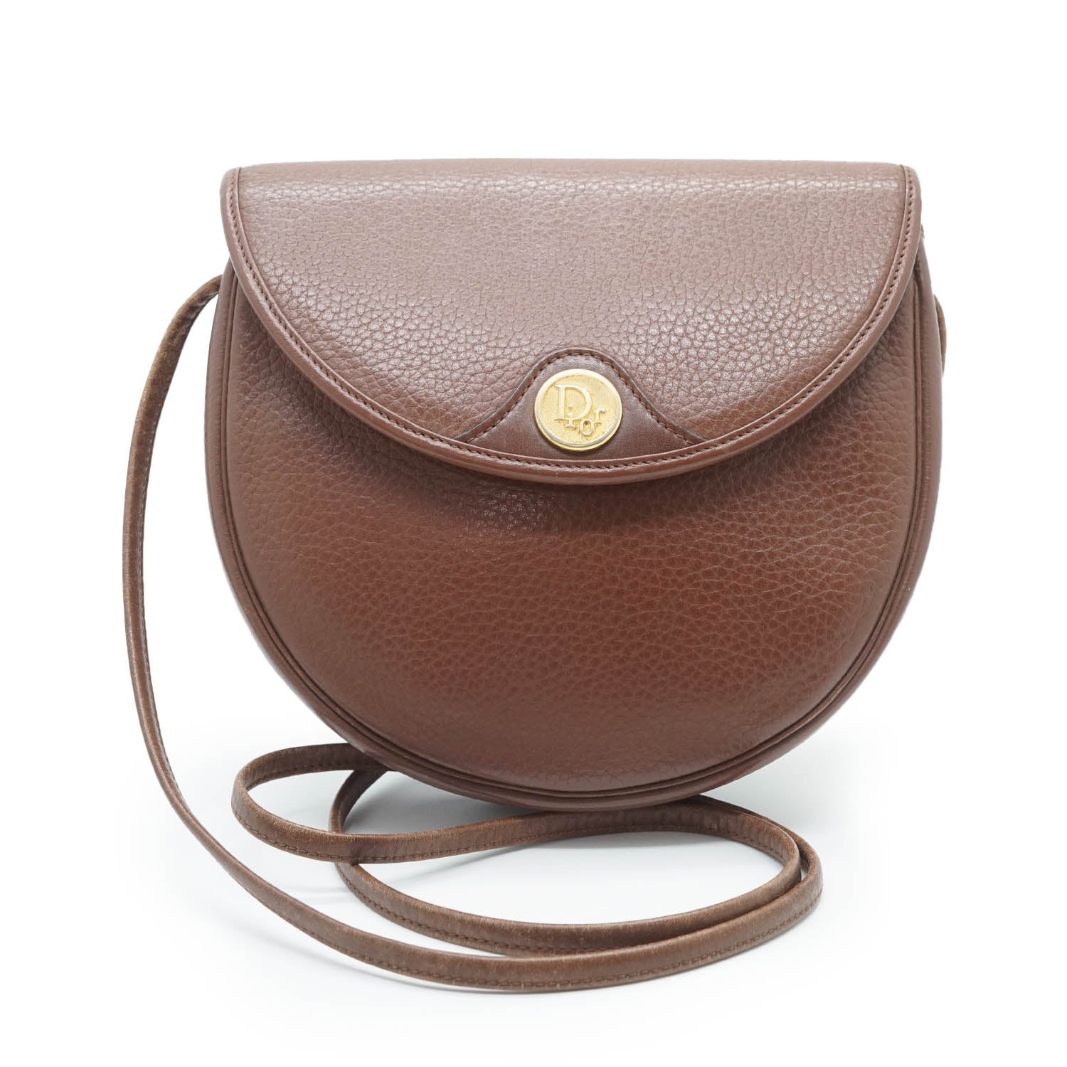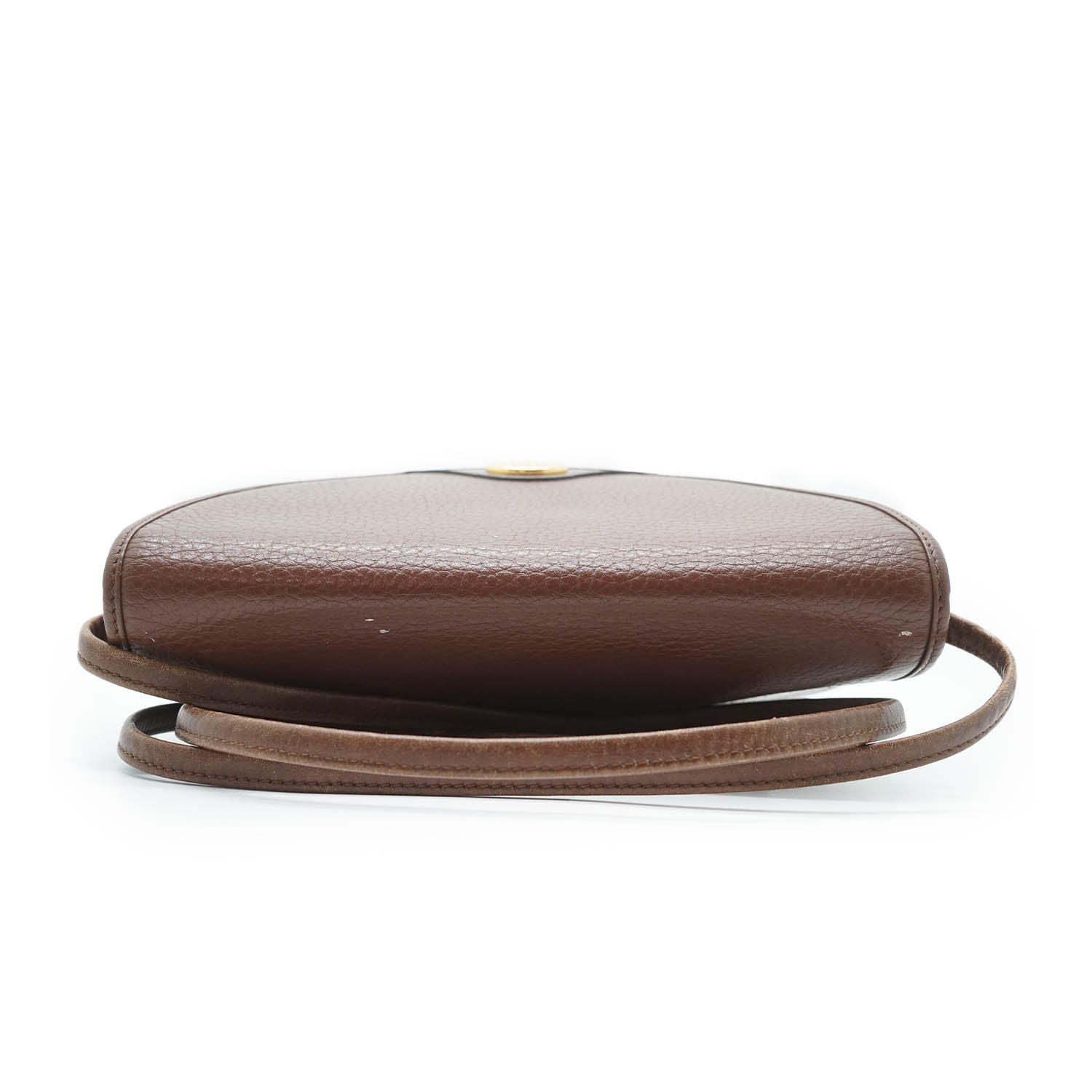 Vintage Rounded Flap Crossbody Bag Brown LeatherDepth: 5cmHeight: 19cmWidth: 20cmShoulder Drop: 57cmOutside Rank: BCInside Rank: BStain: Some black spots on the front logo plate, some black pen marks on the backDiscoloration: Hardware tarnish, overall leather discoloration on the strapScratch: Some scratches on the back and at the top, scratches throughout the insidePeeling: Minor leather cracking on the insideWorn: In generalOdor: Storage smellSKU: 7070003