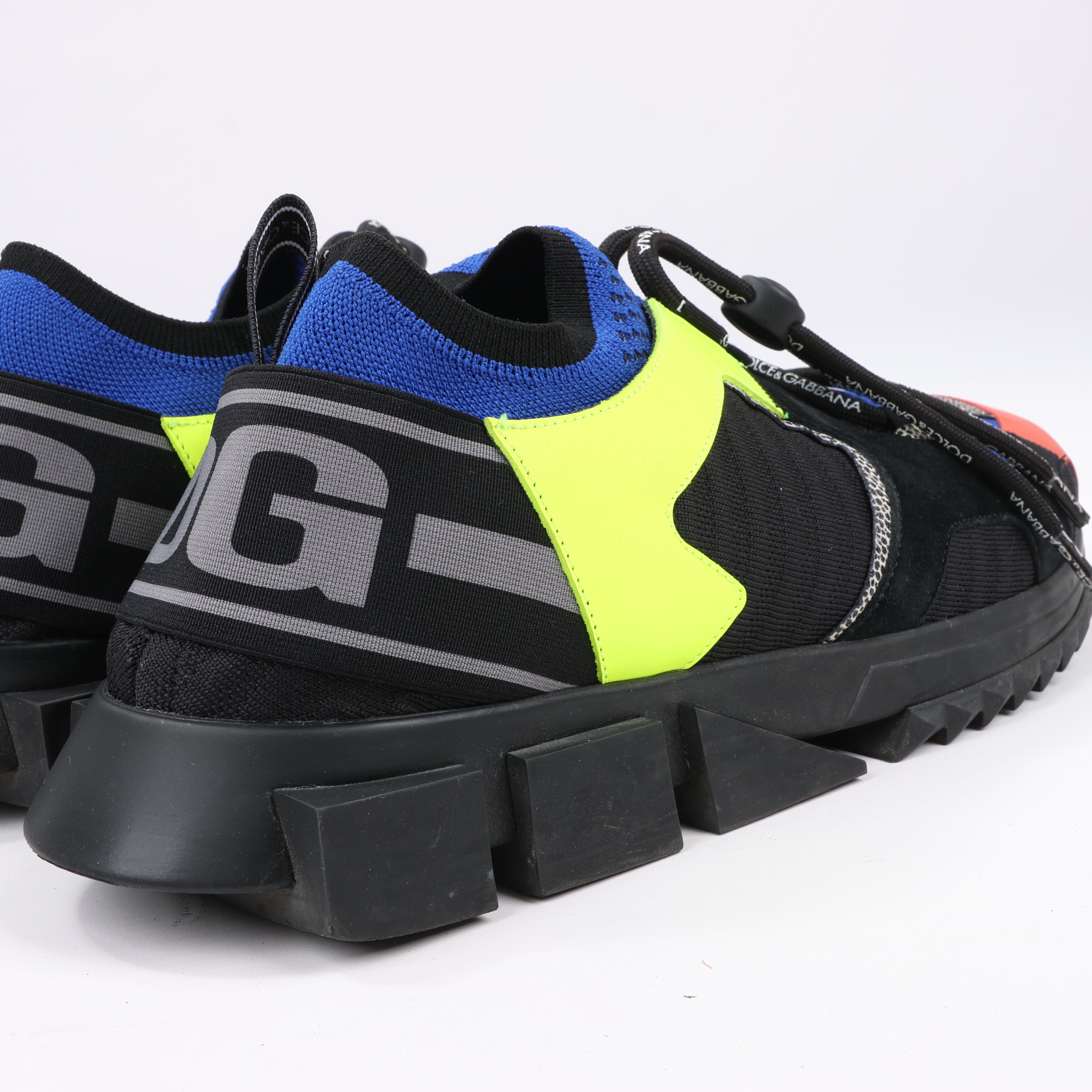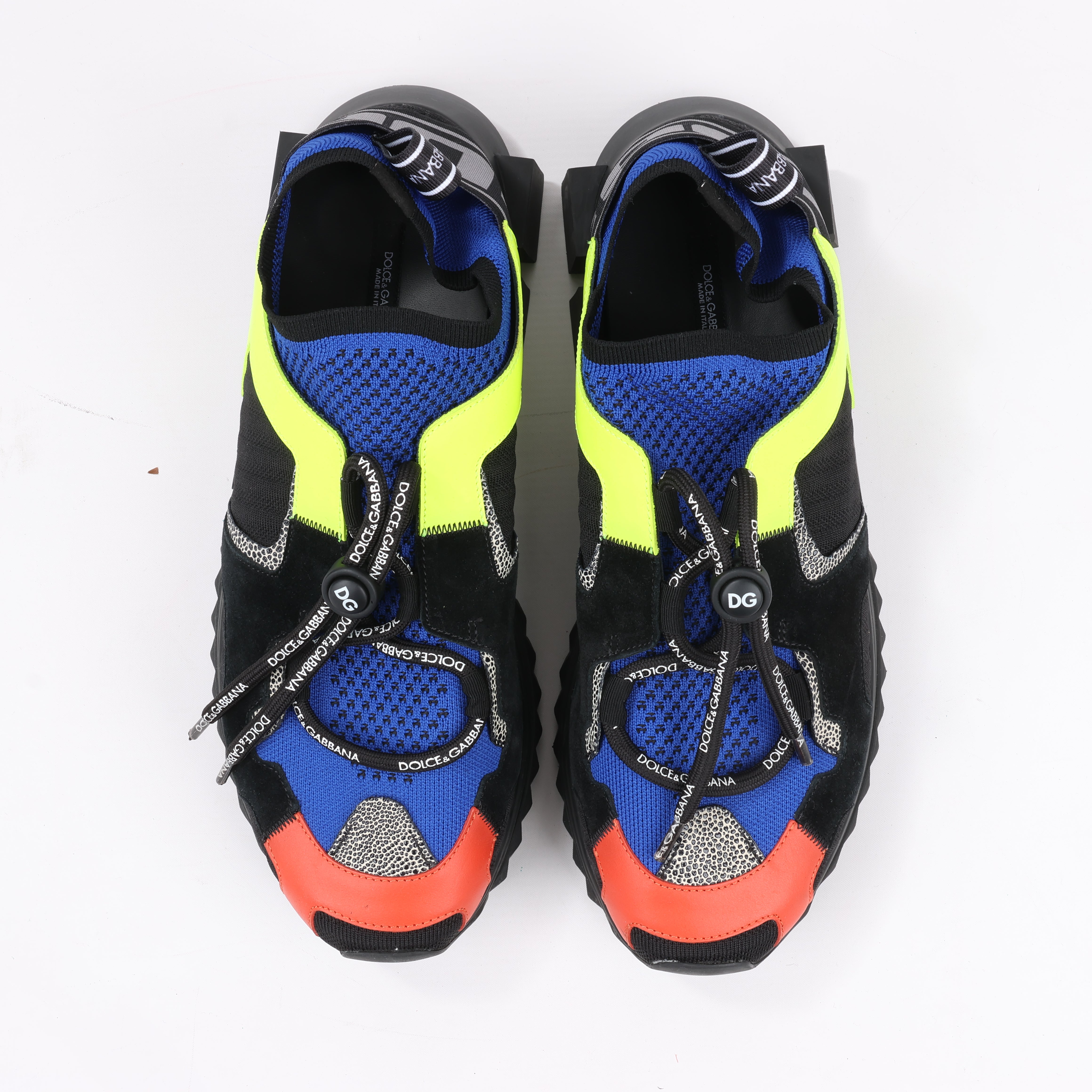 The Dolce & Gabbana Sorrento Fabric Sneakers in multicolor, size 45 EU (CS1718), feature a bold mix of vibrant hues, stretch knit fabric, and a futuristic sole design. These statement sneakers offer unparalleled style and comfort, perfect for modern streetwear.
