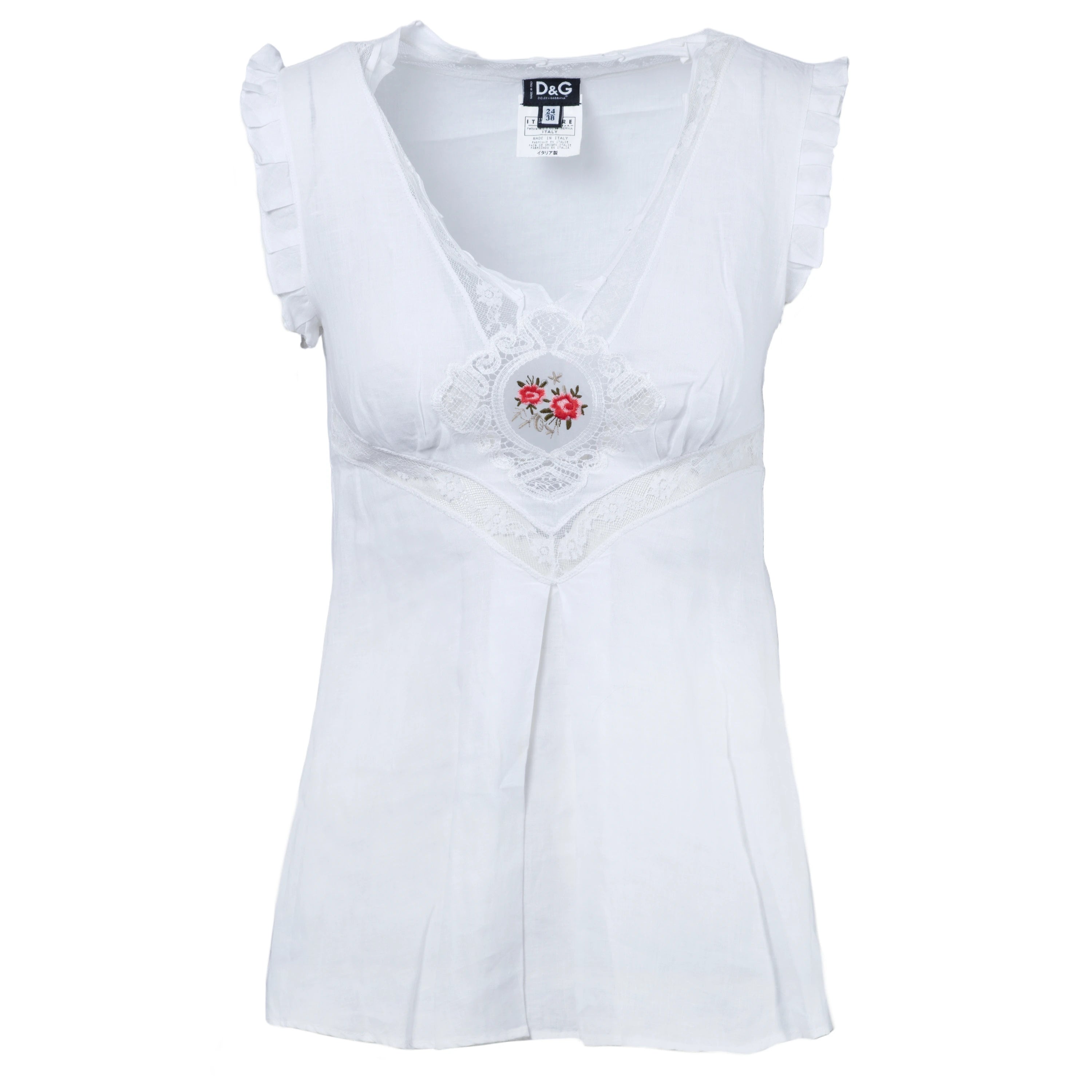 Dolce & Gabbana Floral Lace Top with Ruffled Cap Sleeves - '10s