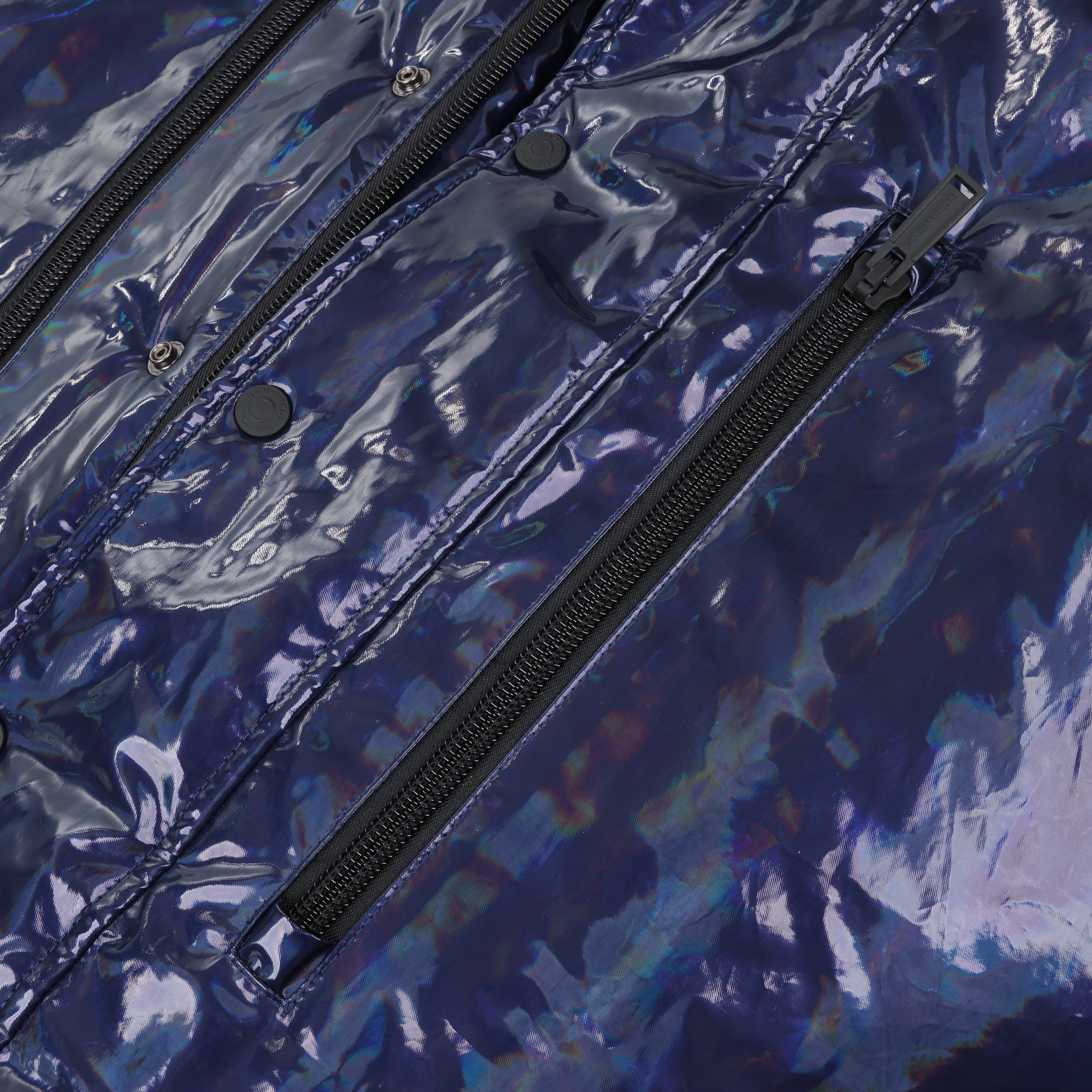 This eye-catching DSQUARED2 puffer jacket in glossy navy blue is designed to make a bold statement. With its high-shine finish, oversized fit, and functional features like multiple pockets and adjustable hood, it’s a must-have for winter street style.
