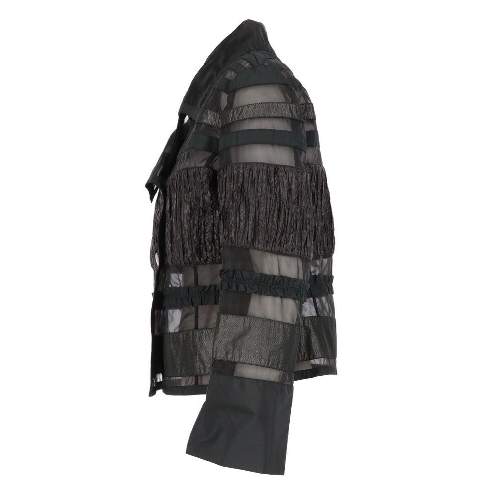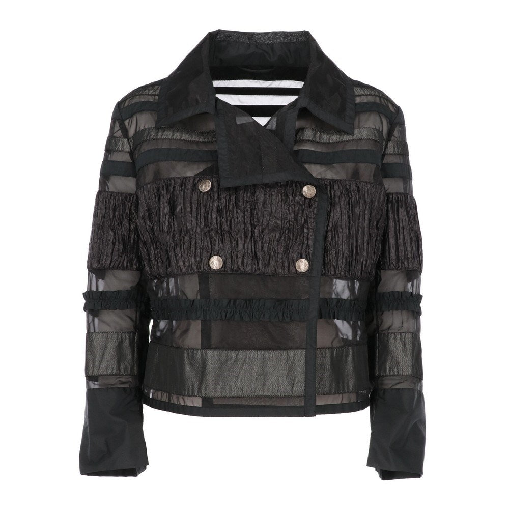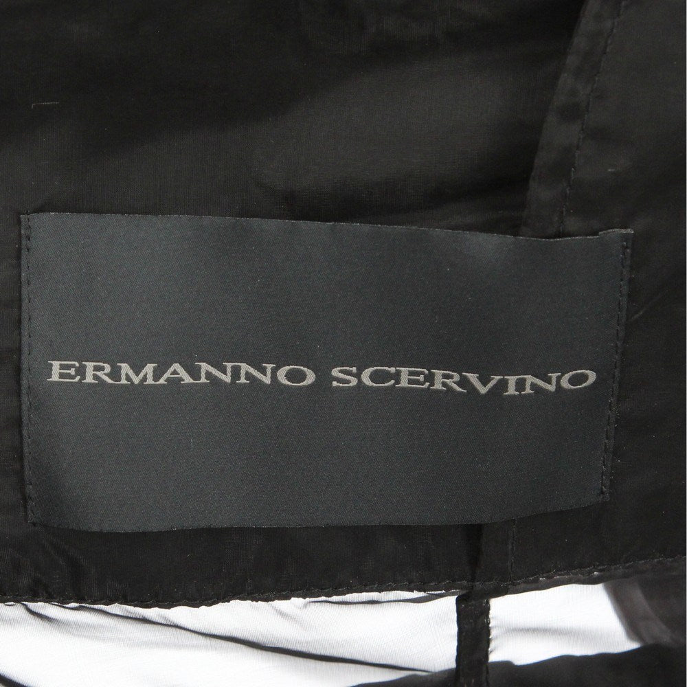 Ermanno Scervino black synthetic fabric jacket with applications. Classic lapel collar, double-breasted closure with snap buttons and long sleeves. The item shows some slight signs of use, as shown in the pictures.