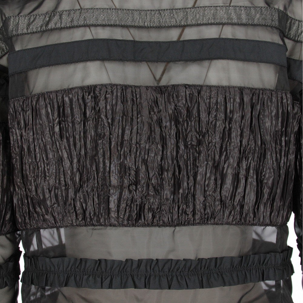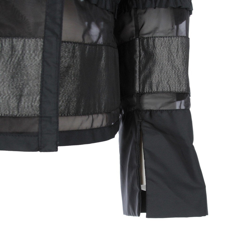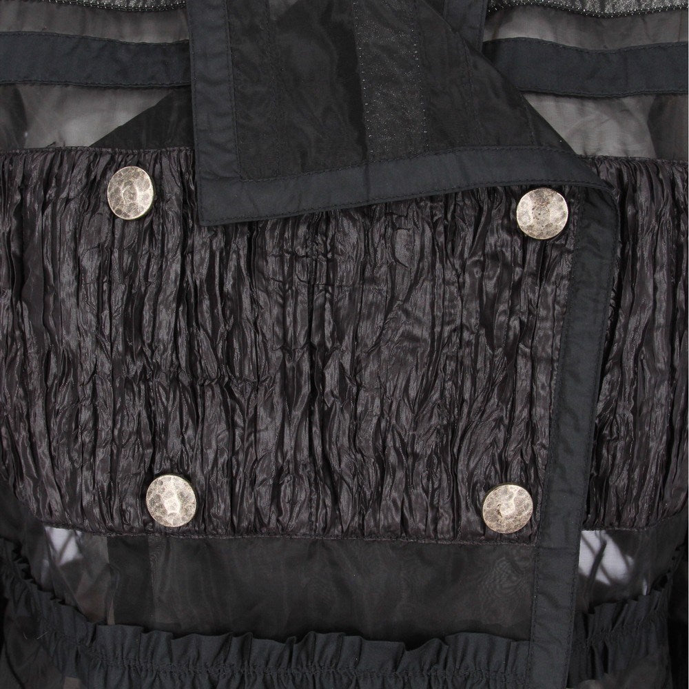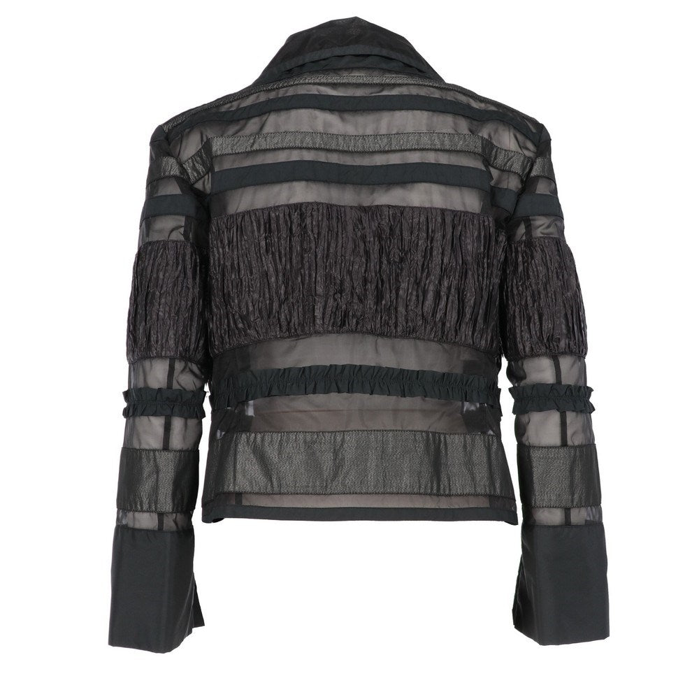 Ermanno Scervino black synthetic fabric jacket with applications. Classic lapel collar, double-breasted closure with snap buttons and long sleeves. The item shows some slight signs of use, as shown in the pictures.