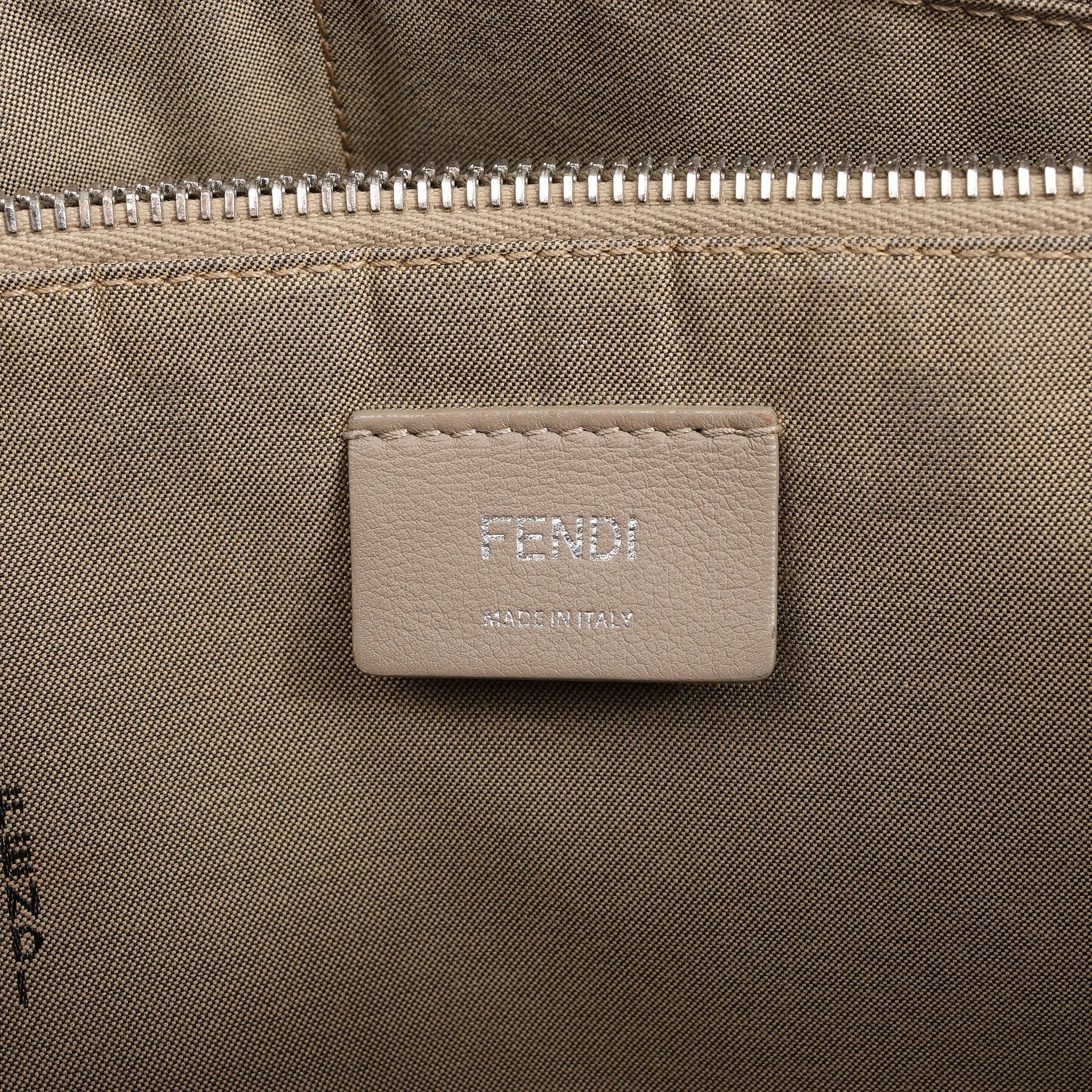 The Fendi By The Way 8BL125 Medium 2Way Handbag in beige grained leather combines luxury with versatility, featuring silver-tone hardware and sleek modern design.