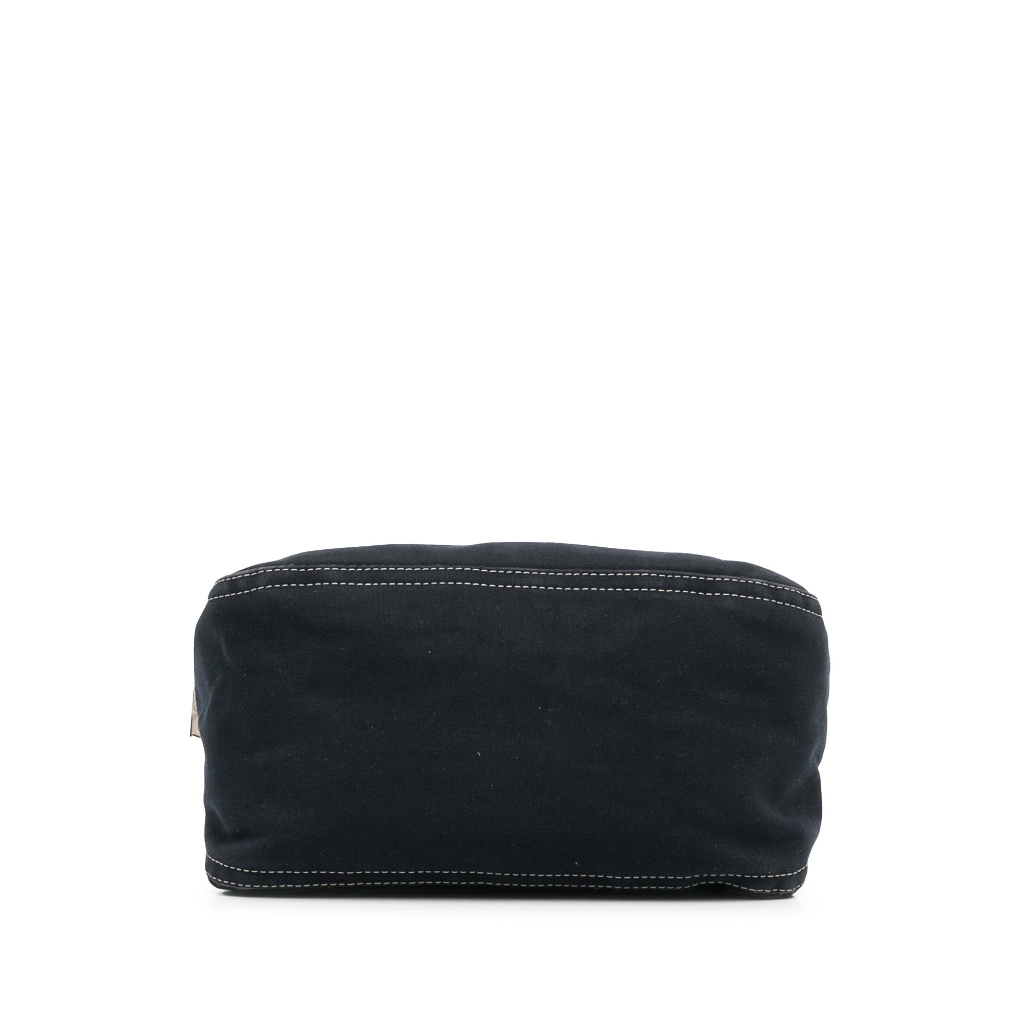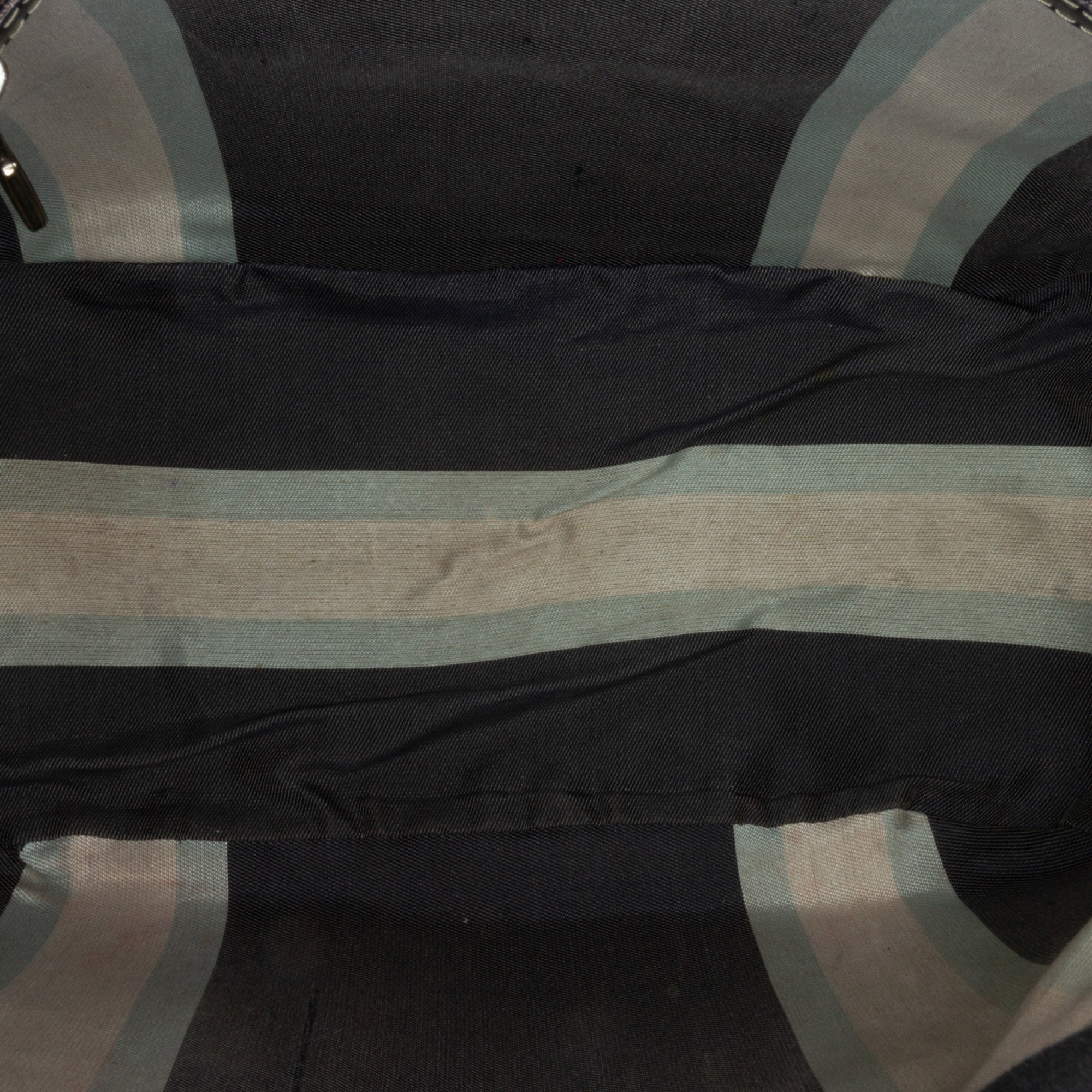 This shoulder features a canvas body, a flat adjustable leather shoulder strap, double flaps with magnetic snap closure, and an interior zip pocket. Retail Price: 1560.00