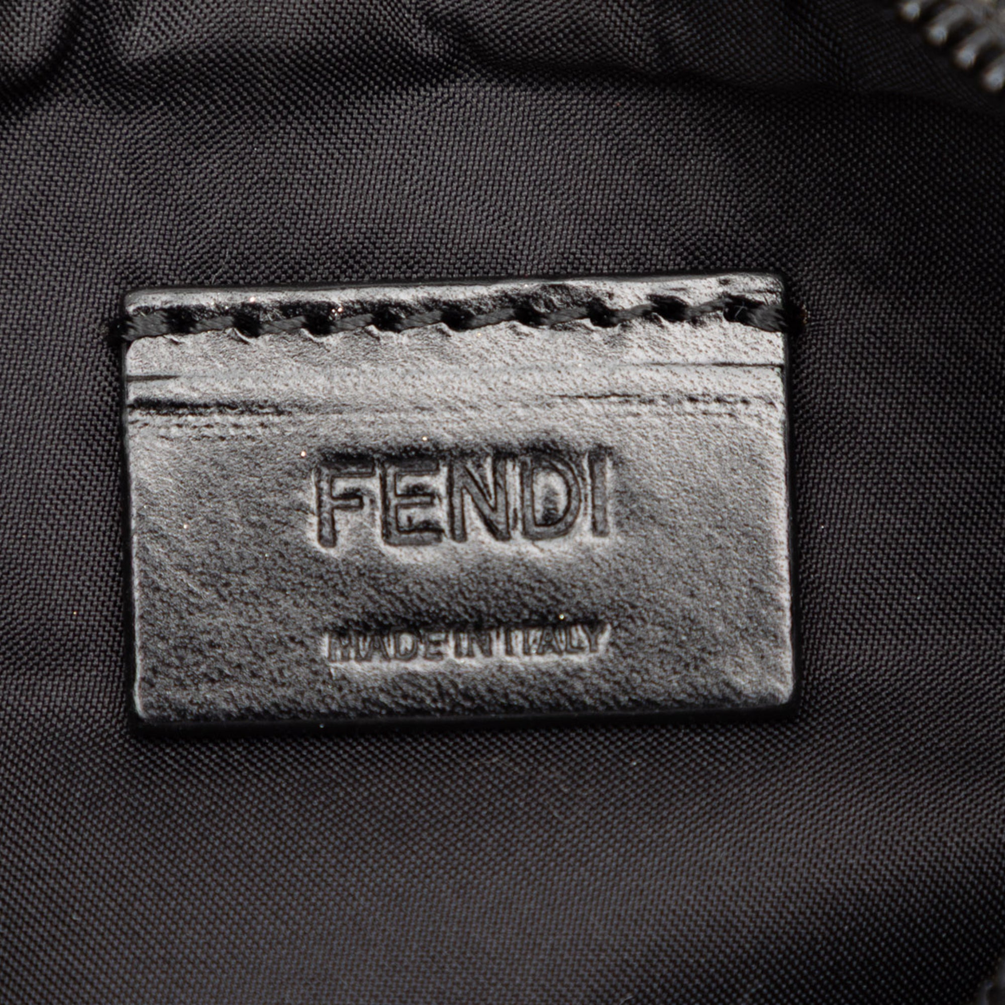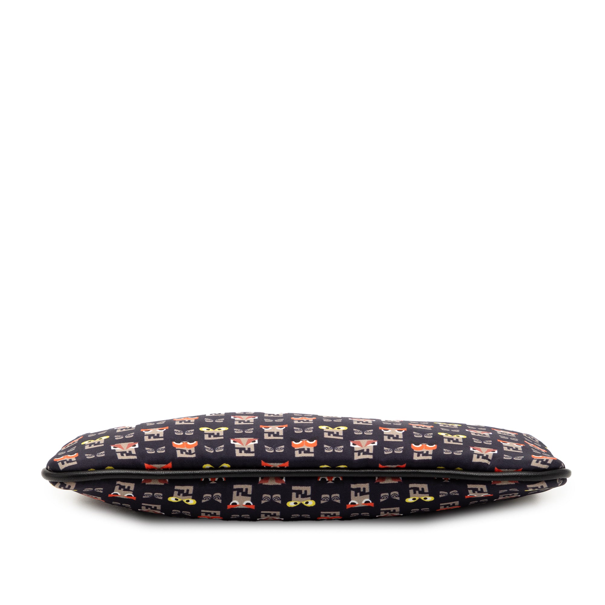 This clutch bag features a printed canvas body, a flat leather wrist strap, and a top zip closure. Retail Price: 1075.00