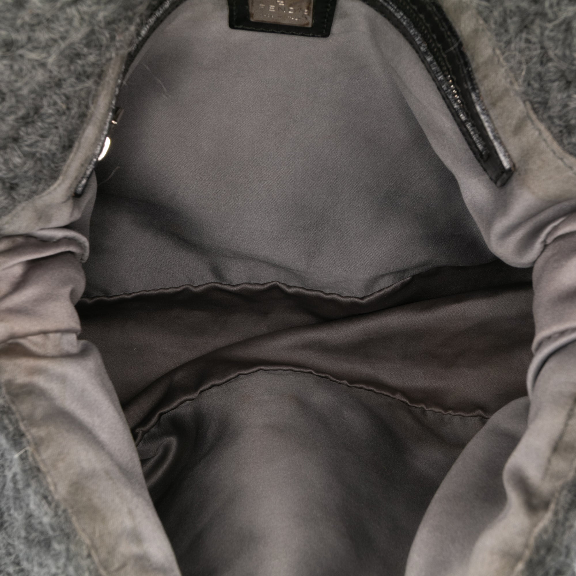 The Mamma Forever features a wool body, a flat leather strap, a flap with magnetic snap closure, and an interior zip pocket. Retail Price: 1190.00