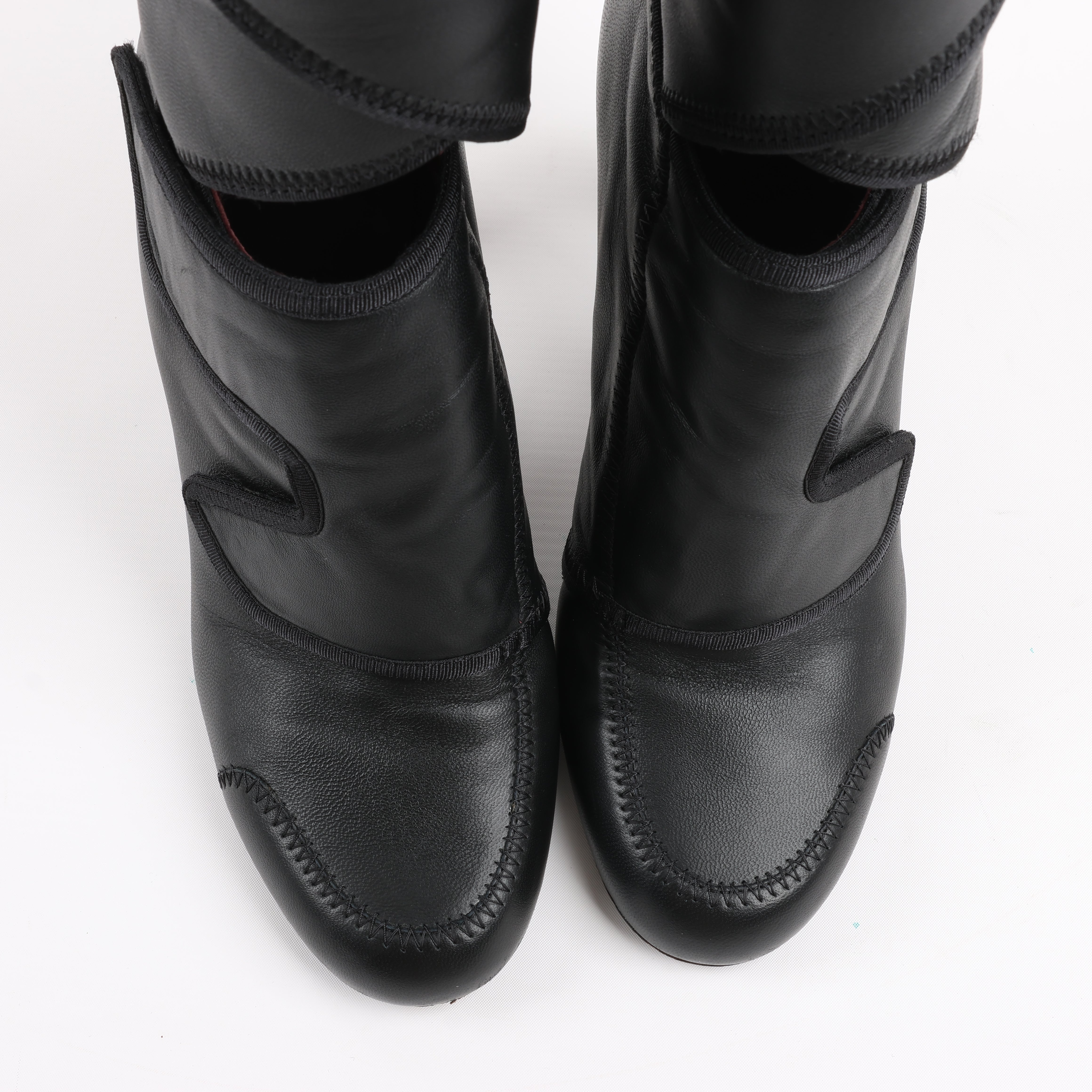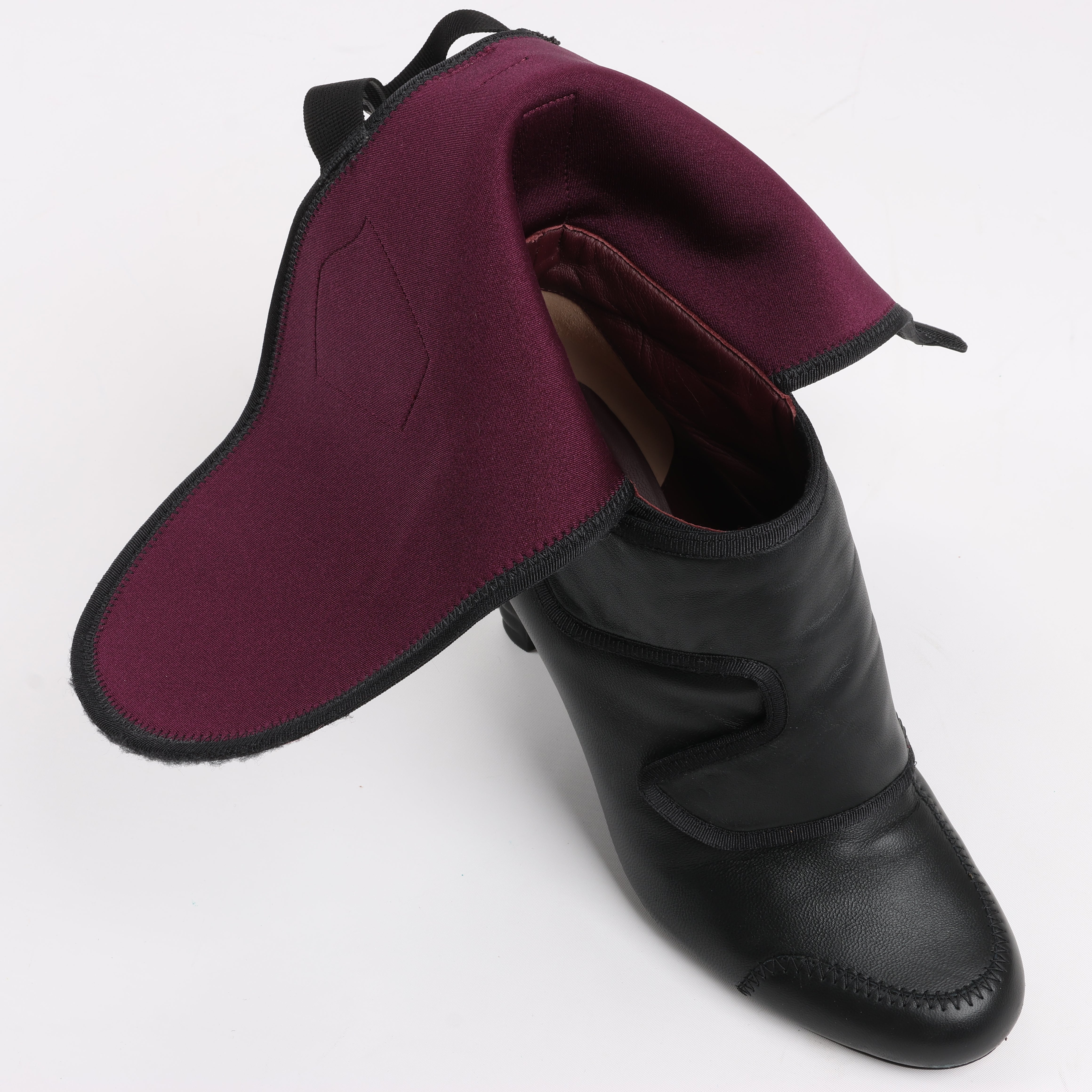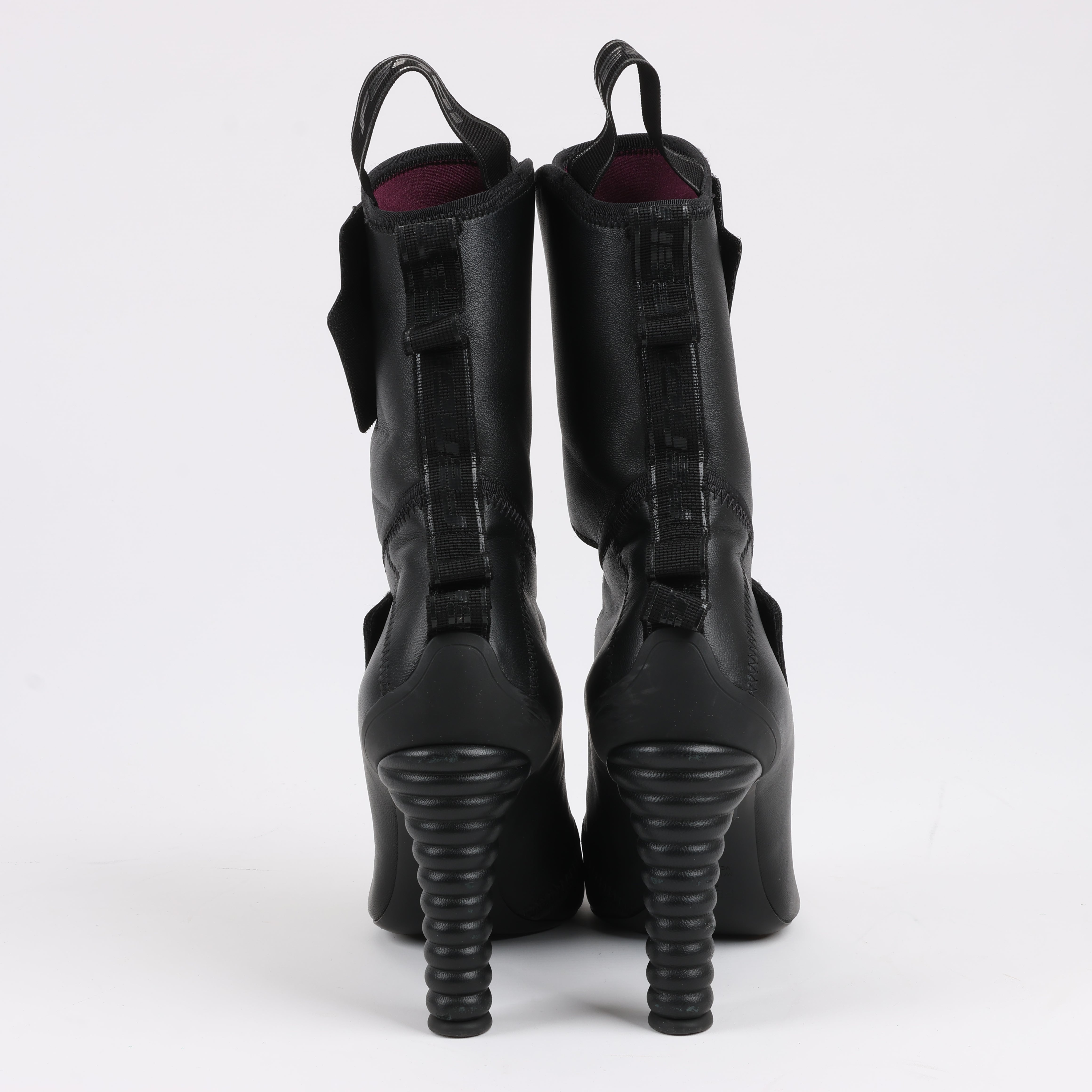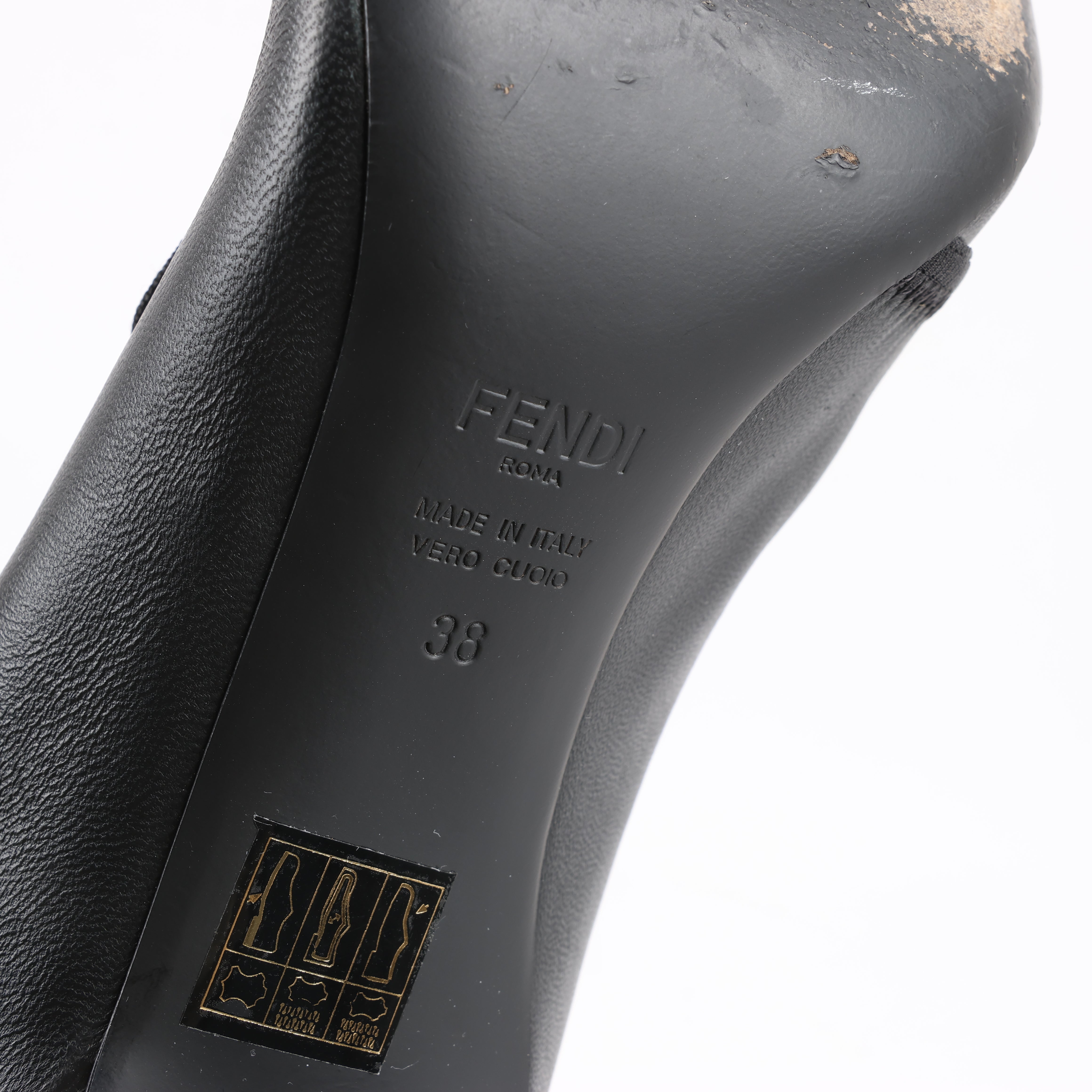 Brand: FendiSize: EU 38 Heel Height: 10 cmShaft approx.: 18 cmCondition: ExcellentCondition Details: Has creases and signs of use on outsole, but overall in great condition.Main Colour: BlackColours: BurgundyMain material: LeatherMaterials: FabricProduct Code: -Manufactured In: ItalyComes With: -