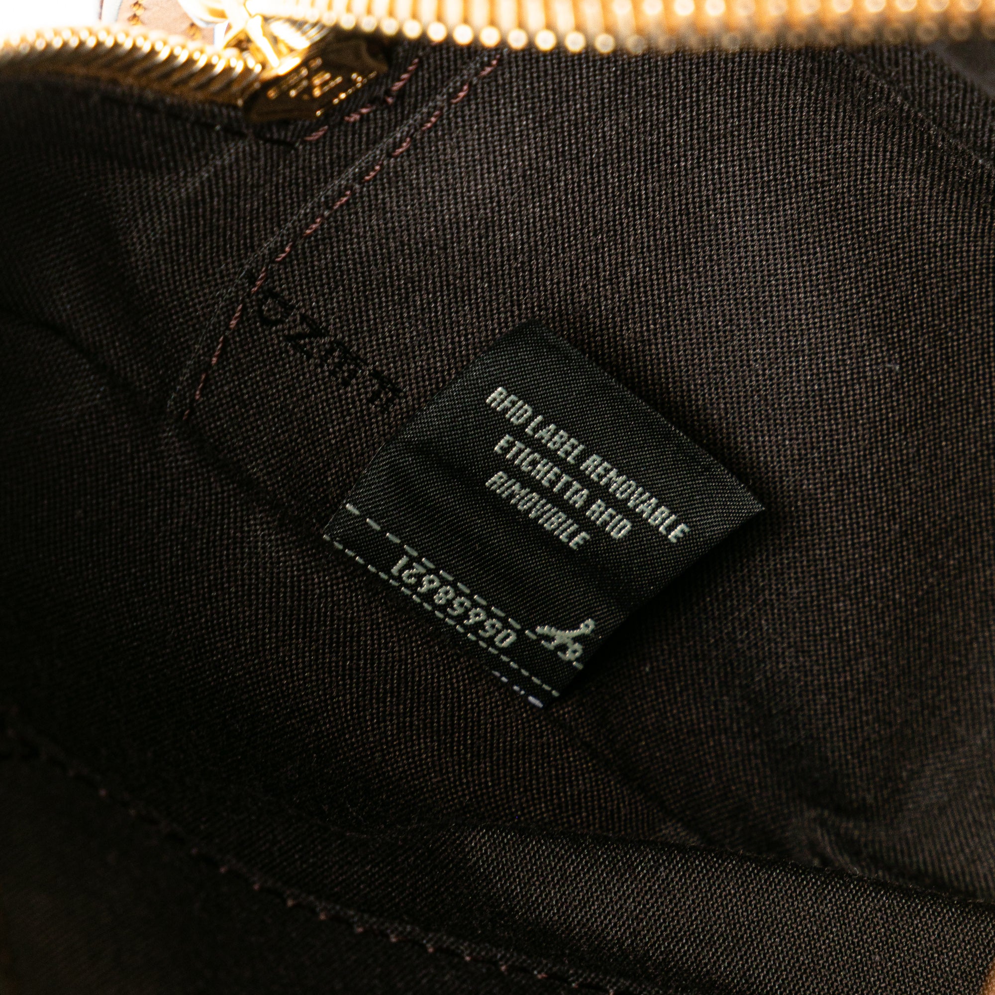 This crossbody bag features a coated canvas body with leather trim, a chain link and leather shoulder strap, a top zip closure, and an interior slip pocket. Retail Price: 3190.00