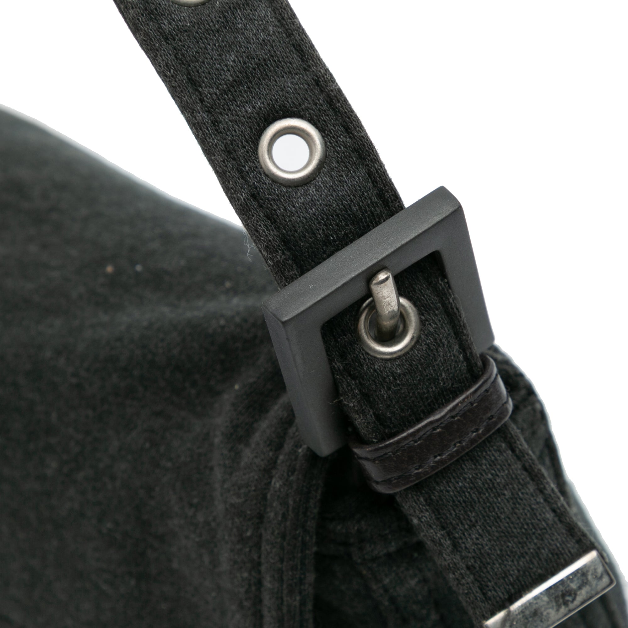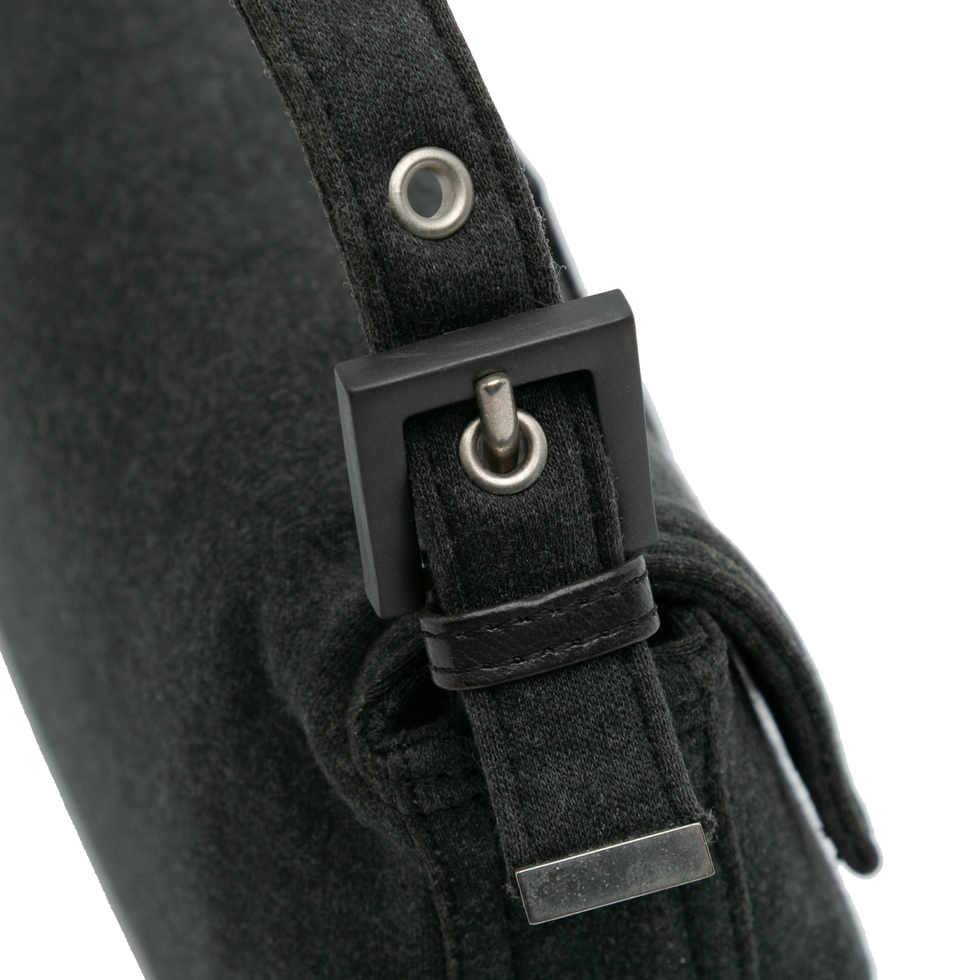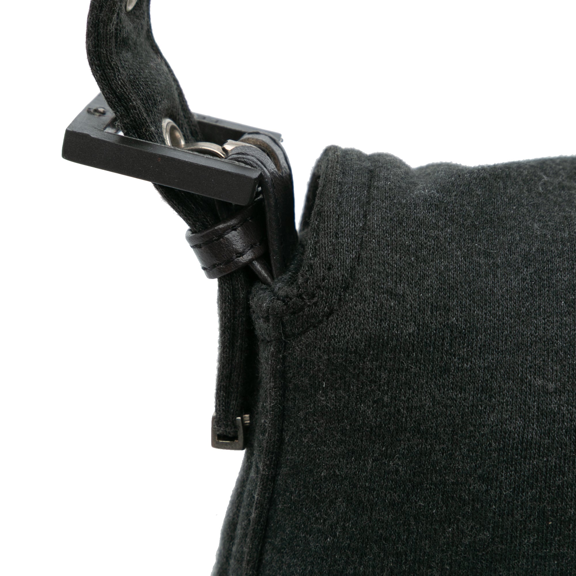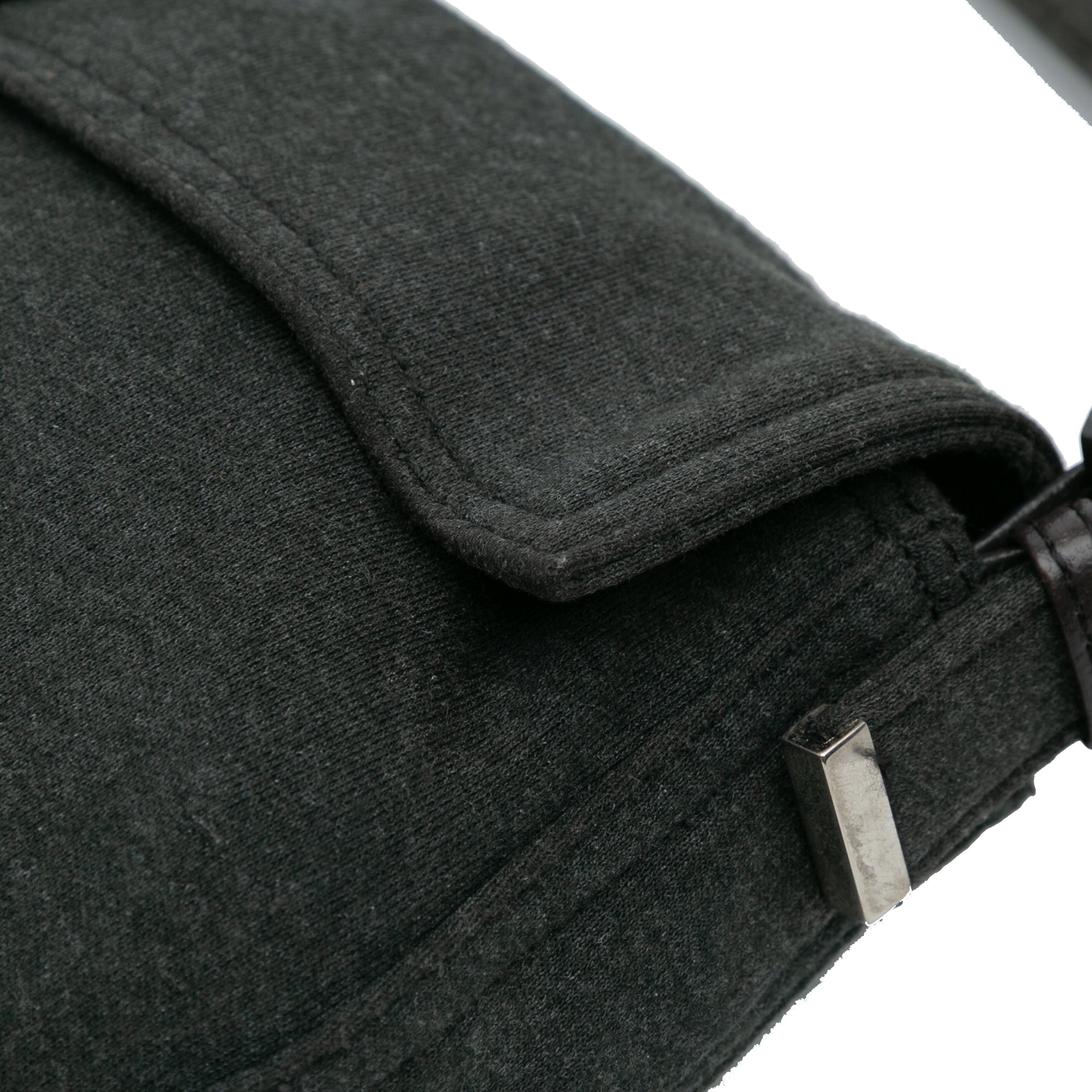 This baguette features a cotton body, an adjustable flat shoulder strap, a front flap with magnetic snap closure, and an interior zip pocket. Retail Price: 1475.00