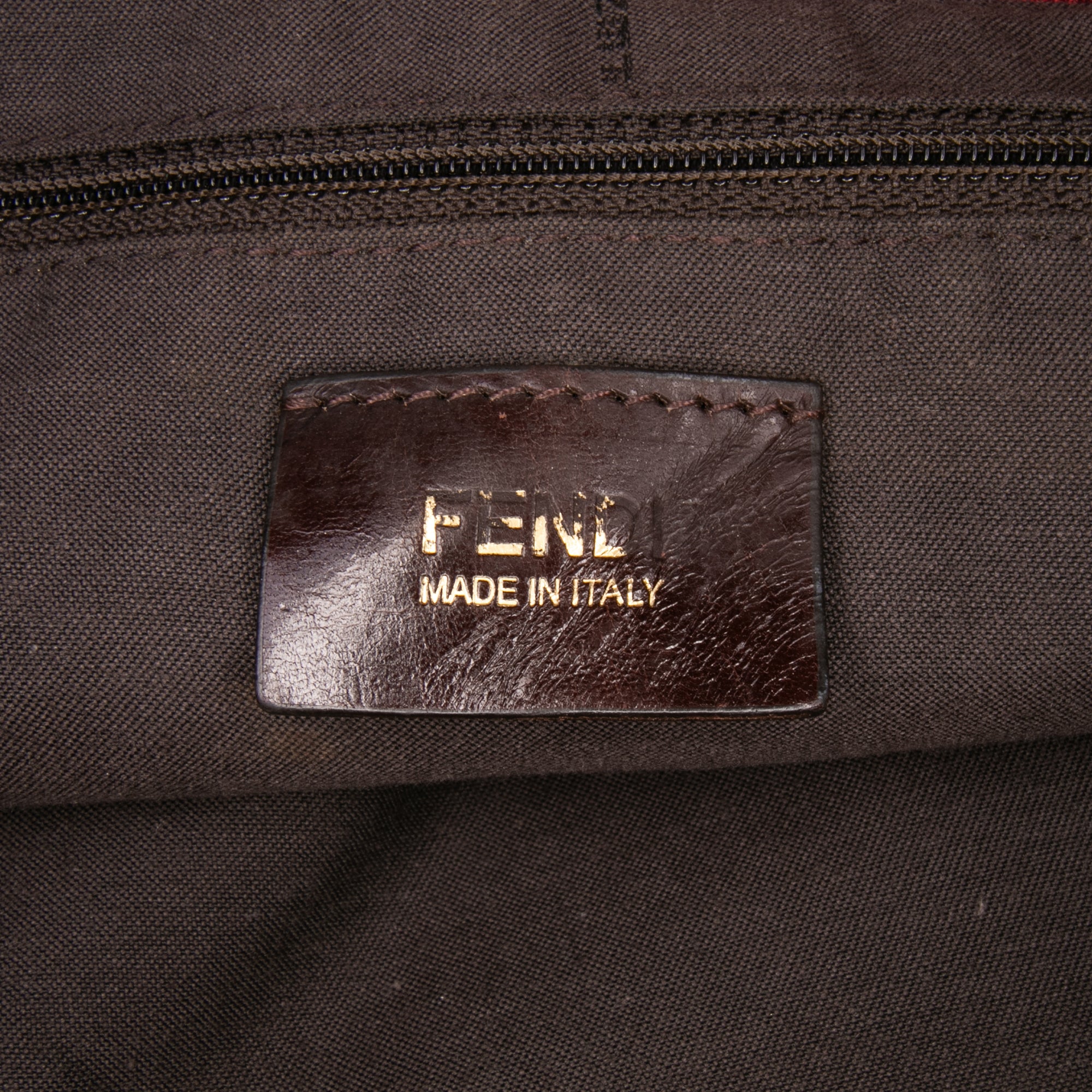 This tote bag features a canvas body with leather trim, flat leather straps, an open top with magnetic snap closure, an exterior front slip pocket, and interior zip and slip pockets. Retail Price: 1710.00