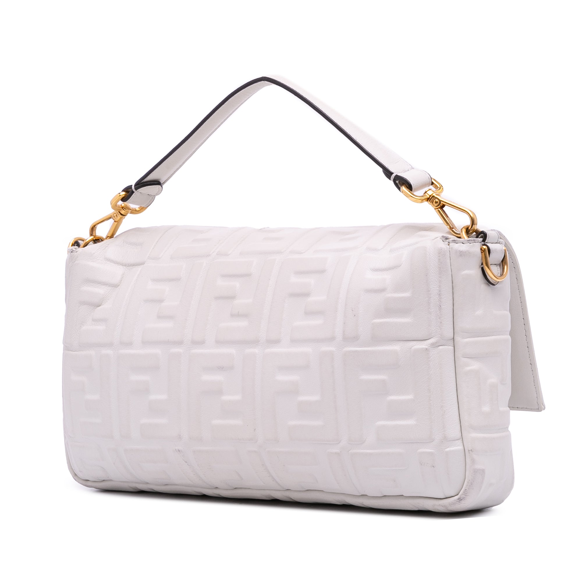 Fendi Large Zucca Embossed Leather Baguette Satchel