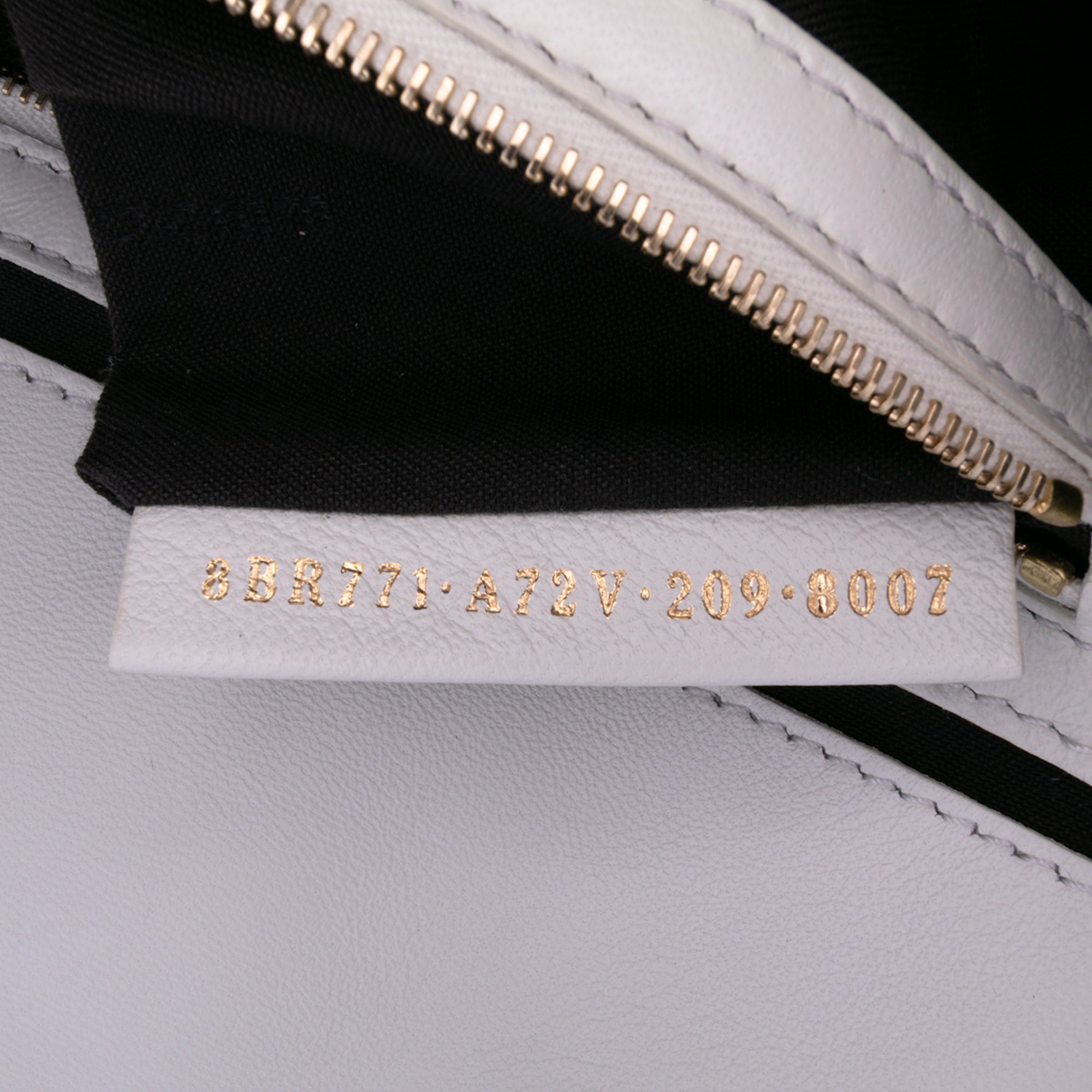 This satchel features an embossed leather body, a detachable top handle, a detachable flat leather strap, a front flap with magnetic snap closure, and an interior zip pocket. Retail Price: 2690.00