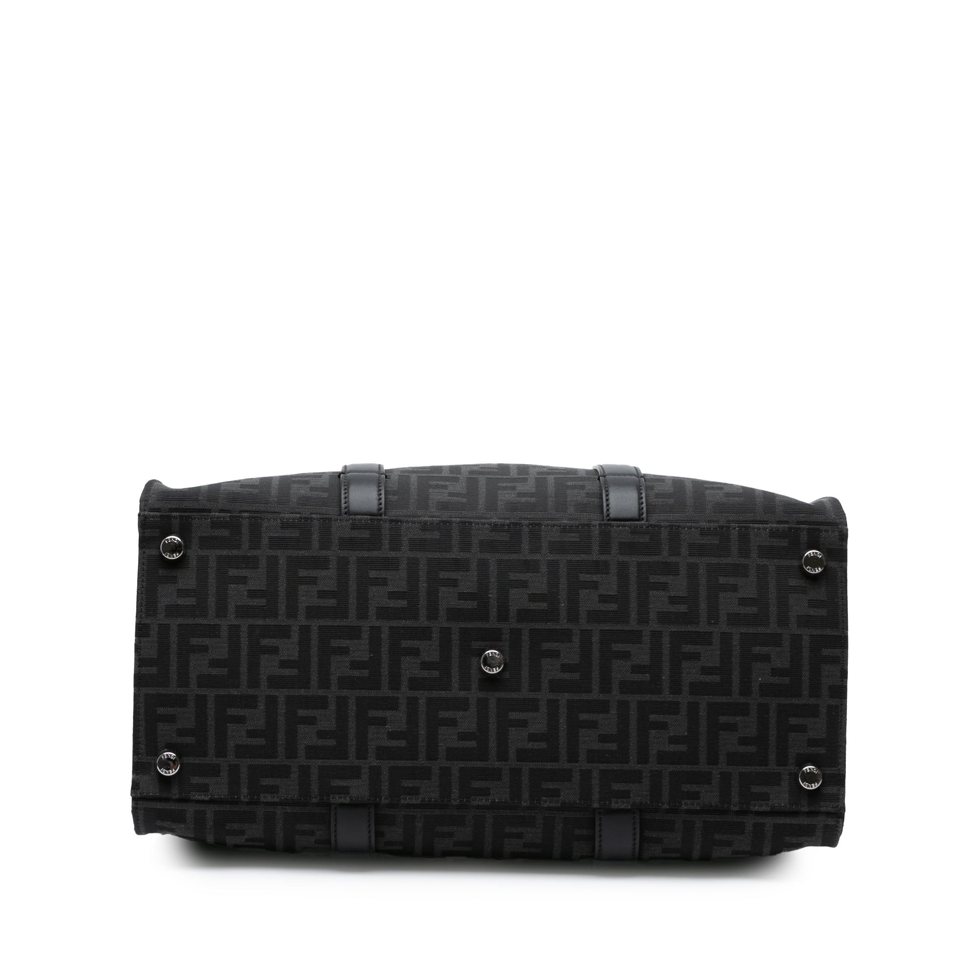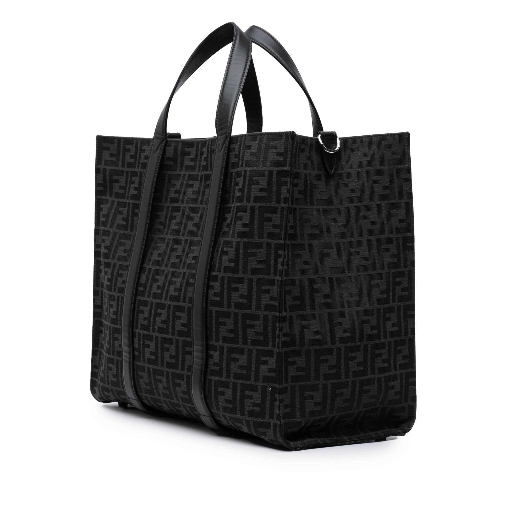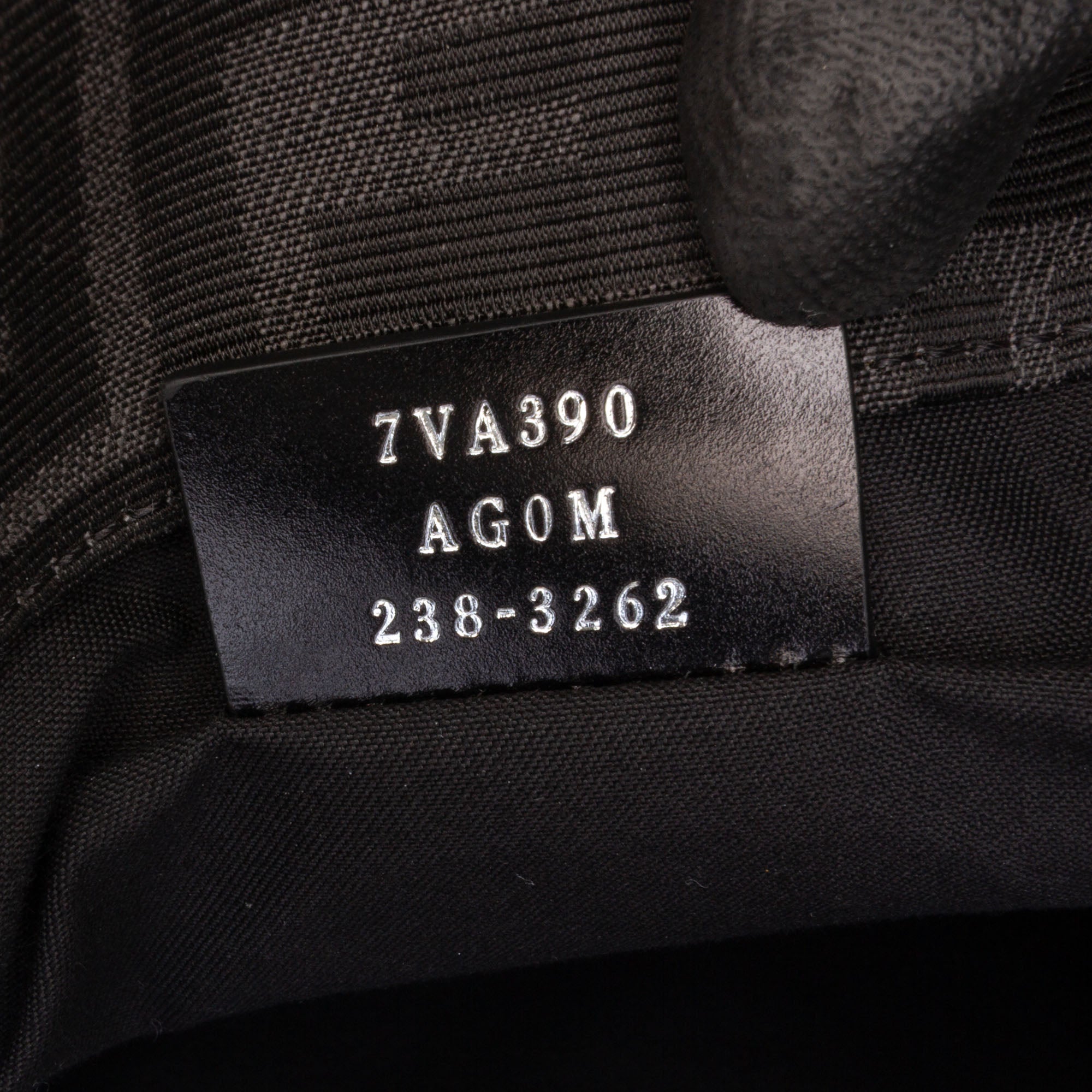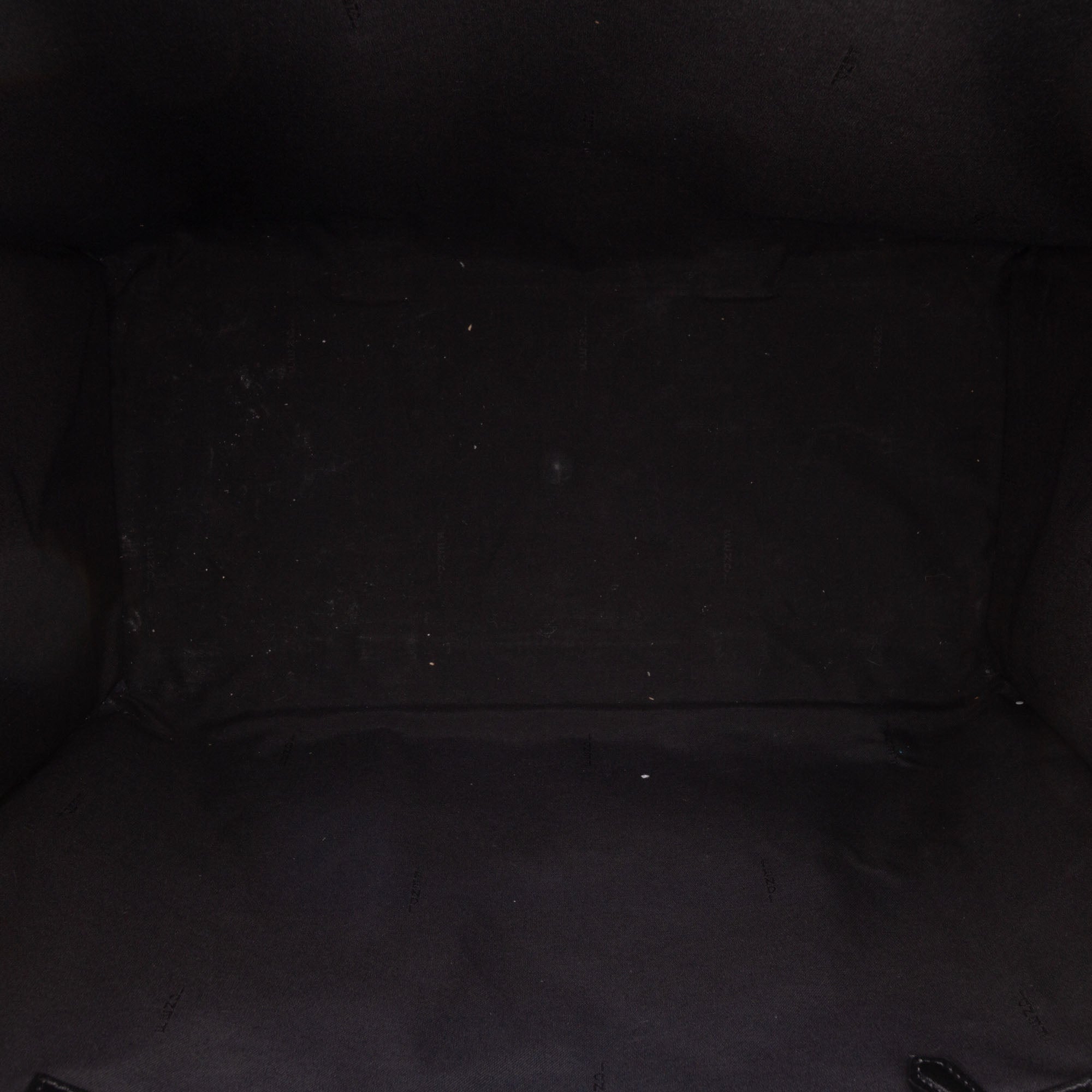 This satchel features a jacquard body with leather trim, flat leather handles, an adjustable and detachable flat leather strap, an open top, and an interior zip pocket. Retail Price: 2100.00