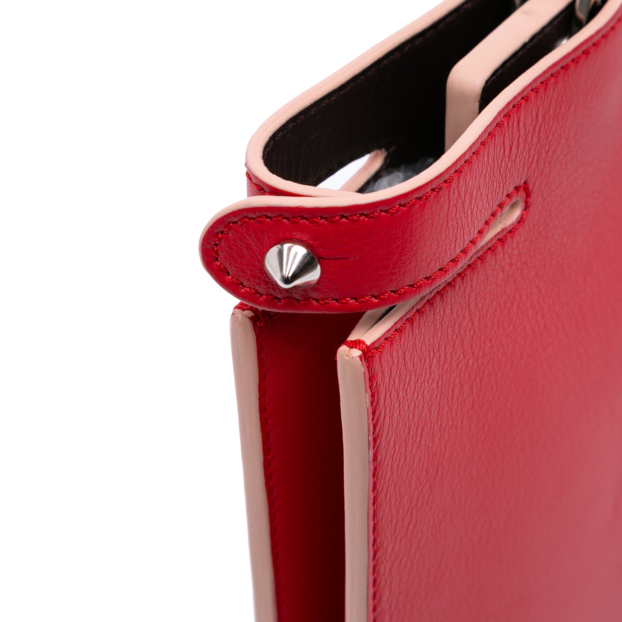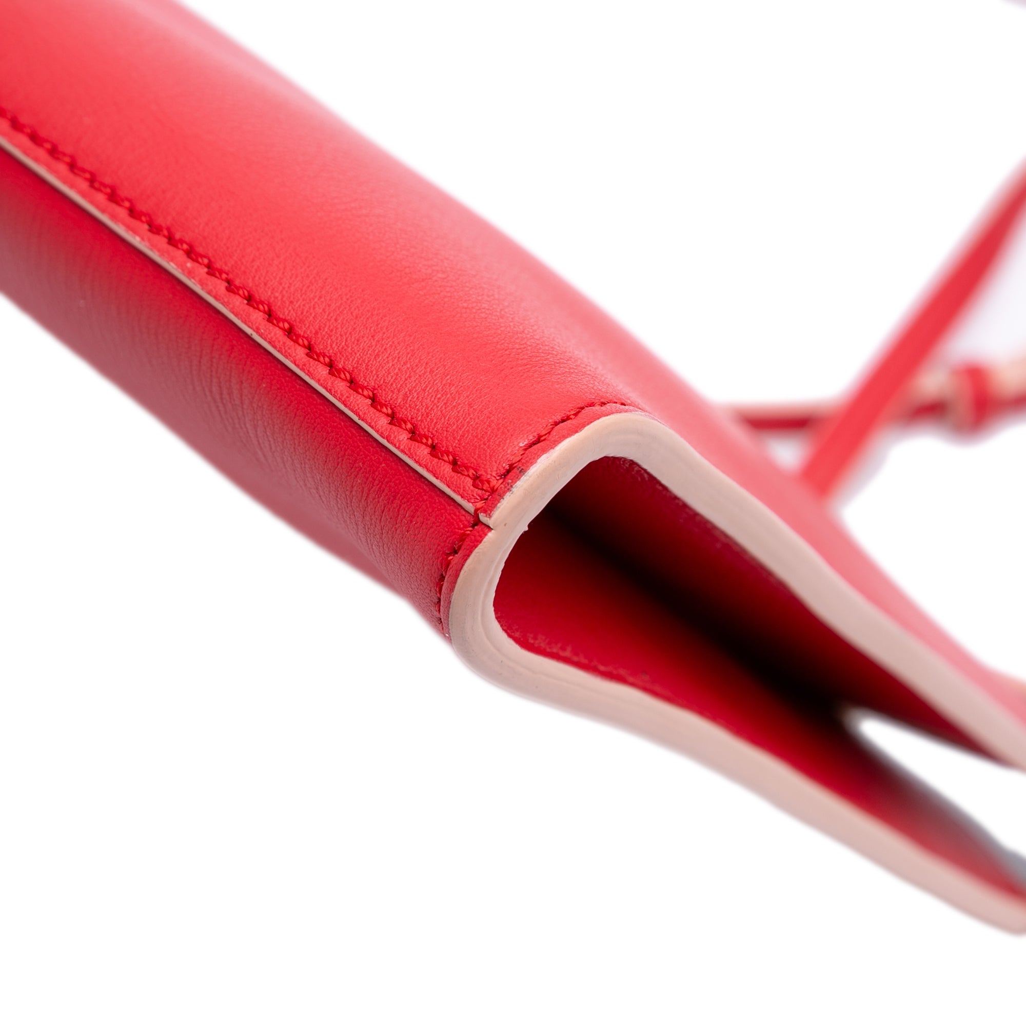 This crossbody bag features a leather body, a flat shoulder strap, an open top with twist lock closure, and an interior zip pocket. Retail Price: 1500.00