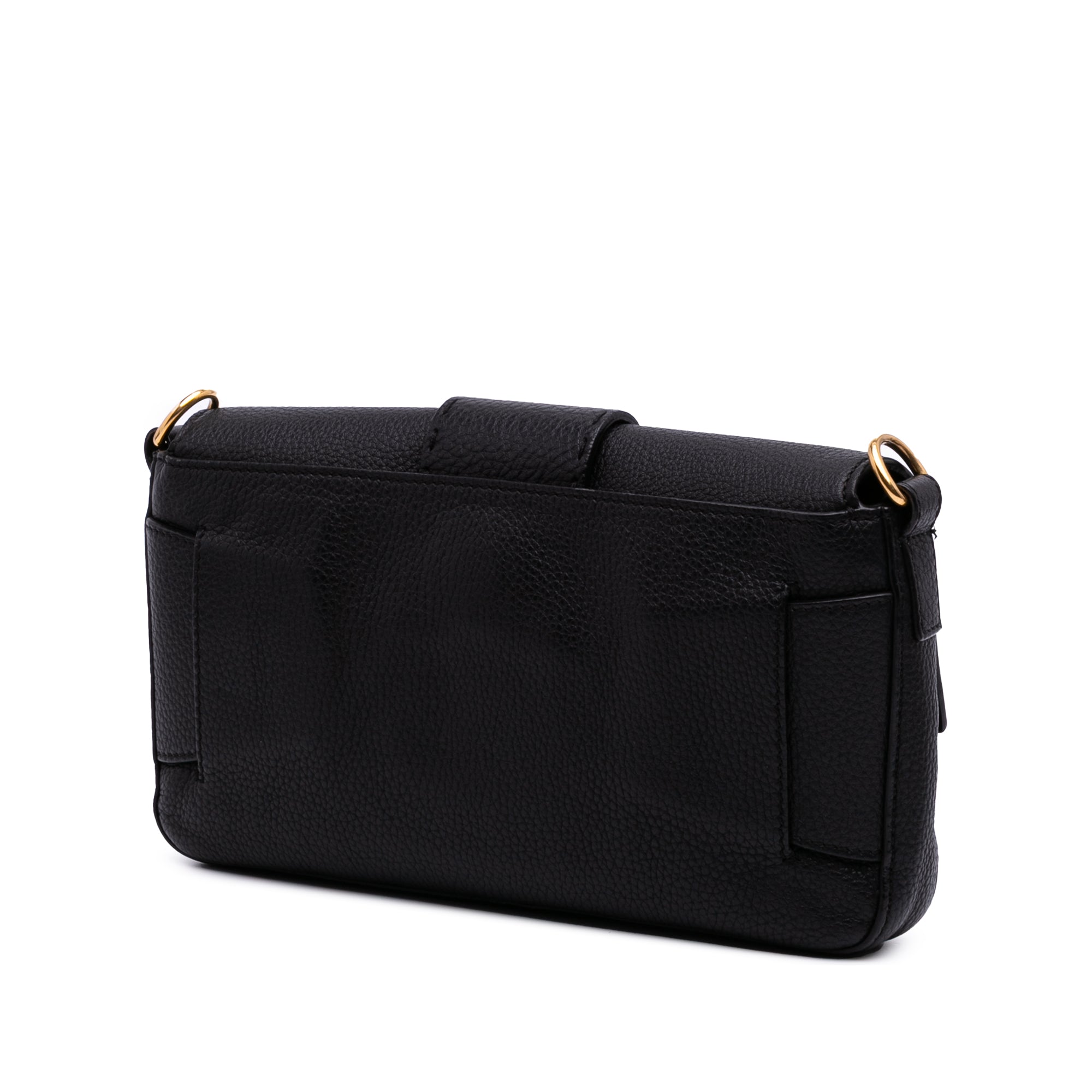 The Baguette features a leather body, a detachable flat leather handle, a detachable flat leather shoulder strap, a flap with magnetic snap closure, and an interior zip pocket. Retail Price: 3293.00