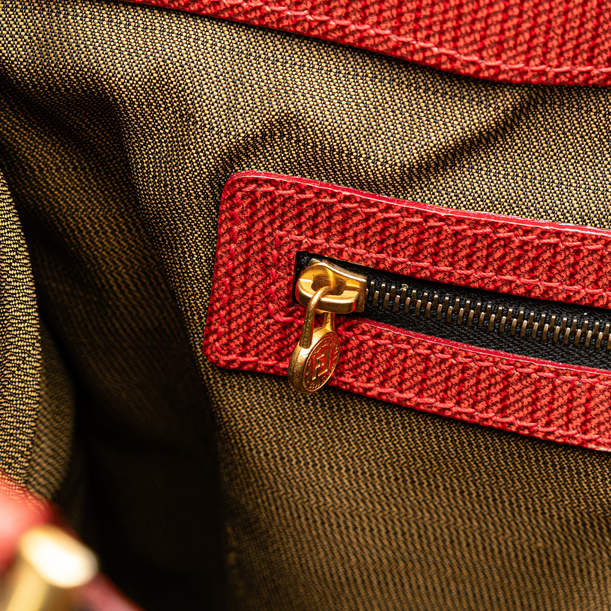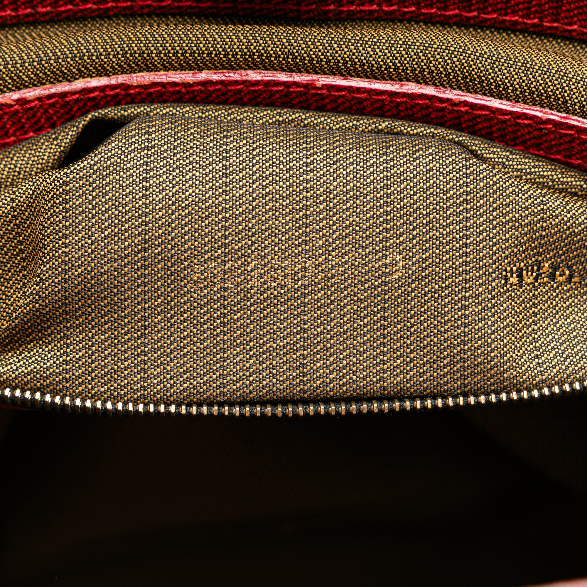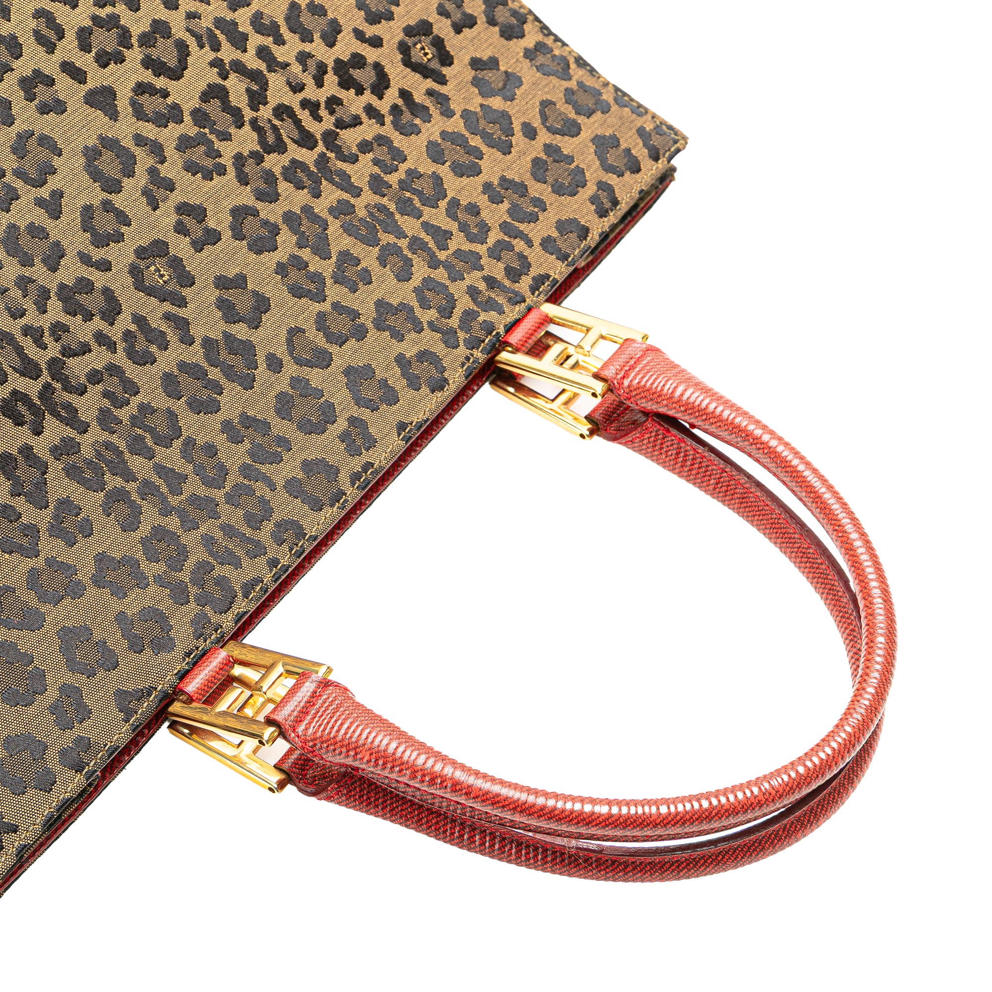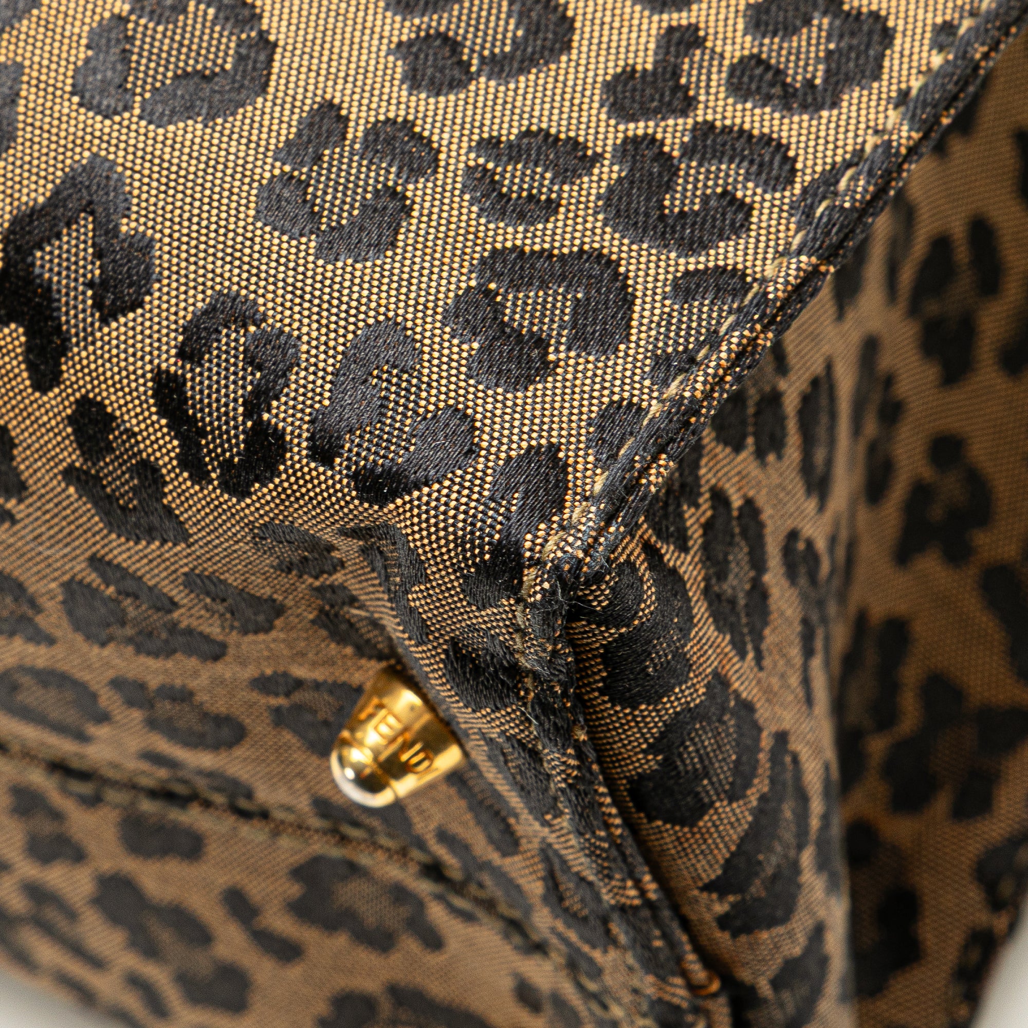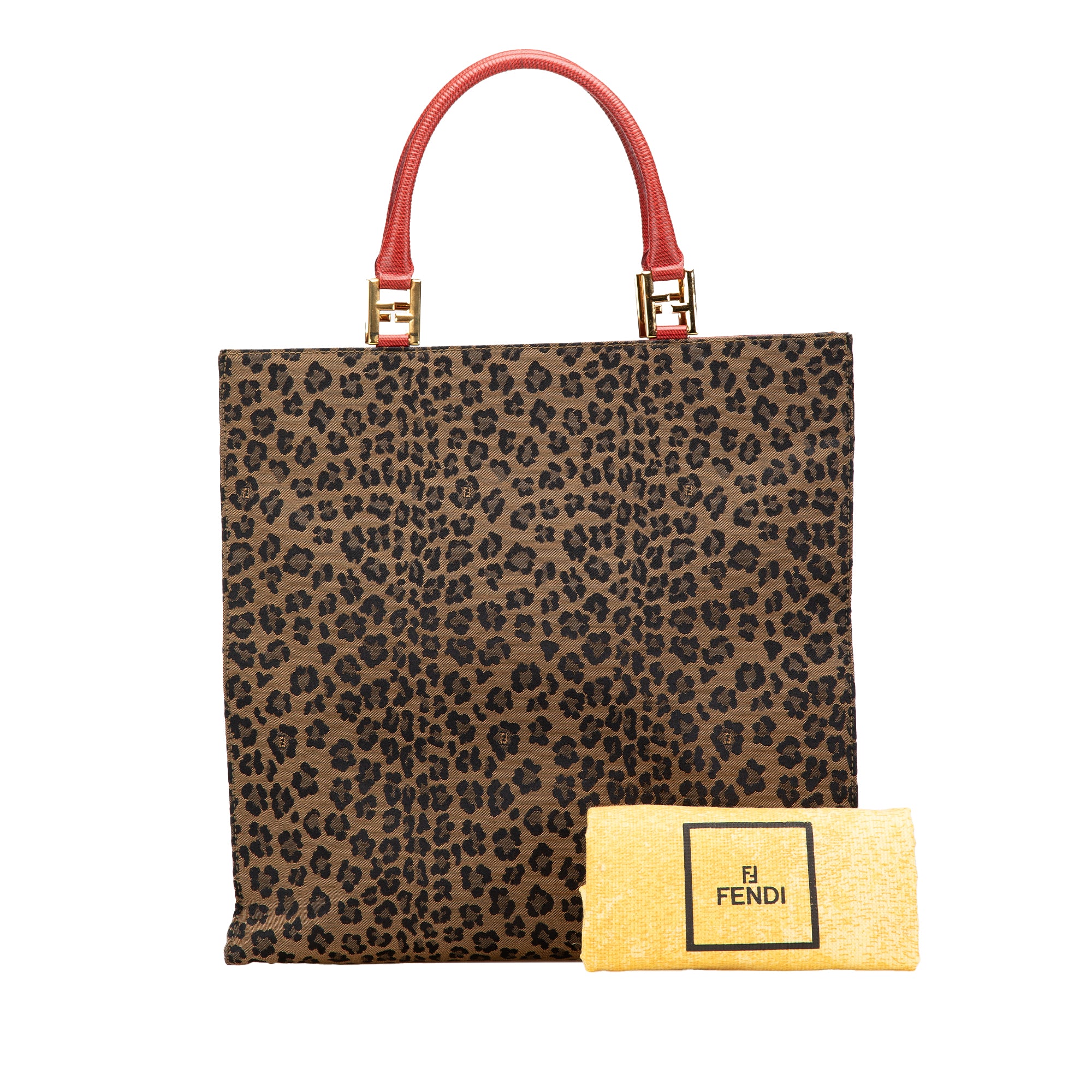 This tote bag features a printed canvas body, rolled leather top handles, an open top with magnetic snap closure, and an interior zip pocket. Inclusion: Dust bag. Retail Price: 1250.00