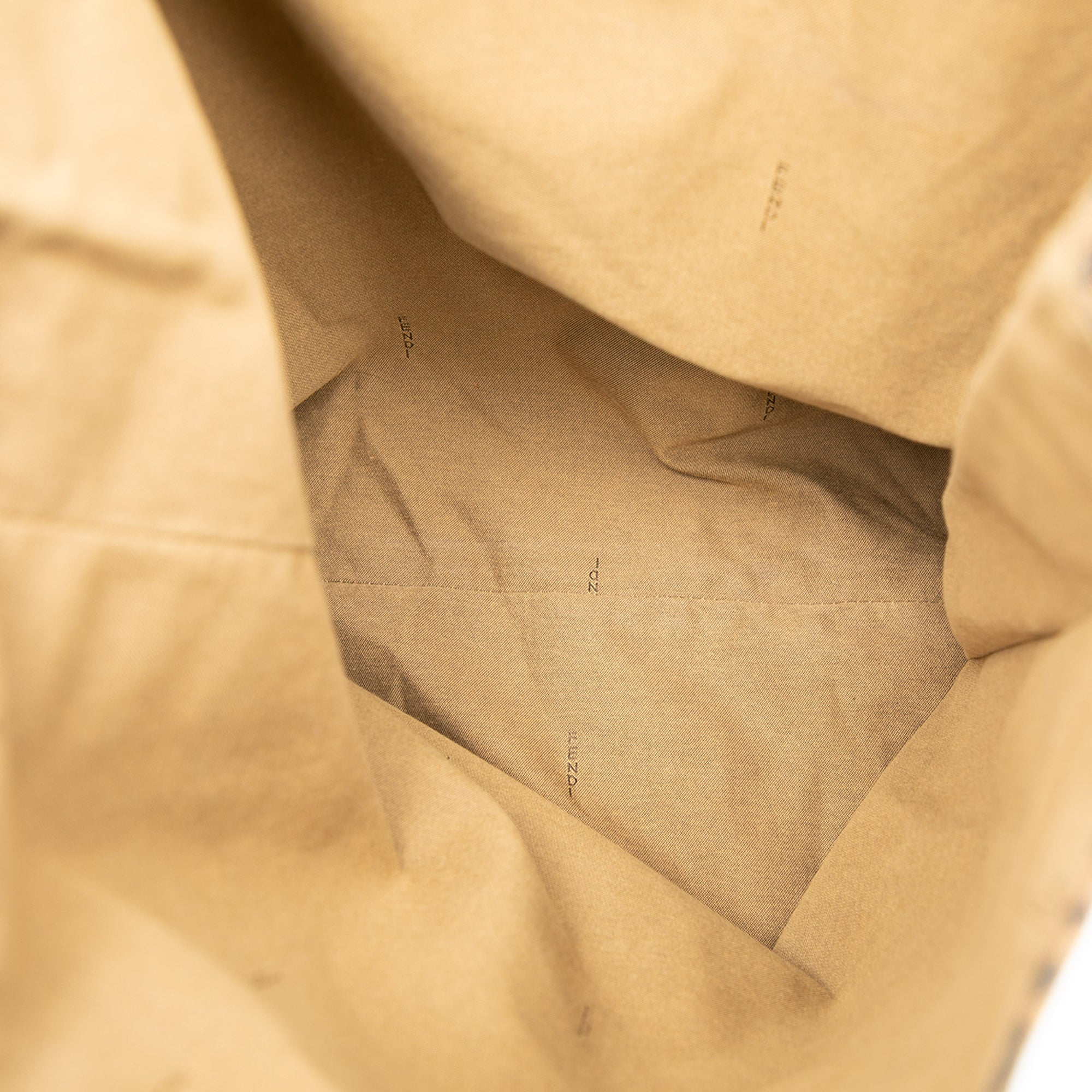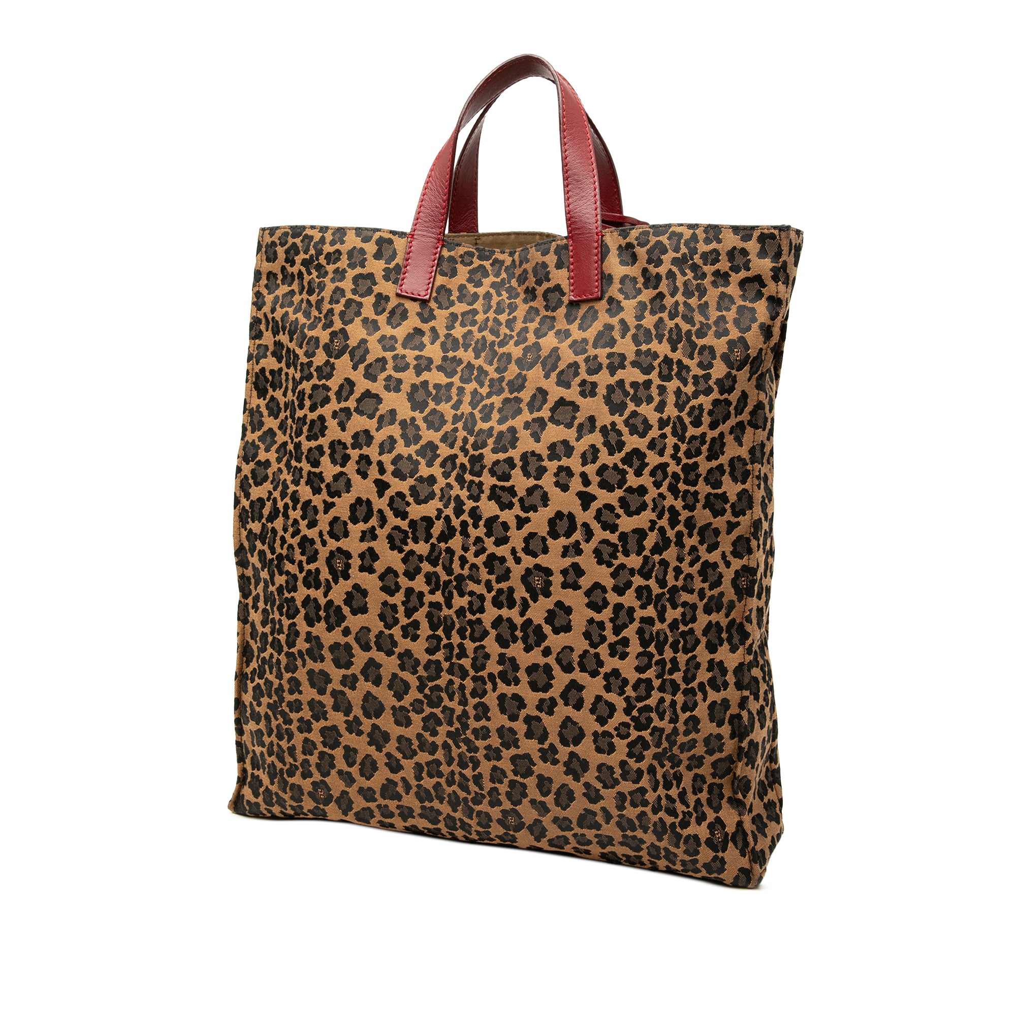 This tote bag features a canvas body, flat leather handles, and an open top. Retail Price: 495.00