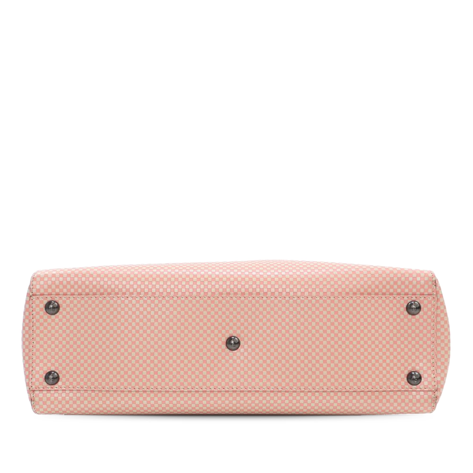 The Peekaboo features a checkered leather body, a flat leather handle, a detachable flat leather strap, an open top with twist lock closure, and an interior zip closure. Inclusion: Dust bag. Retail Price: 4200.00