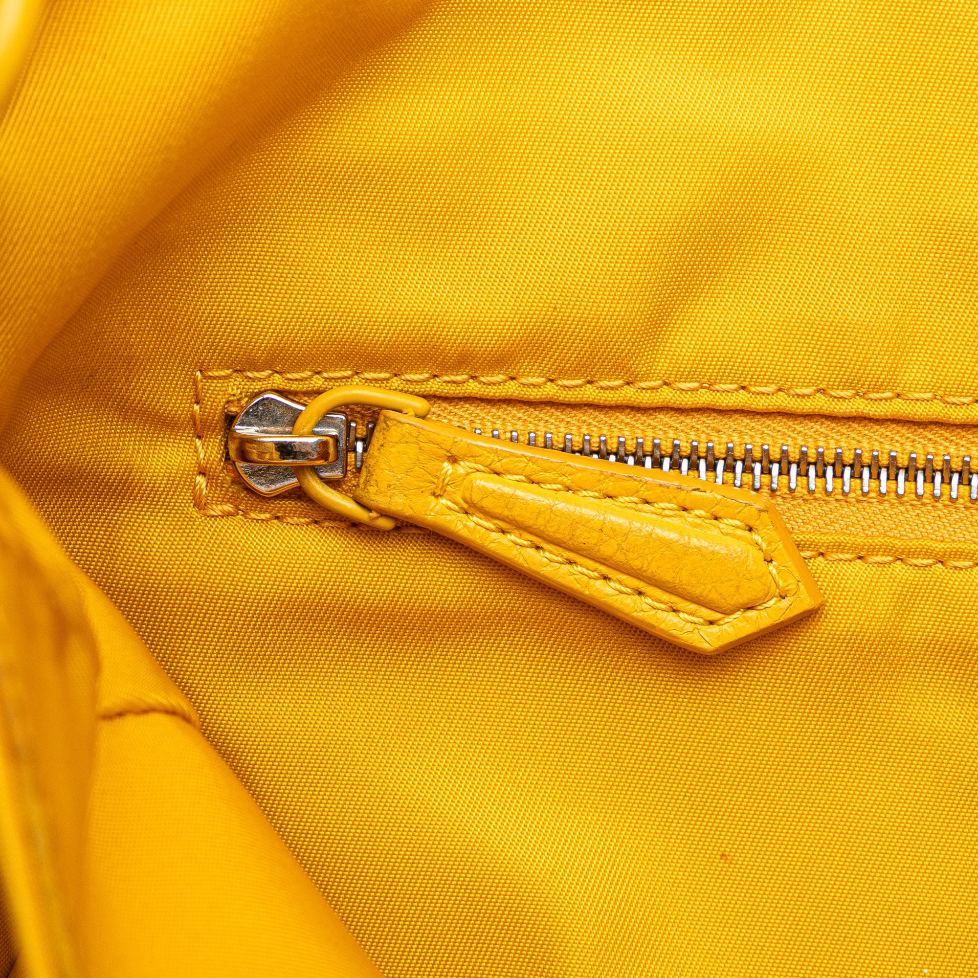 This crossbody bag features a nylon body, an adjustable and detachable flat shoulder strap, a front flap with magnetic snap closure, and interior zip and slip pockets. Retail Price: 1995.00