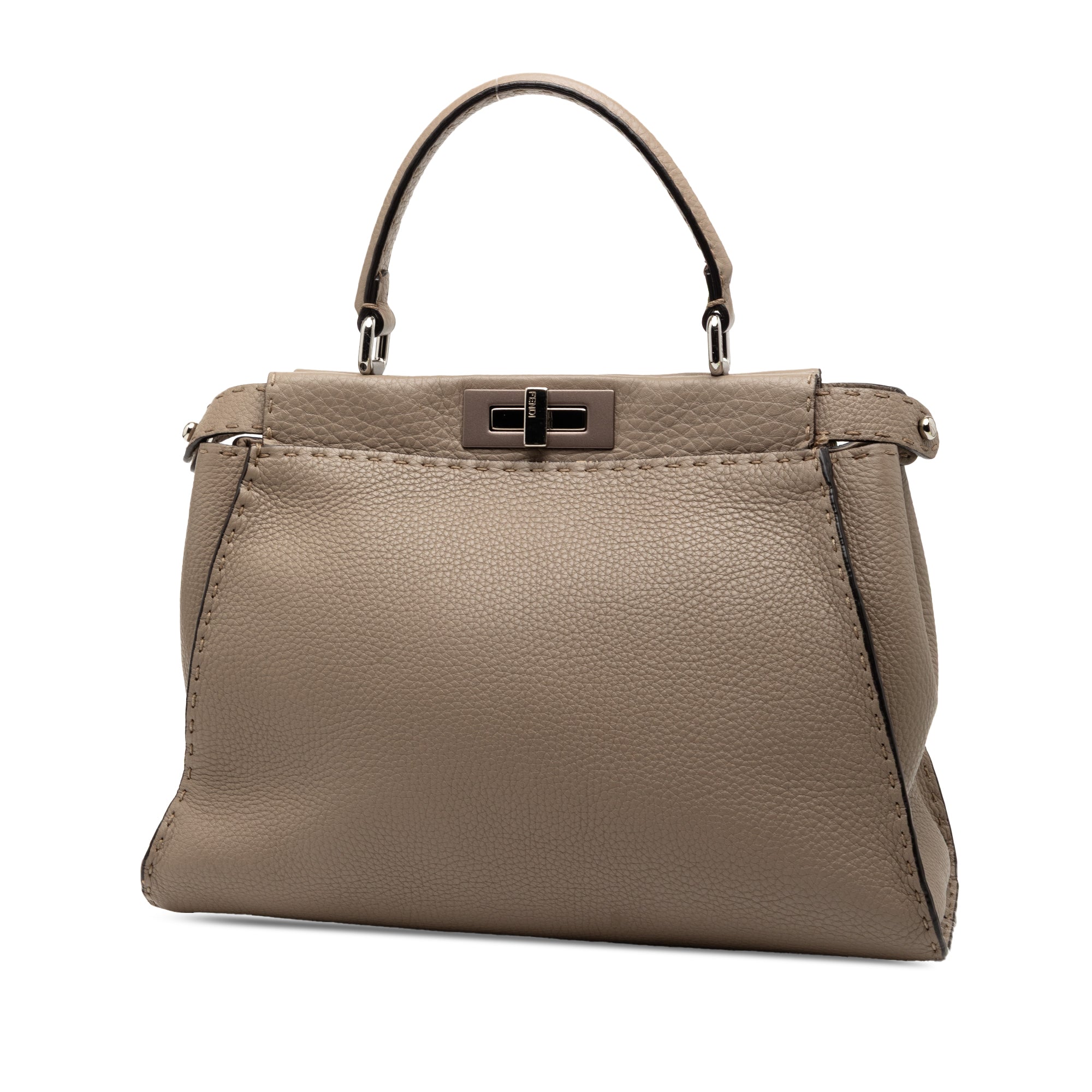 The Selleria Peekaboo features a leather body, a flat leather top handle, a detachable leather strap, a twist lock closure, and an interior zip pocket. Inclusion: Dust bag. Retail Price: 4200.00