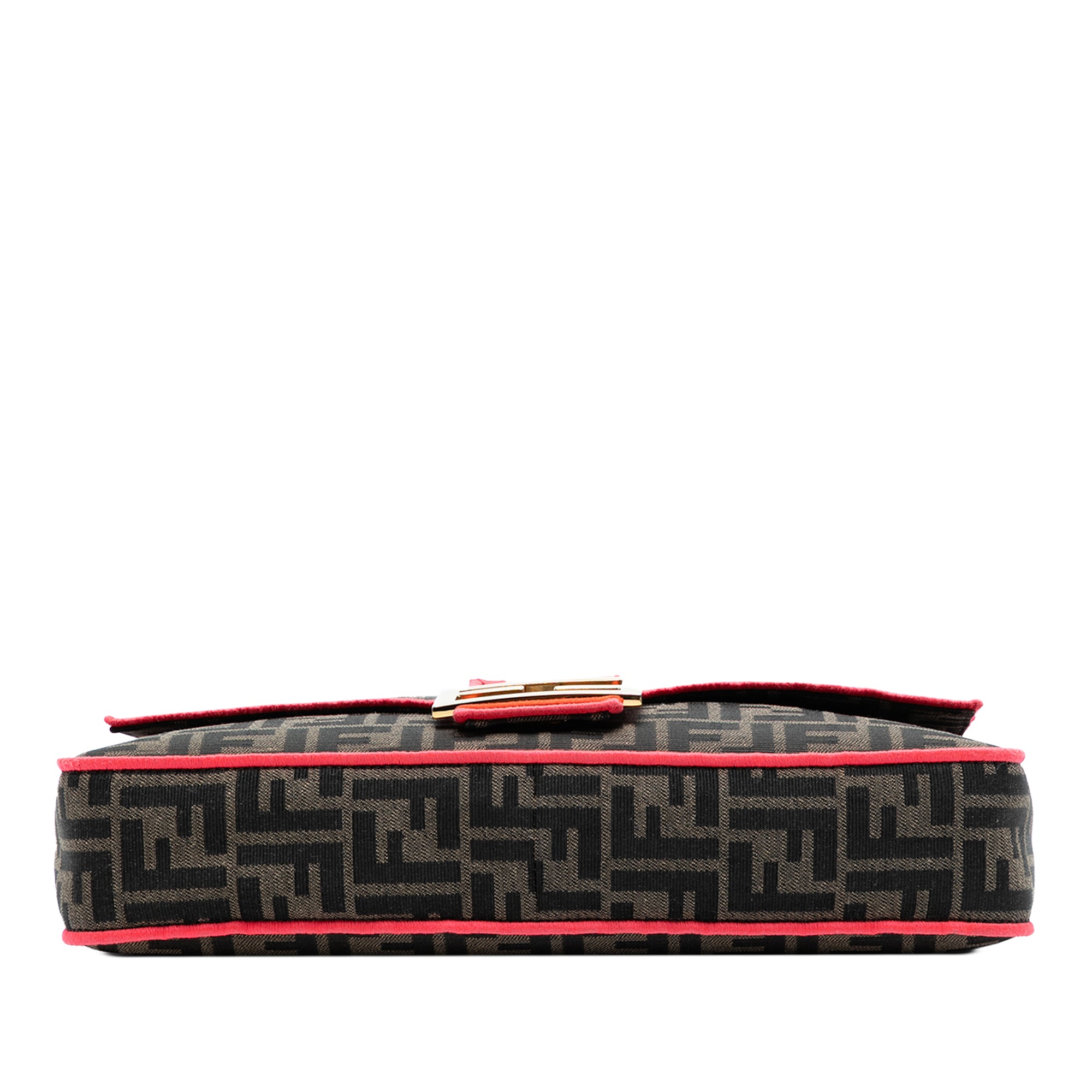 Fendi Medium Zucca Canvas Fluo Trim Baguette Satchel