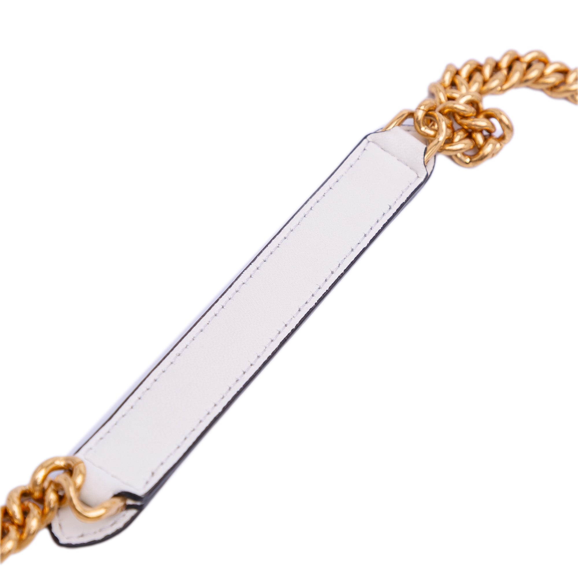 The Baguette features a leather body, chain link straps with leather shoulder guards, a flap with magnetic snap closure, and interior card slots. Inclusion: Dust bag. Retail Price: 2900.00