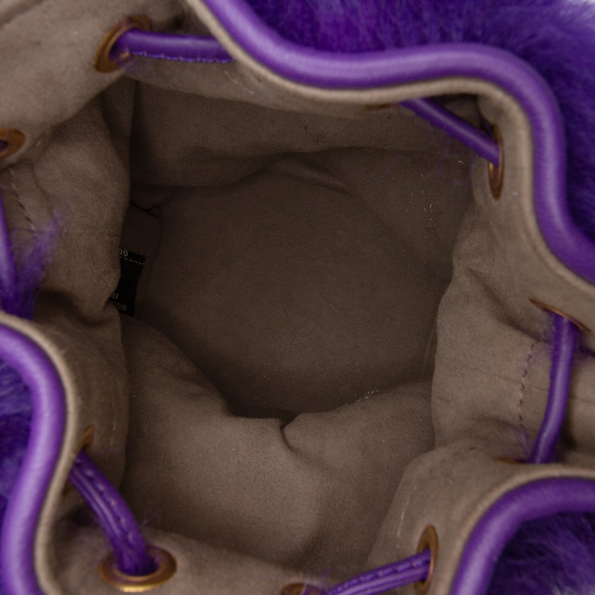 The Mon Tresor features a fur body with leather trim, a flat leather top handle, a detachable flat leather strap, and an open top with a drawstring closure. Retail Price: 1960.00