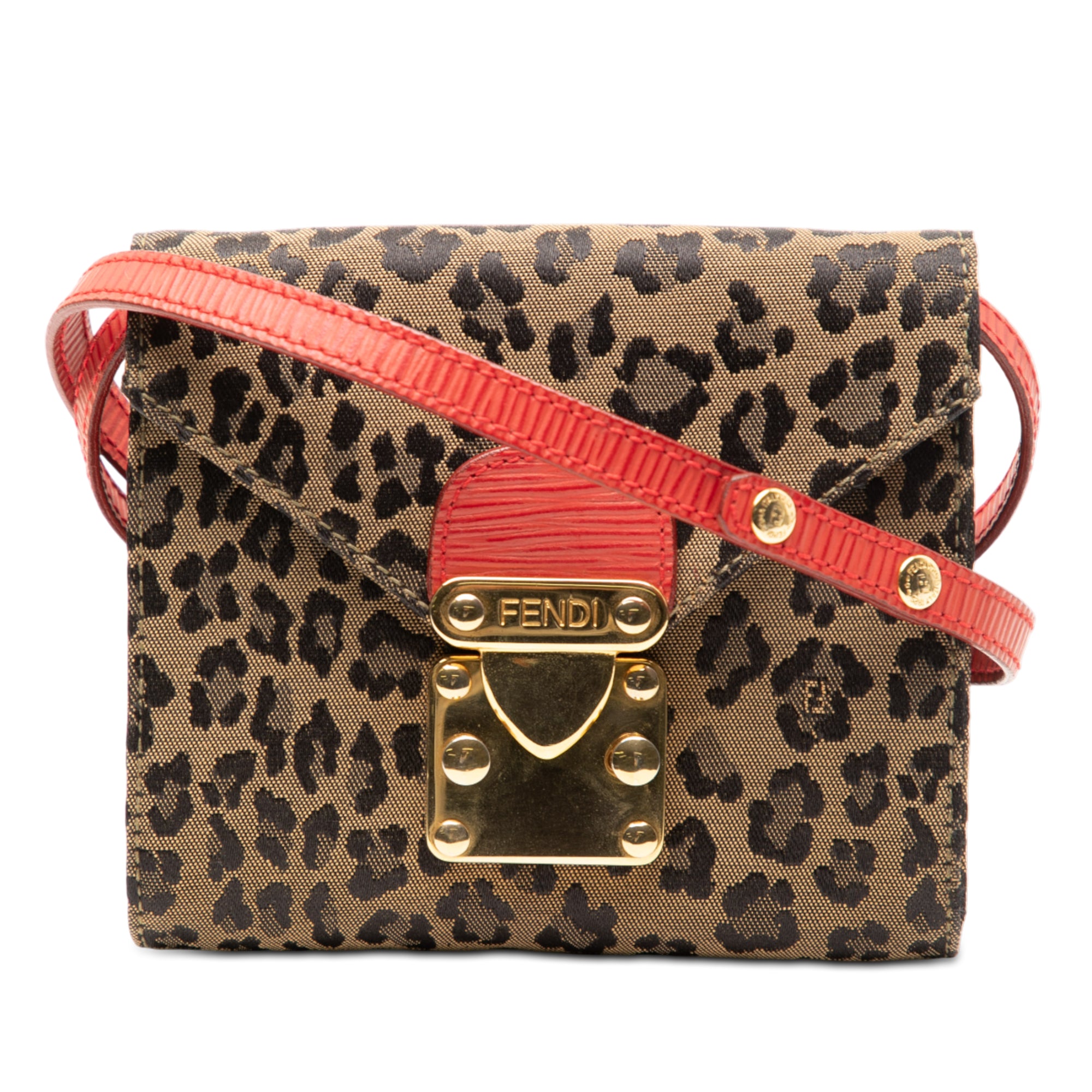 Fendi Mini Leopard Print Canvas Flap Crossbody Secondhand