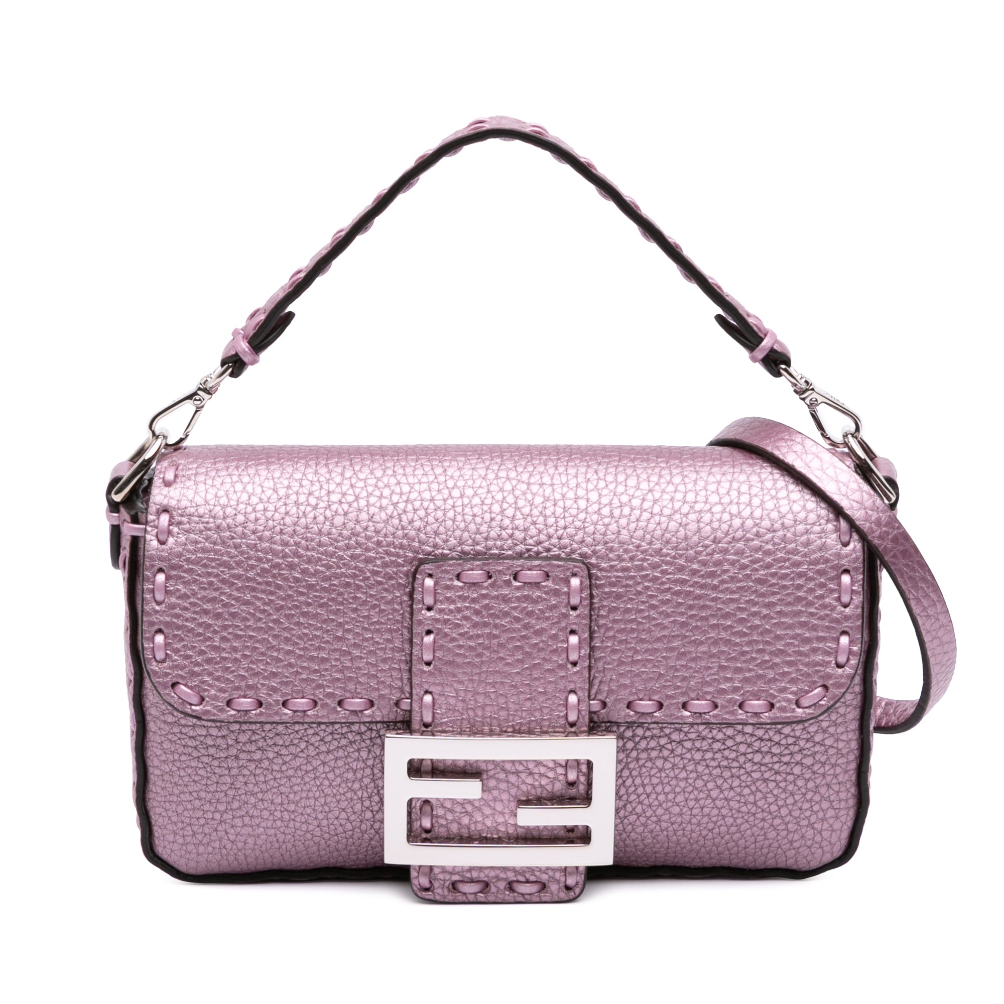 Fendi Mini Metallic Leather Baguette Satchel