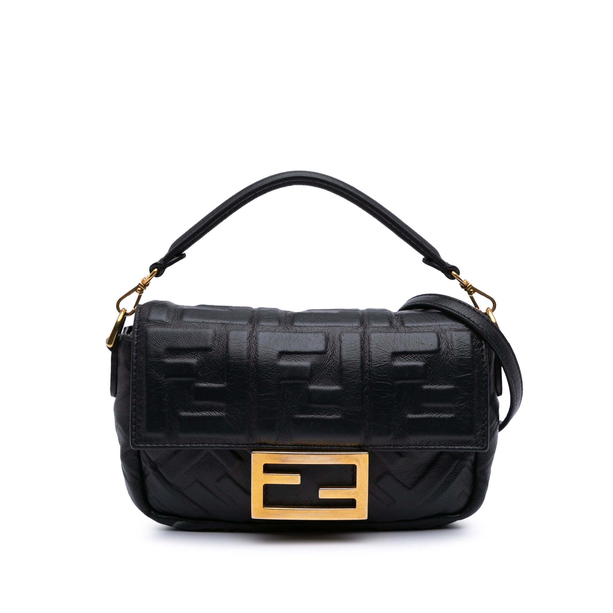 Fendi Mini Zucca Embossed Leather Baguette Satchel