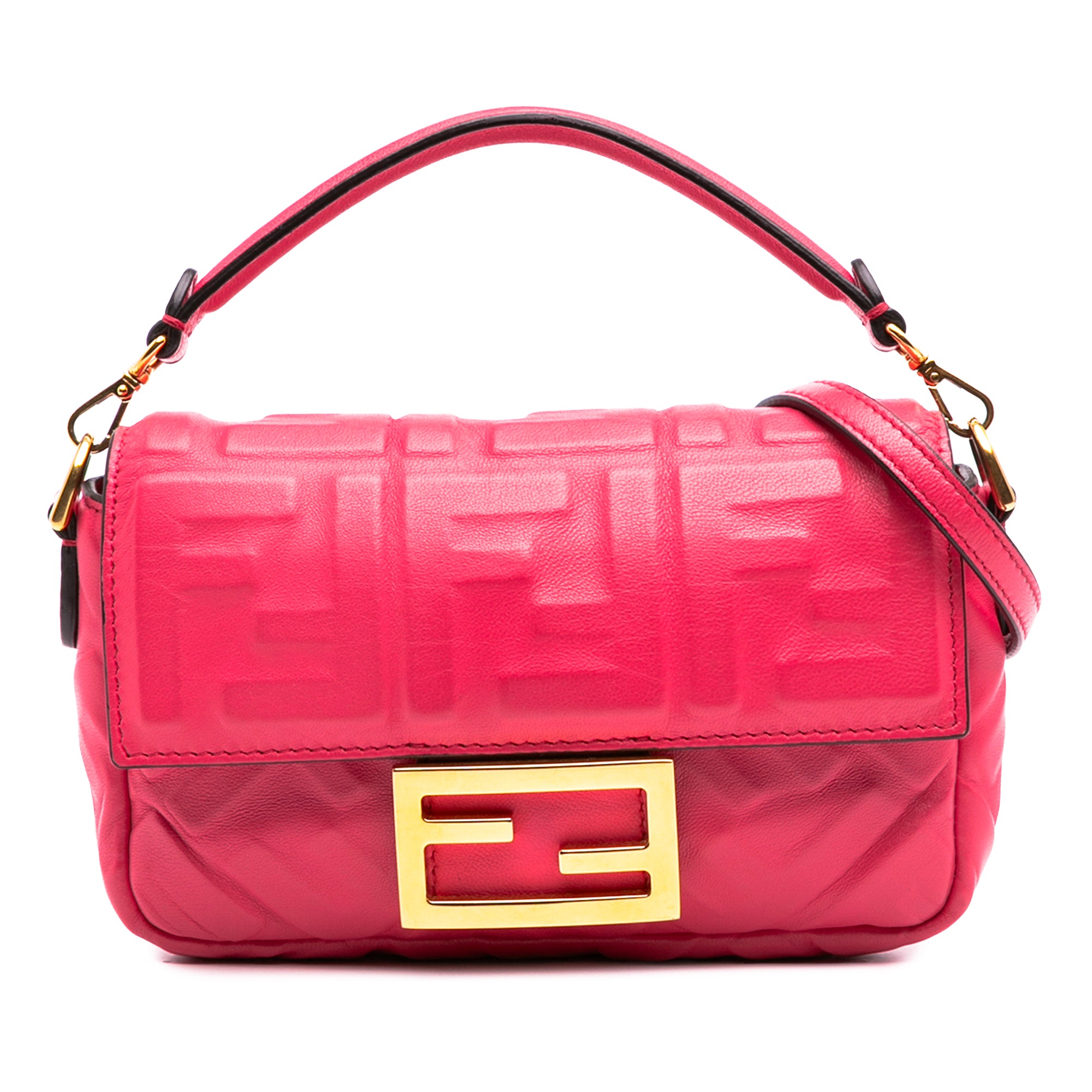 Fendi Mini Zucca Embossed Leather Baguette Satchel