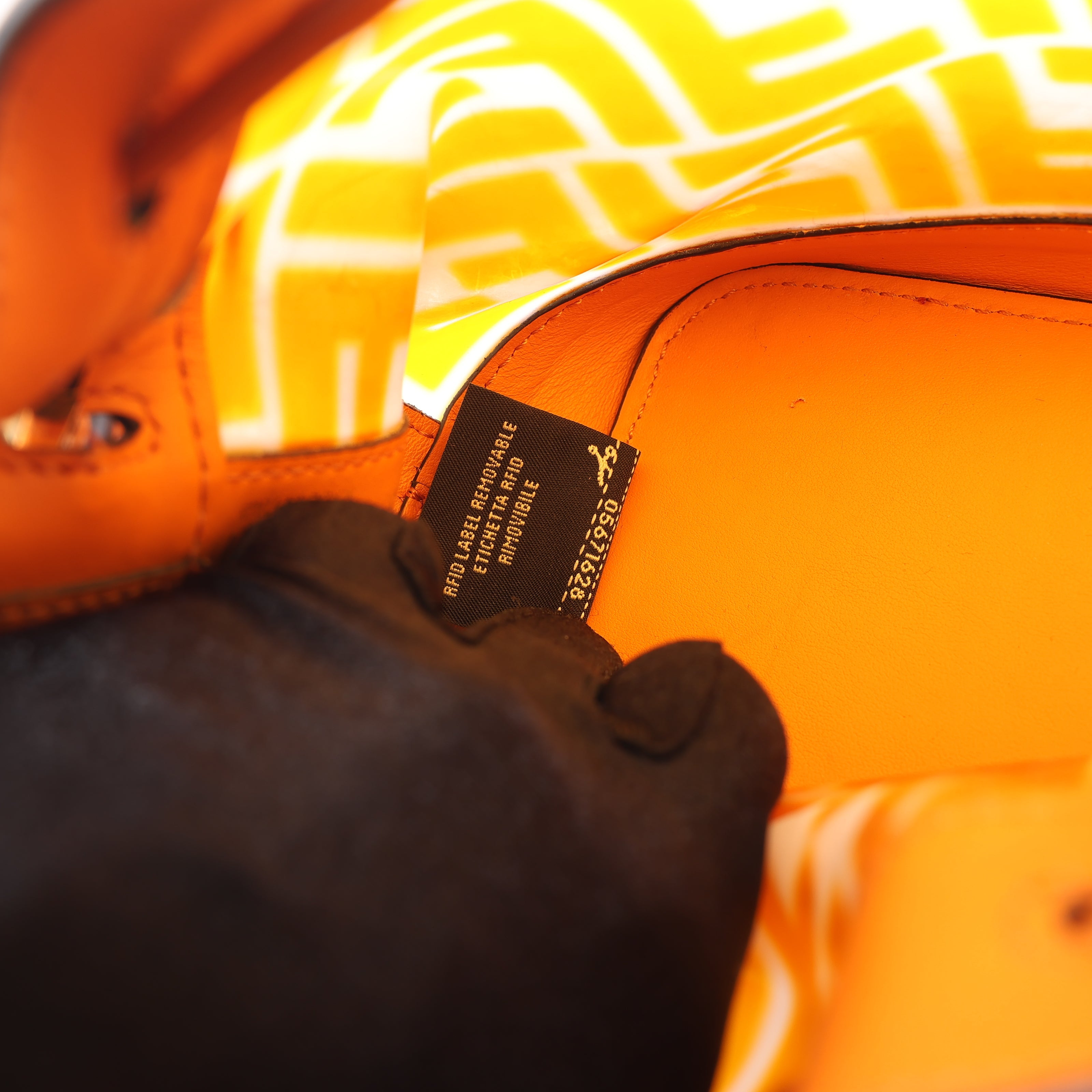Brand: FENDI Model: Mon TresorSize: MiniWidth: 11.5 cm Height: 17 cmExterior Condition: Excellent Interior Condition: Excellent Condition Details: The exterior is clean and beautiful with almost no signs of wear. The leather part has rubbings, but is in excellent condition. The hardware is bright and crisp. The handle and strap is clean and firm. The interior is in excellent condition.Colour: OrangeInterior Colour: OrangeHardware Colour: GoldMaterial: Polyvinyl, LeatherComes With: Handle, shoulder bag