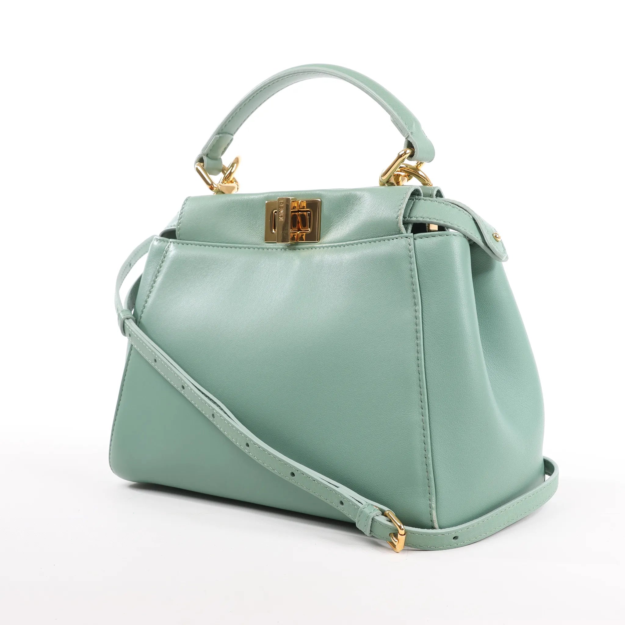 Brand: Fendi Model: PeekabooSize: MiniWidth: 23 cmHeight: 19 cmExterior Condition: ExcellentInterior Condition: ExcellentCondition Details: The exterior leather remains clean and in good condition with light rubbings at the bottom edges. The handle and strap is clean and in good condition. The hardware is bright and crisp. The interior is clean and in excellent condition.Colour: GreenInterior Colour: GreenHardware Colour: GoldMaterial: LeatherComes With: Shoulder strap
