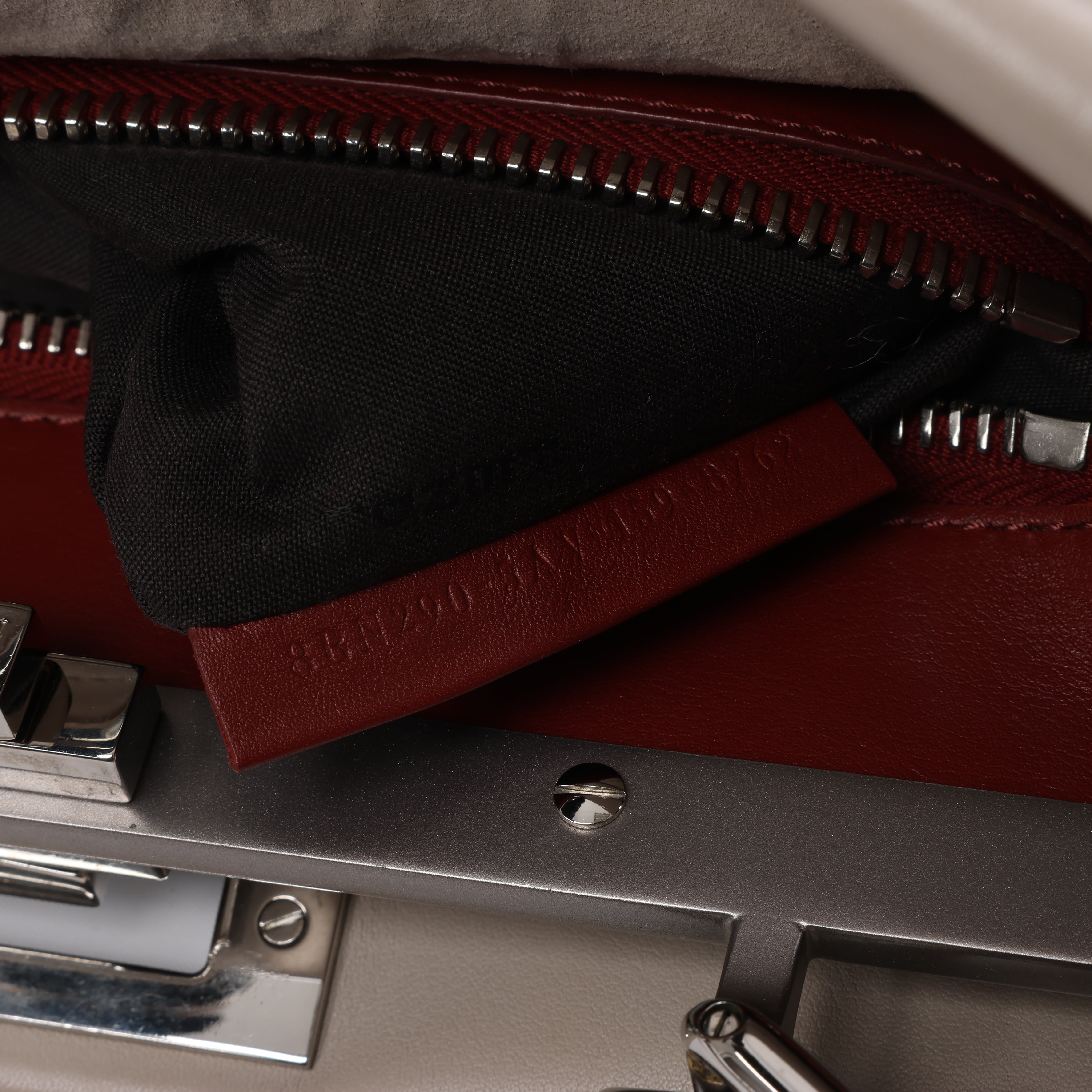 Brand: Fendi Model: Peekaboo Size: RegularWidth: 34.5 cmHeight: 23 cmExterior Condition: ExcellentInterior Condition: ExcellentCondition Details: The exterior leather remains very good condition with light stains. The handle is clean and in good condition. The hardware is bright and crisp. The interior is clean and in excellent condition.Colour: Grey (Yellow glazing)Interior Colour: Grey, BordoHardware Colour: SilverMaterial: LeatherComes With: Shoulder strap, dustbag