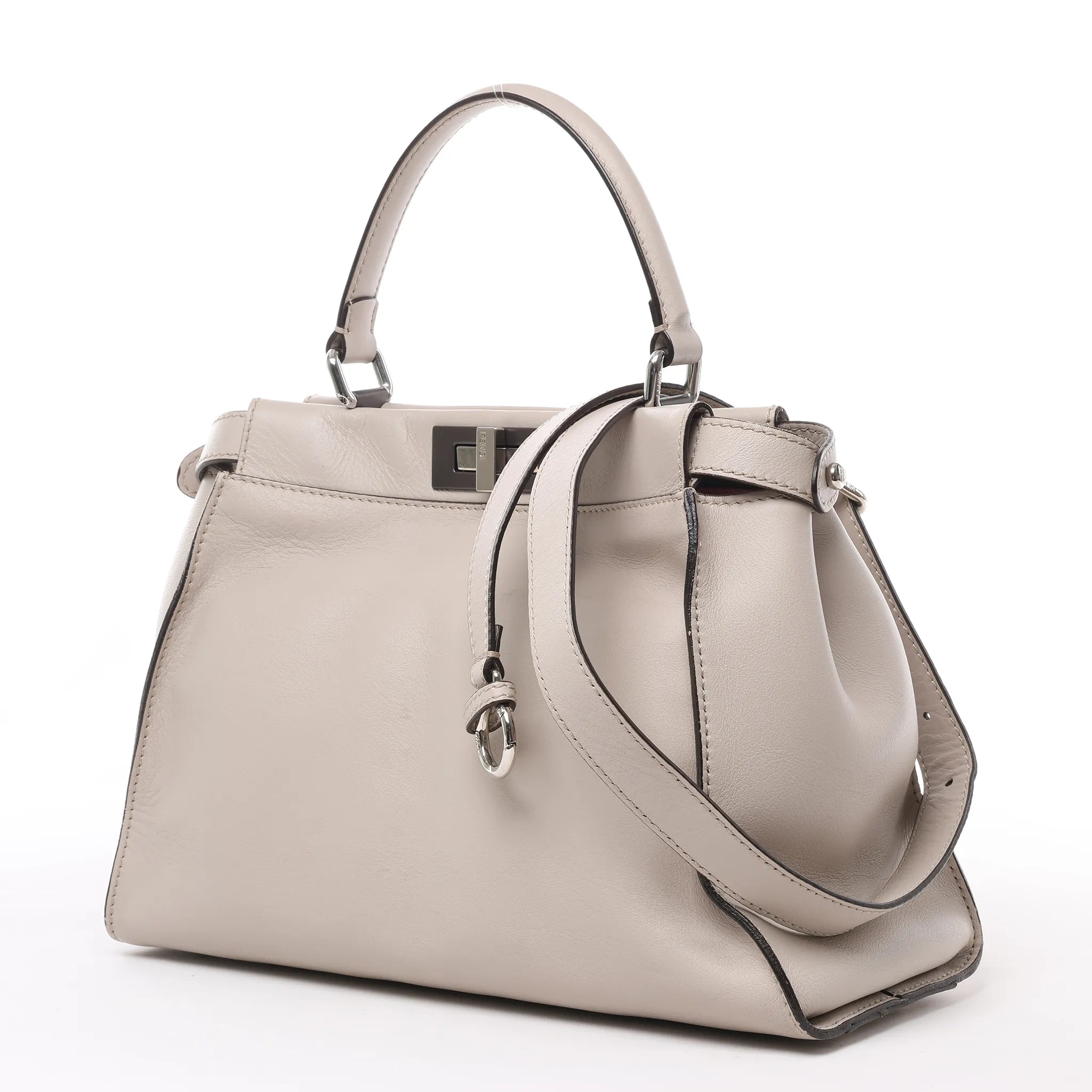 Fendi Peekaboo Regular Leather 2Way Handbag in Light Greige 8BN290